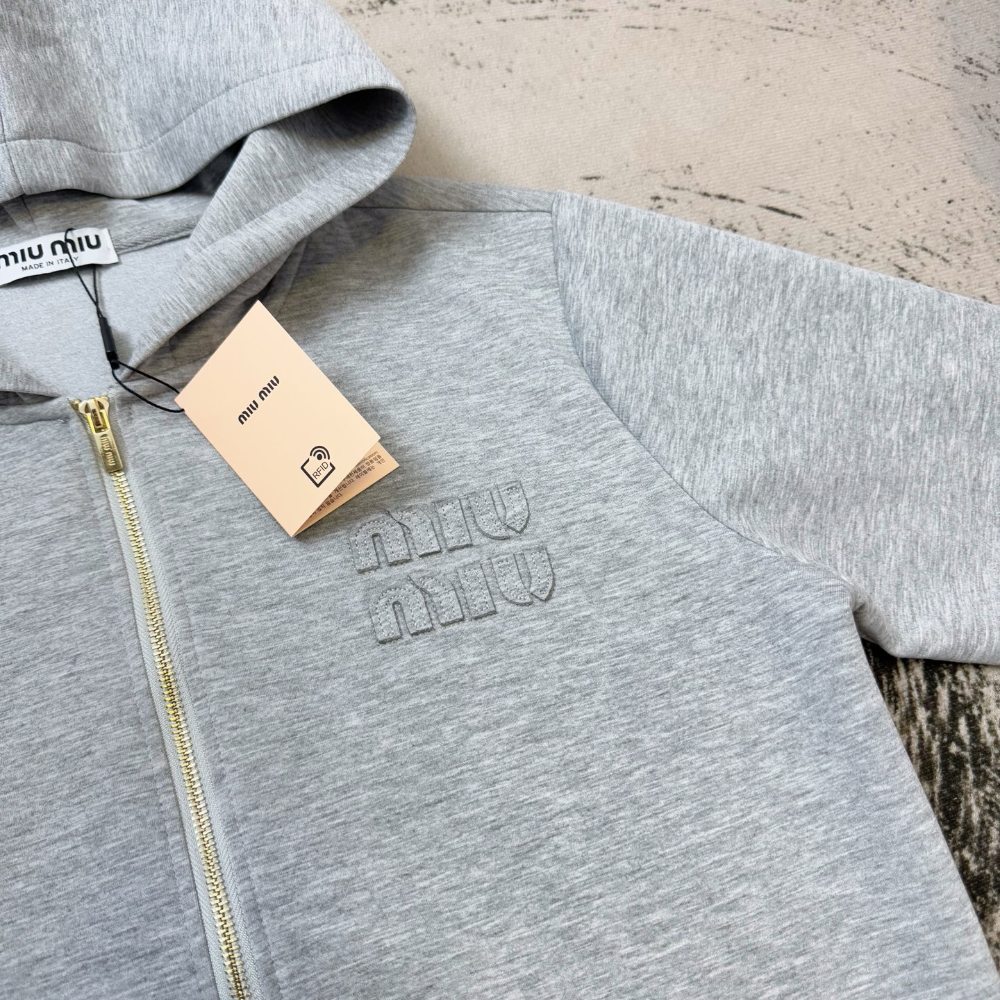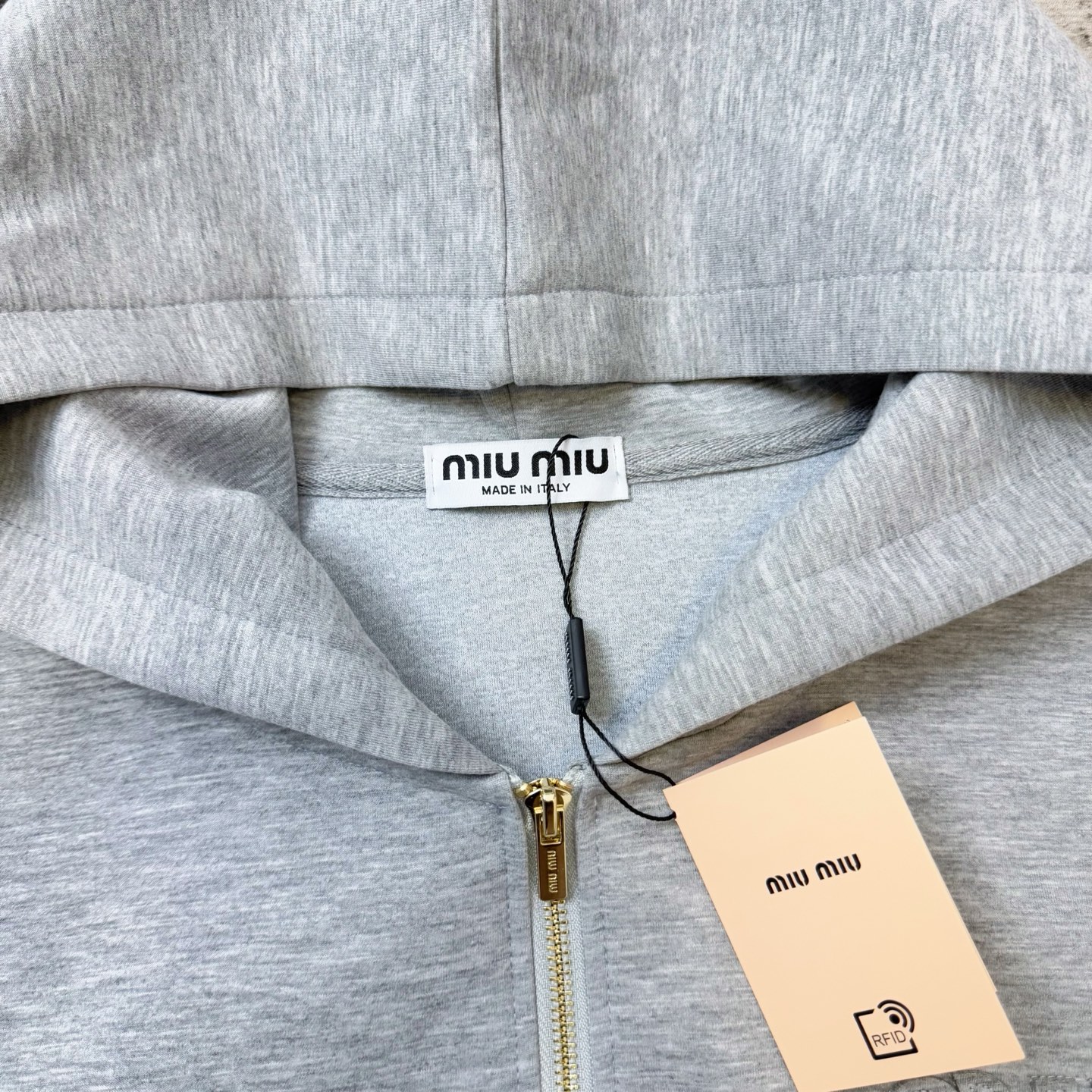 这款衣服是AAAAA 1:1 质量 (非常棒). 使用了和原版一模一样的材料. 商标部分也保持了和缪缪/Miu Miu一样. 图片拍摄是实物衣服拍摄, 您所收到的实物保证和我们图片一模一样.