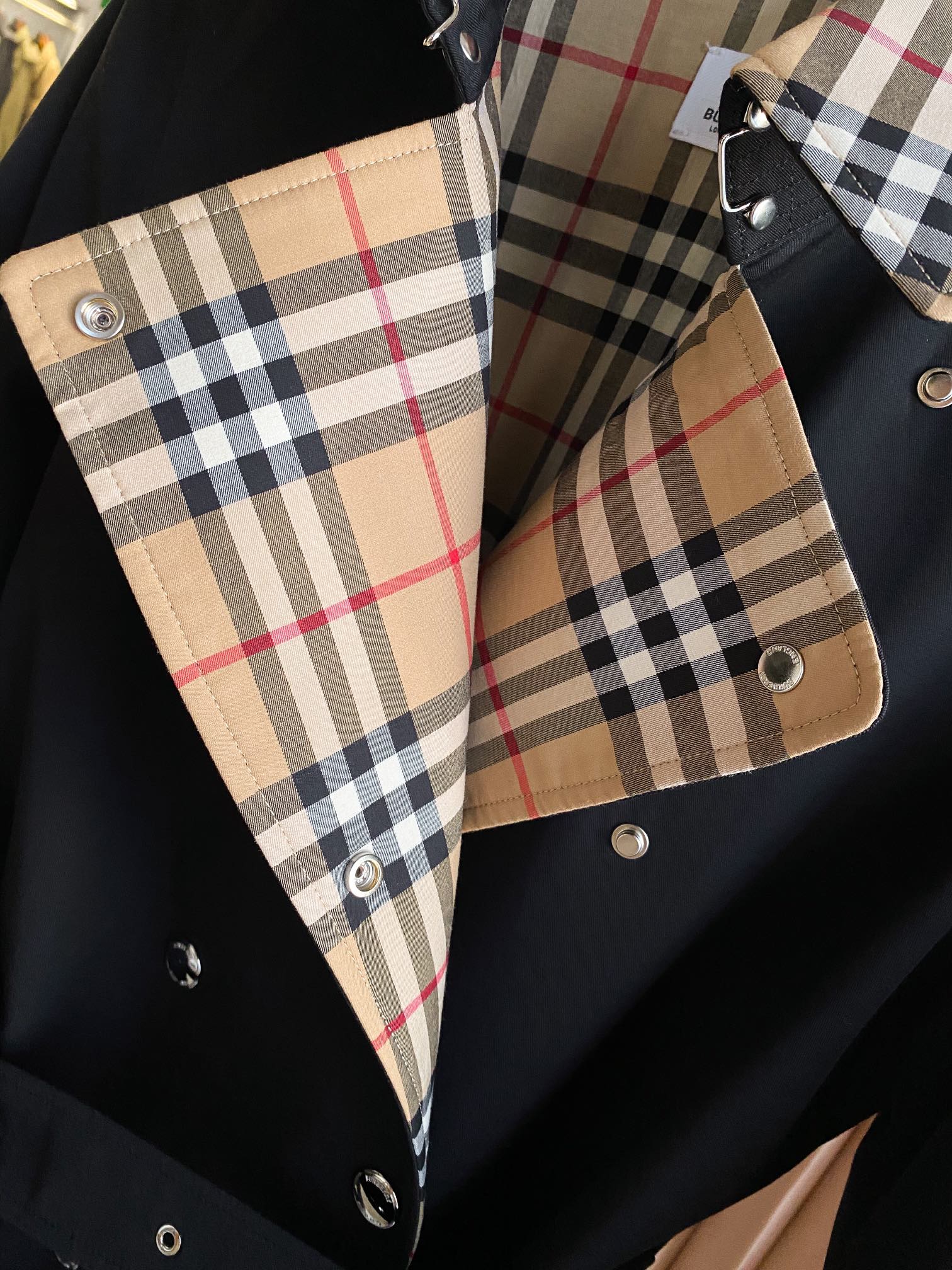 这款衣服是AAAAA 1:1 质量 (非常棒). 使用了和原版一模一样的材料. 商标部分也保持了和巴宝莉/Burberry一样. 图片拍摄是实物衣服拍摄, 您所收到的实物保证和我们图片一模一样.