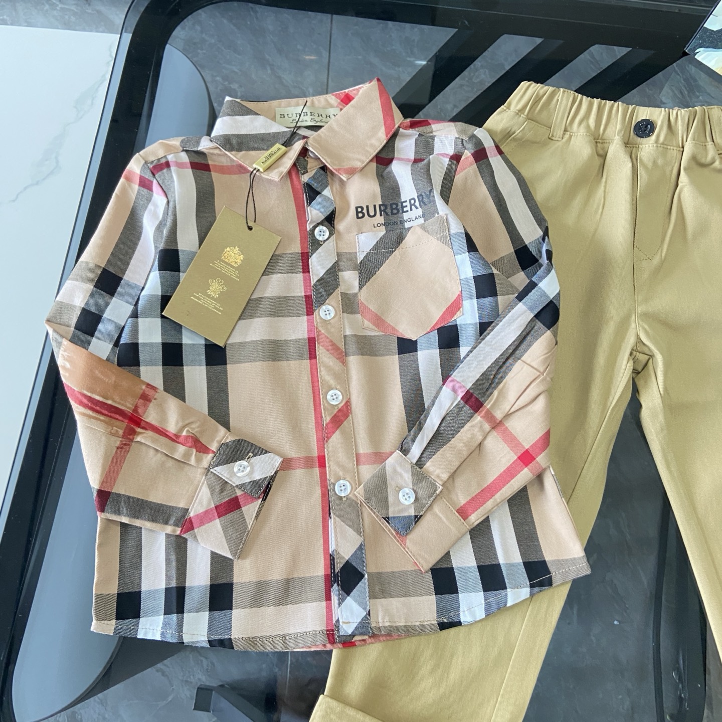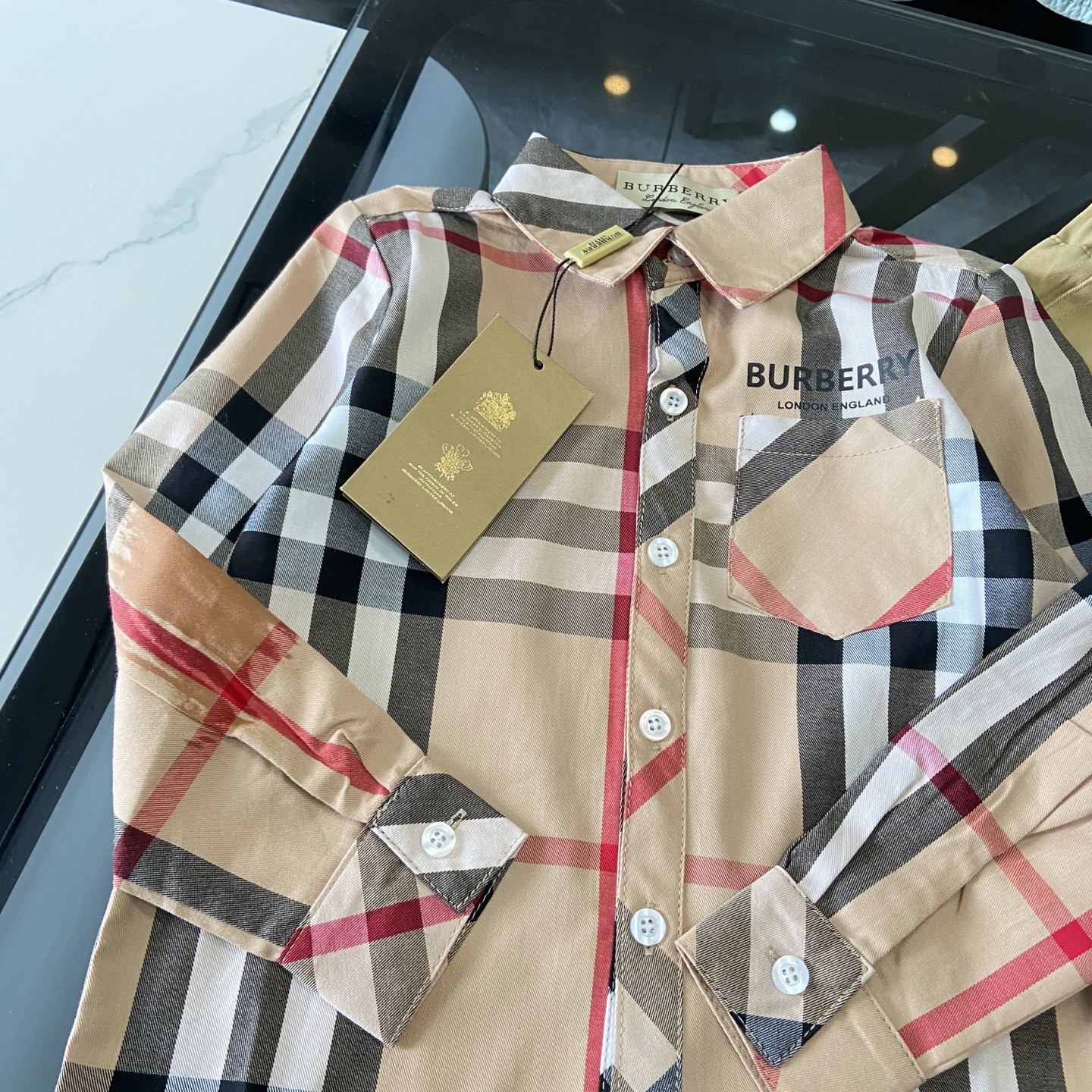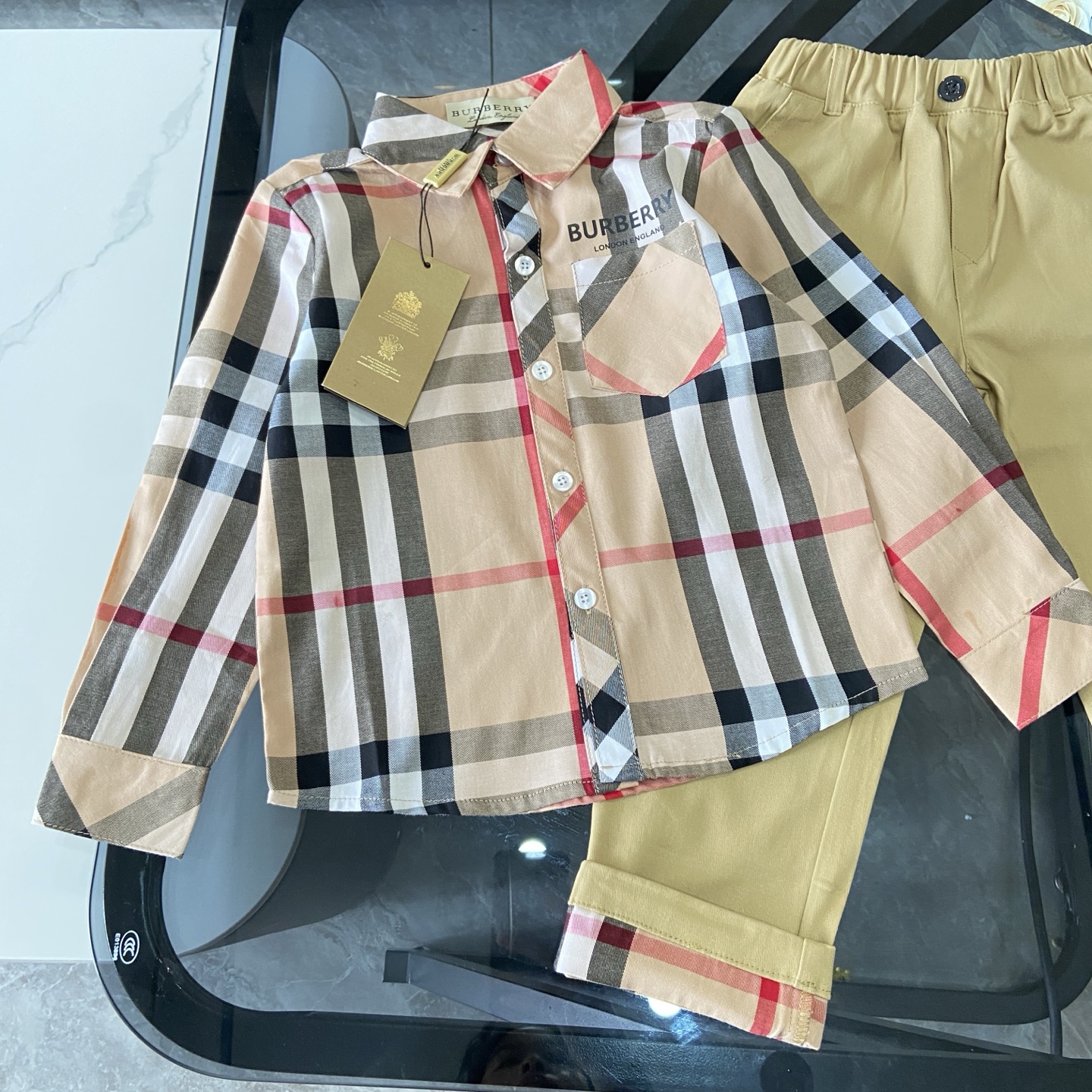 这款children's clothes是AAAAA 1:1 质量 (非常棒). 使用了和原版一模一样的材料. 商标部分也保持了和巴宝莉/Burberry一样. 图片拍摄是实物children's clothes拍摄, 您所收到的实物保证和我们图片一模一样.