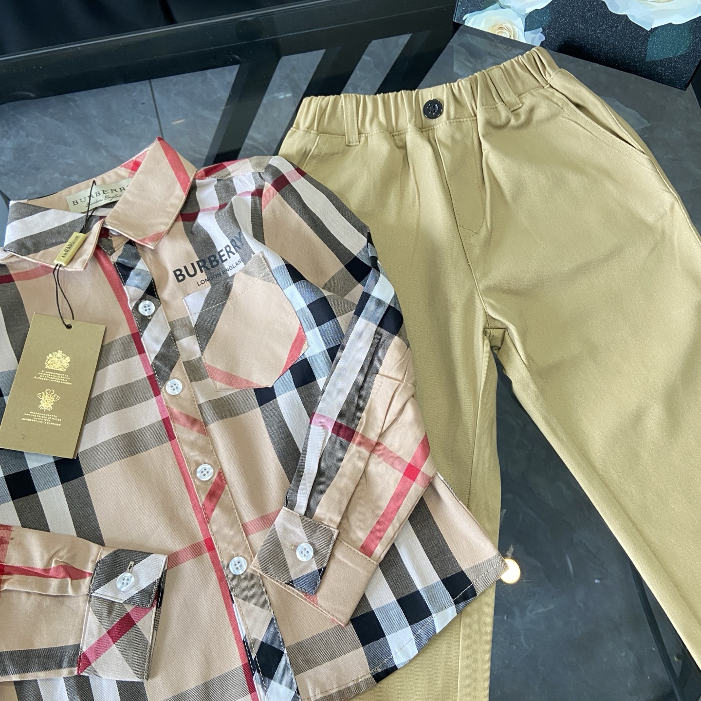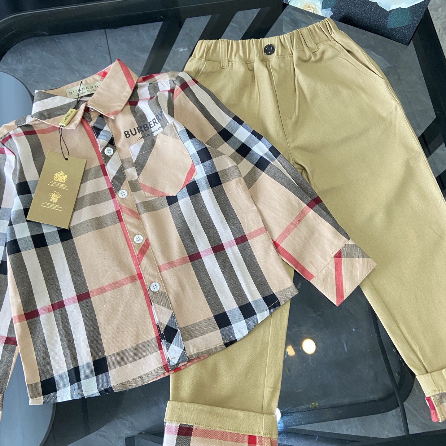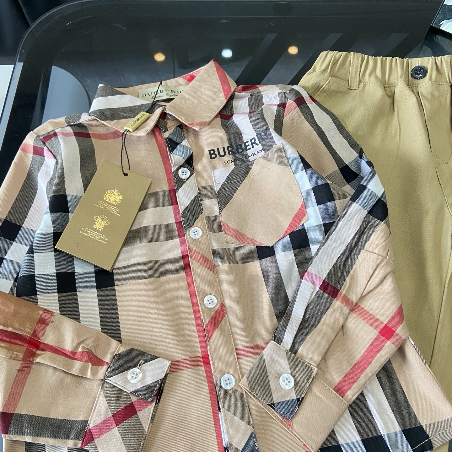 这款children's clothes是AAAAA 1:1 质量 (非常棒). 使用了和原版一模一样的材料. 商标部分也保持了和巴宝莉/Burberry一样. 图片拍摄是实物children's clothes拍摄, 您所收到的实物保证和我们图片一模一样.