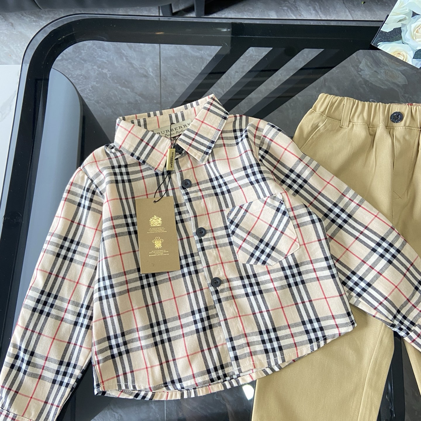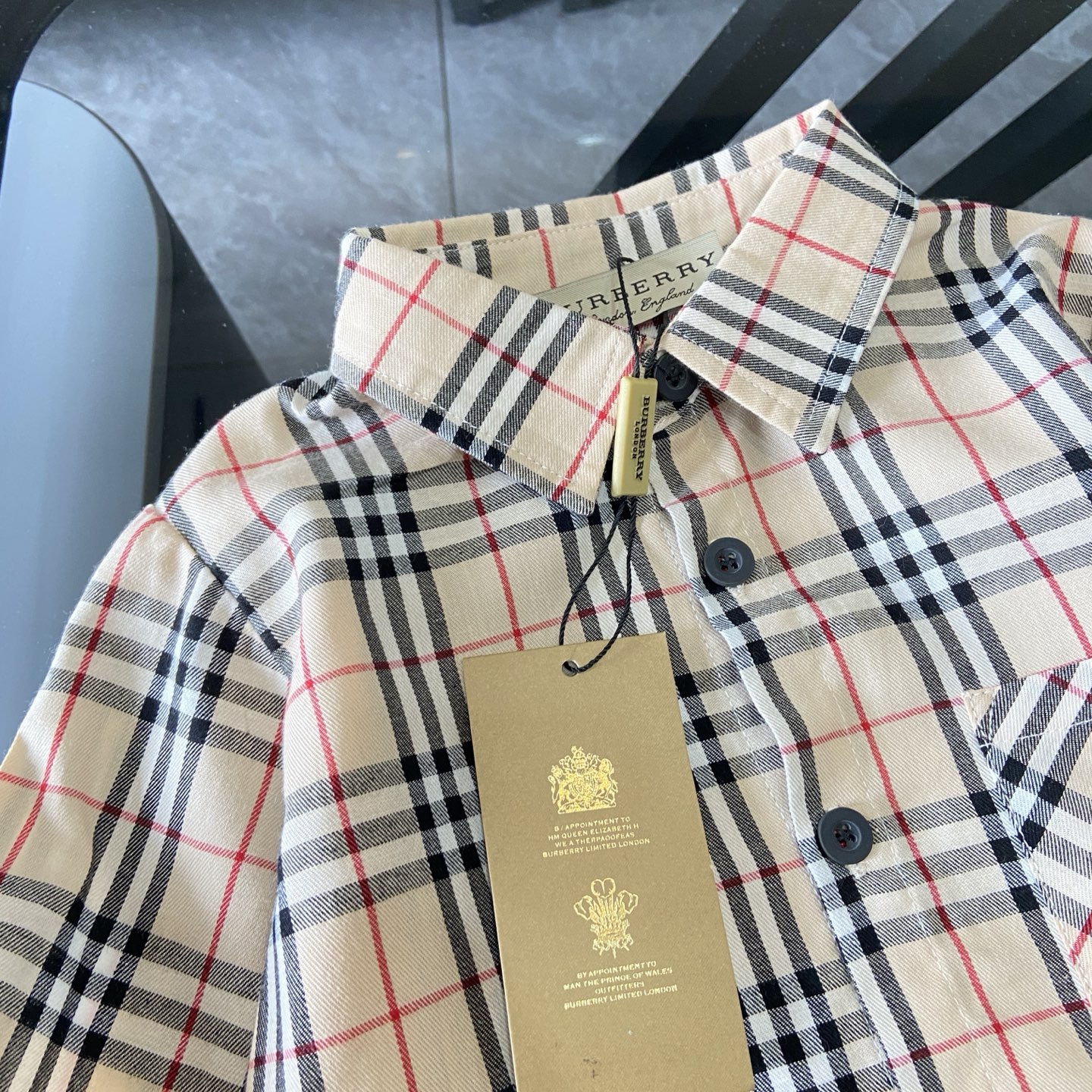 这款children's clothes是AAAAA 1:1 质量 (非常棒). 使用了和原版一模一样的材料. 商标部分也保持了和巴宝莉/Burberry一样. 图片拍摄是实物children's clothes拍摄, 您所收到的实物保证和我们图片一模一样.