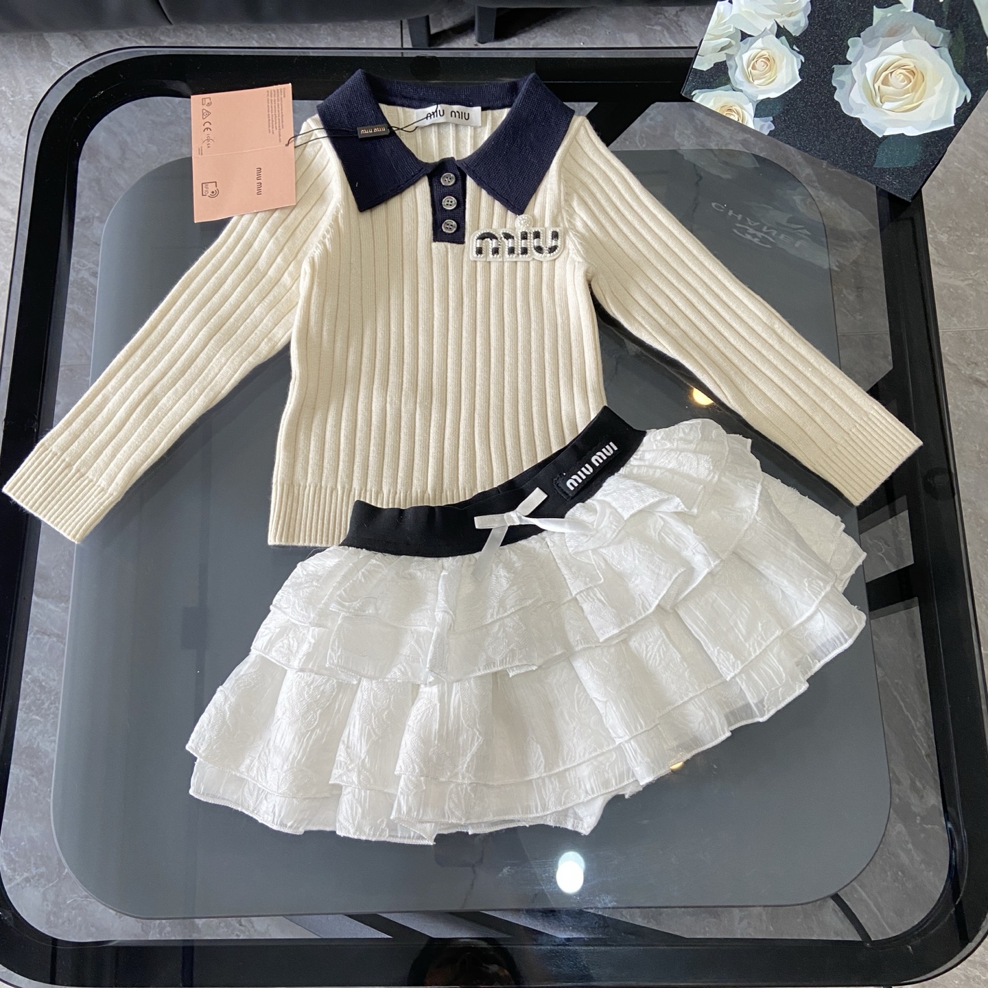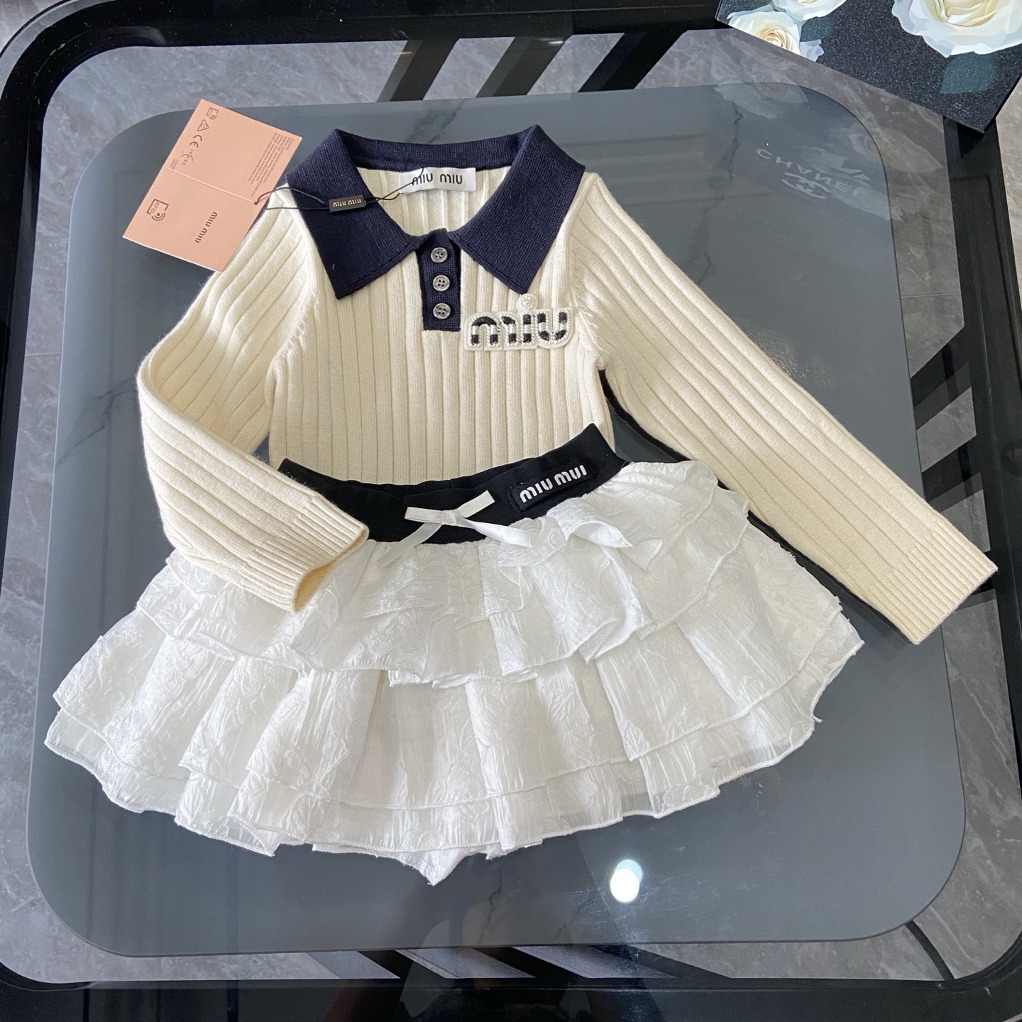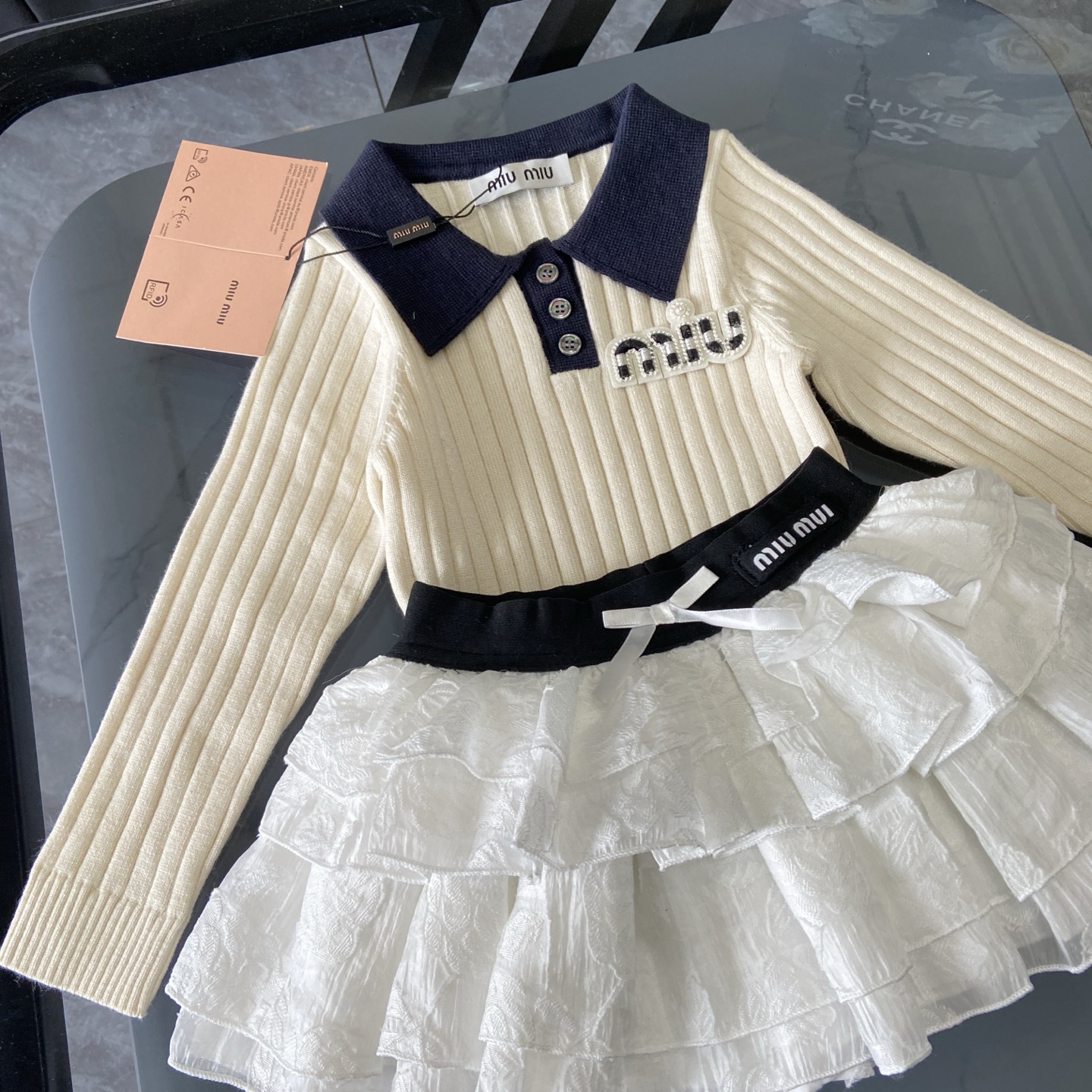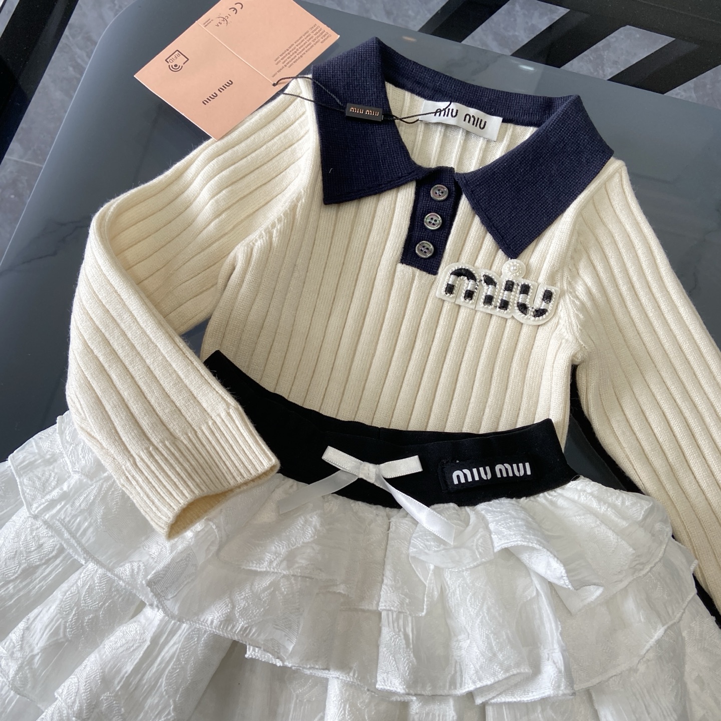 这款children's clothes是AAAAA 1:1 质量 (非常棒). 使用了和原版一模一样的材料. 商标部分也保持了和缪缪/Miu Miu一样. 图片拍摄是实物children's clothes拍摄, 您所收到的实物保证和我们图片一模一样.