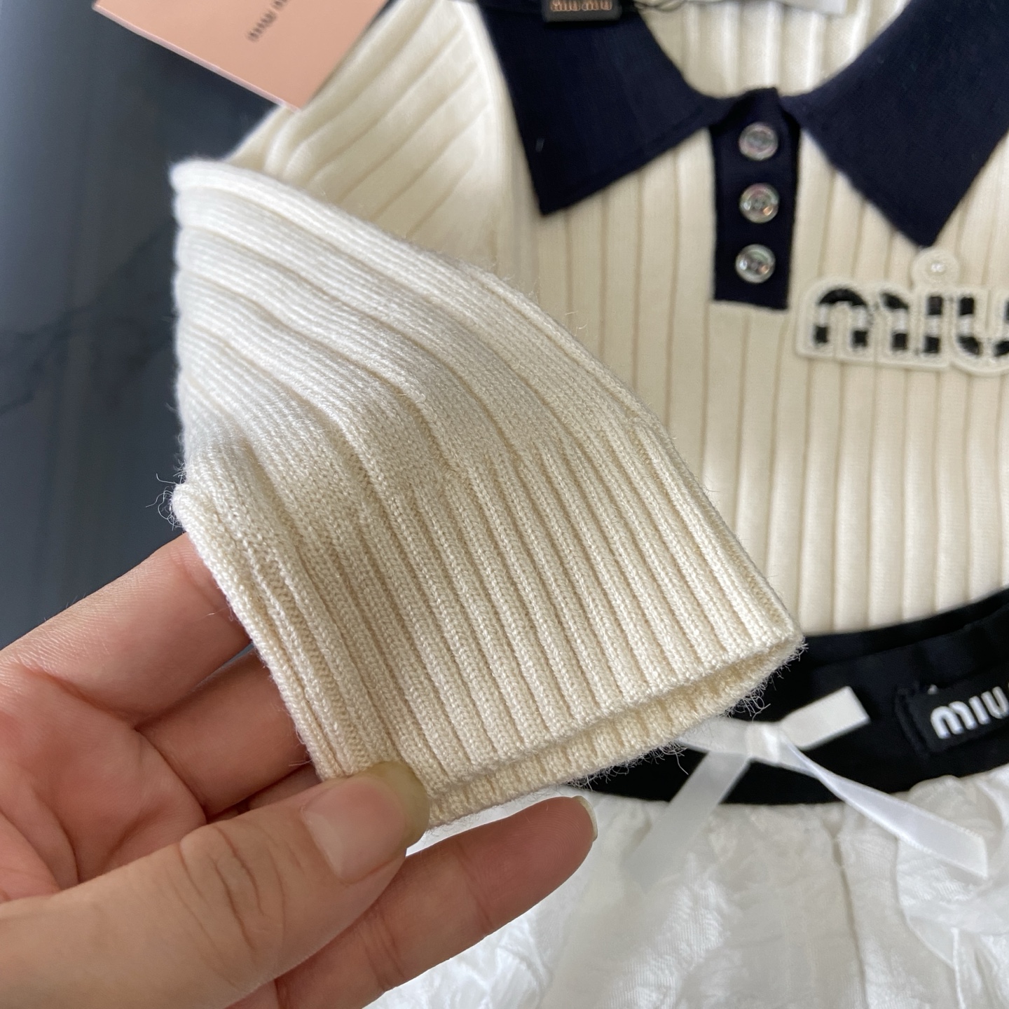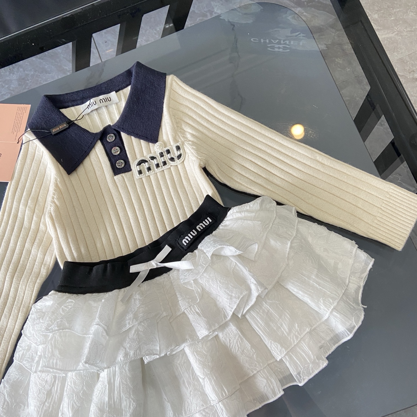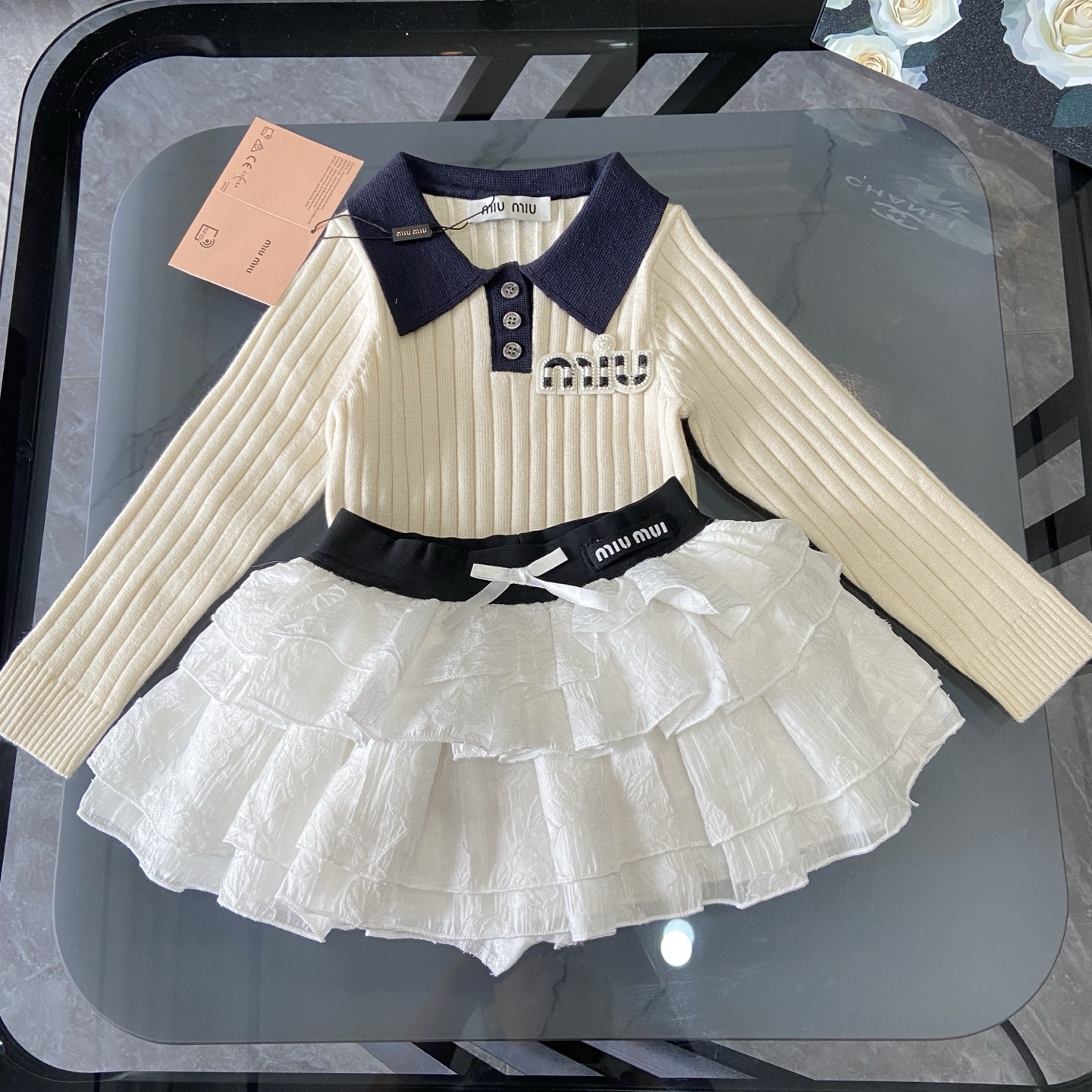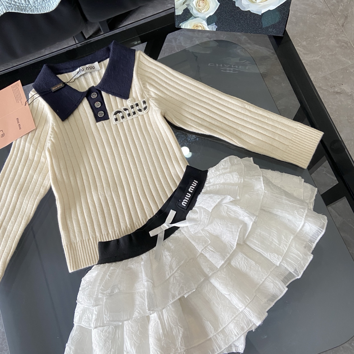 这款children's clothes是AAAAA 1:1 质量 (非常棒). 使用了和原版一模一样的材料. 商标部分也保持了和缪缪/Miu Miu一样. 图片拍摄是实物children's clothes拍摄, 您所收到的实物保证和我们图片一模一样.