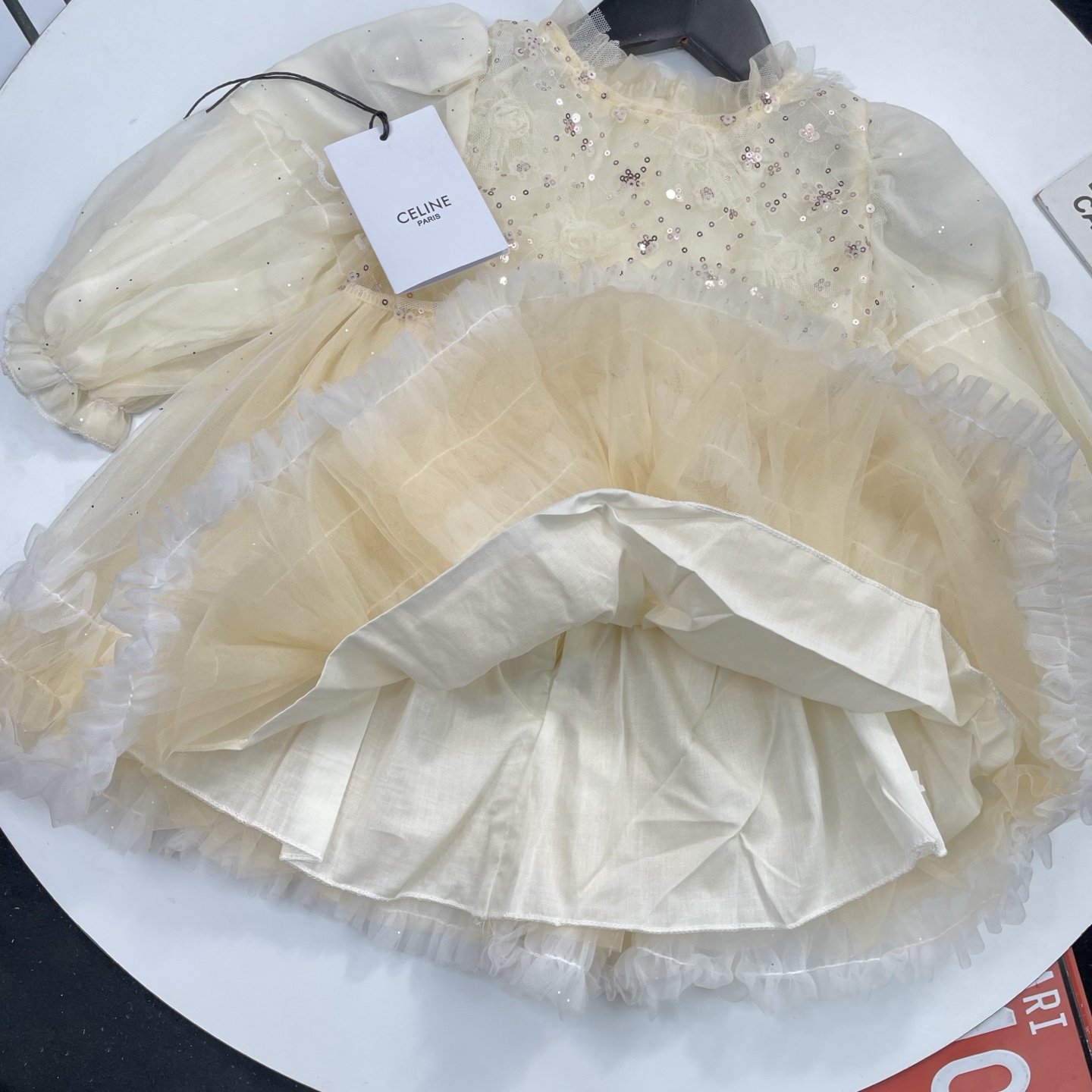 这款children's clothes是AAAAA 1:1 质量 (非常棒). 使用了和原版一模一样的材料. 商标部分也保持了和思琳/Celine一样. 图片拍摄是实物children's clothes拍摄, 您所收到的实物保证和我们图片一模一样.
