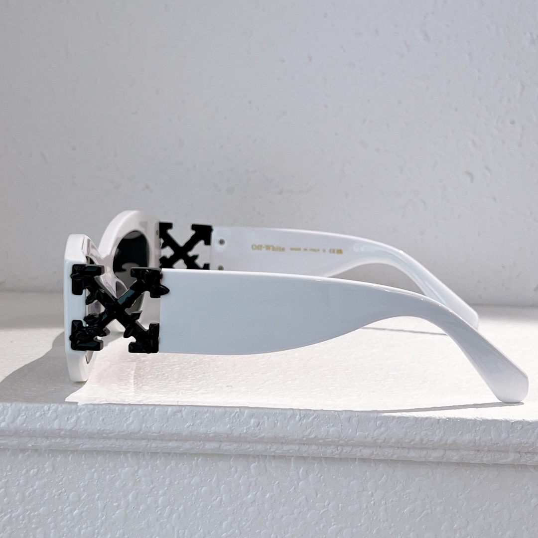 这款太阳眼镜是AAAAA 1:1 质量 (非常棒). 使用了和原版一模一样的材料. 商标部分也保持了和OFF WHITE一样. 图片拍摄是实物太阳眼镜拍摄, 您所收到的实物保证和我们图片一模一样.