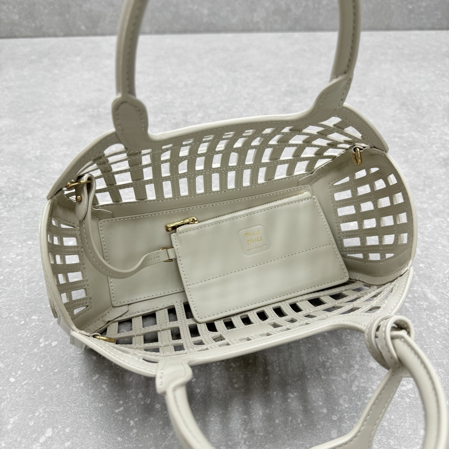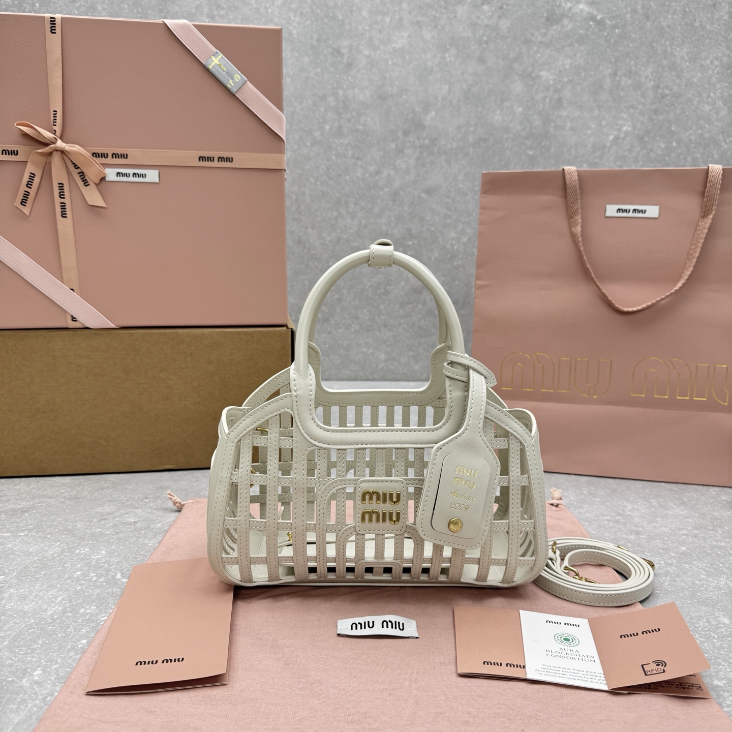 这款包包是AAAAA 1:1 质量 (非常棒). 使用了和原版一模一样的材料. 商标部分也保持了和缪缪/Miu Miu一样. 图片拍摄是实物包包拍摄, 您所收到的实物保证和我们图片一模一样.