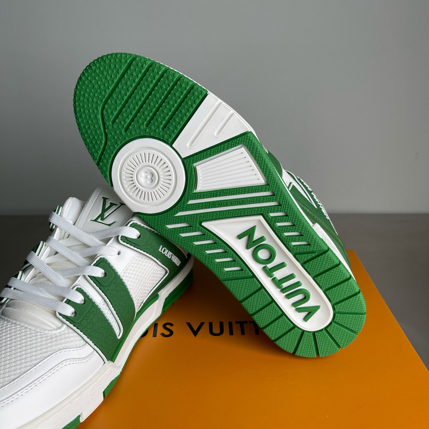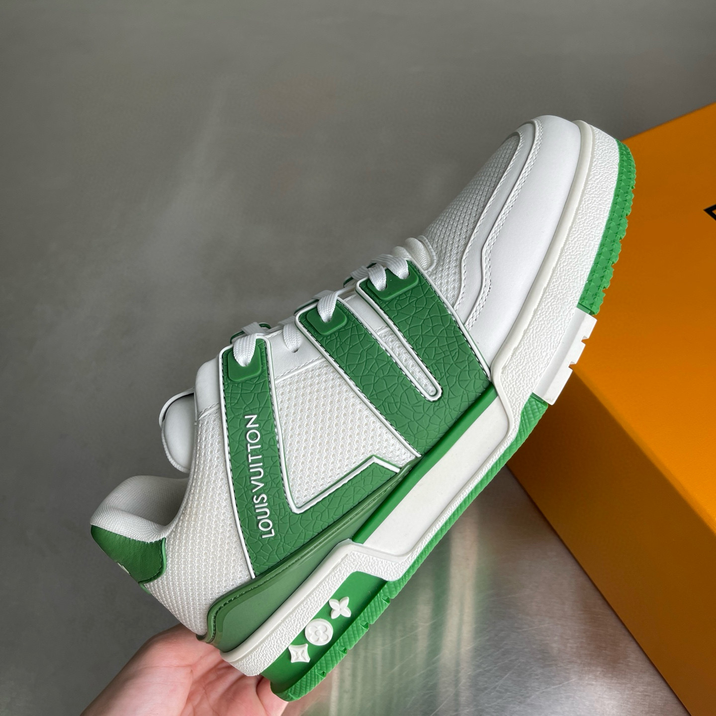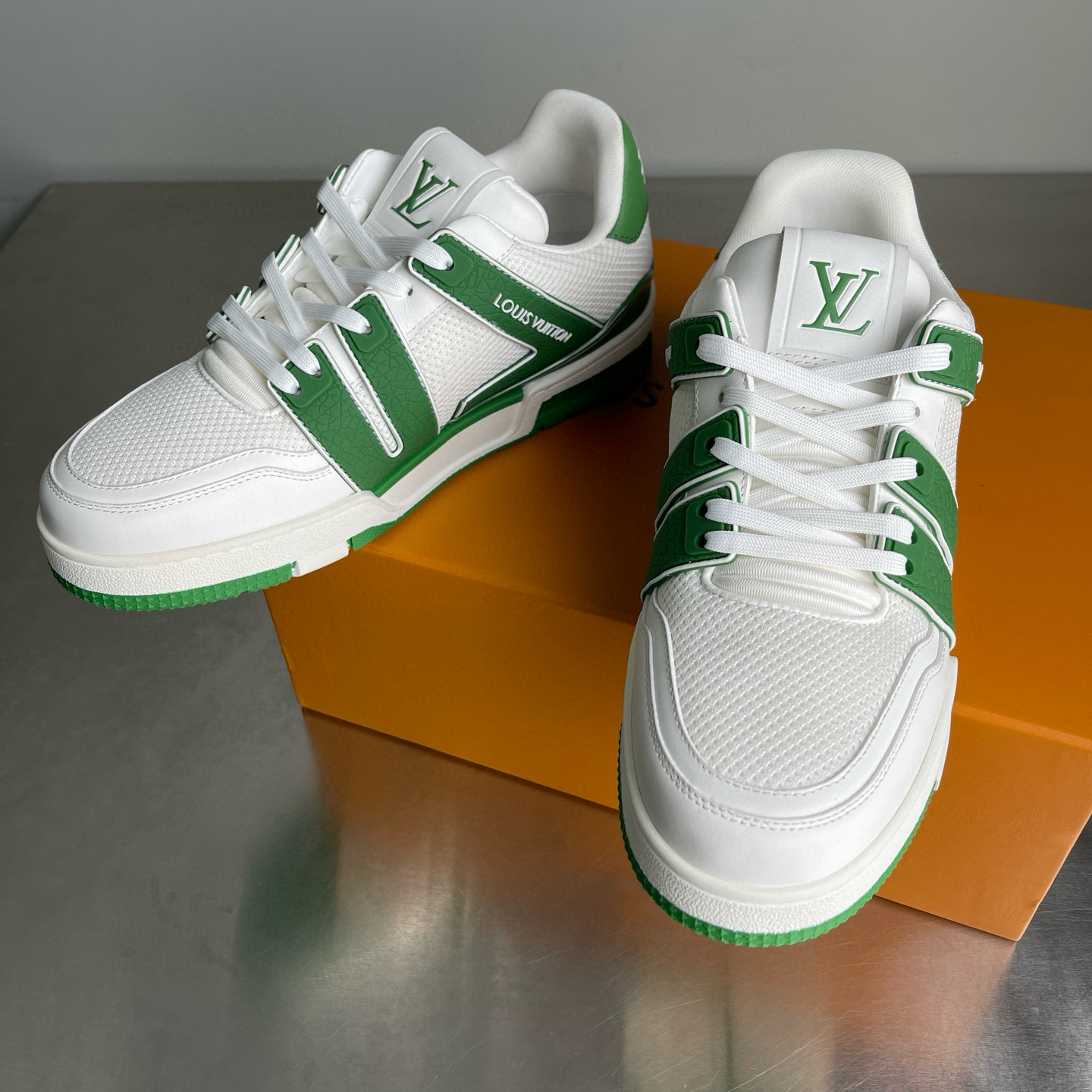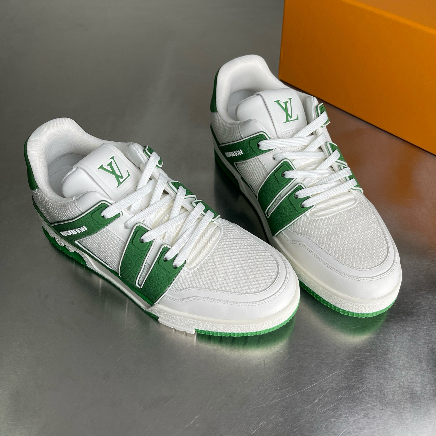 这款鞋子是AAAAA 1:1 质量 (非常棒). 使用了和原版一模一样的材料. 商标部分也保持了和路易威登/Louis Vuitton一样. 图片拍摄是实物鞋子拍摄, 您所收到的实物保证和我们图片一模一样.