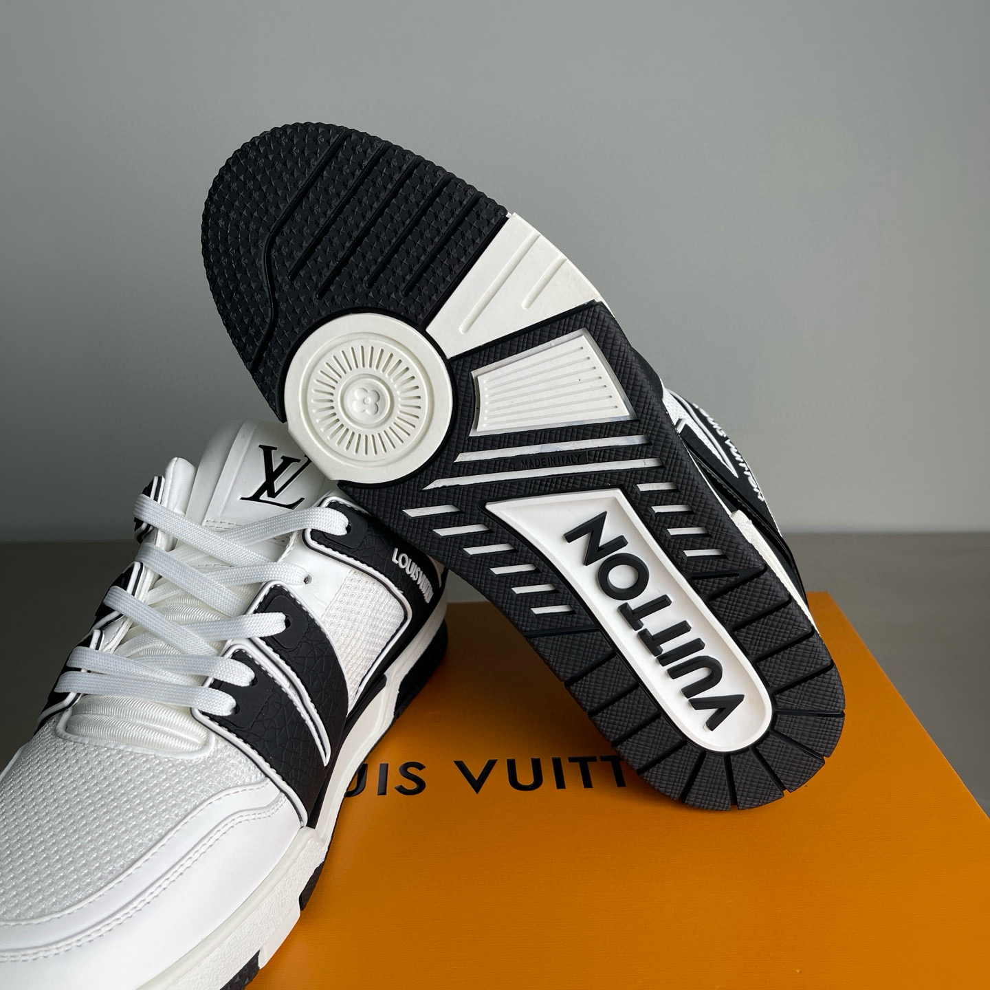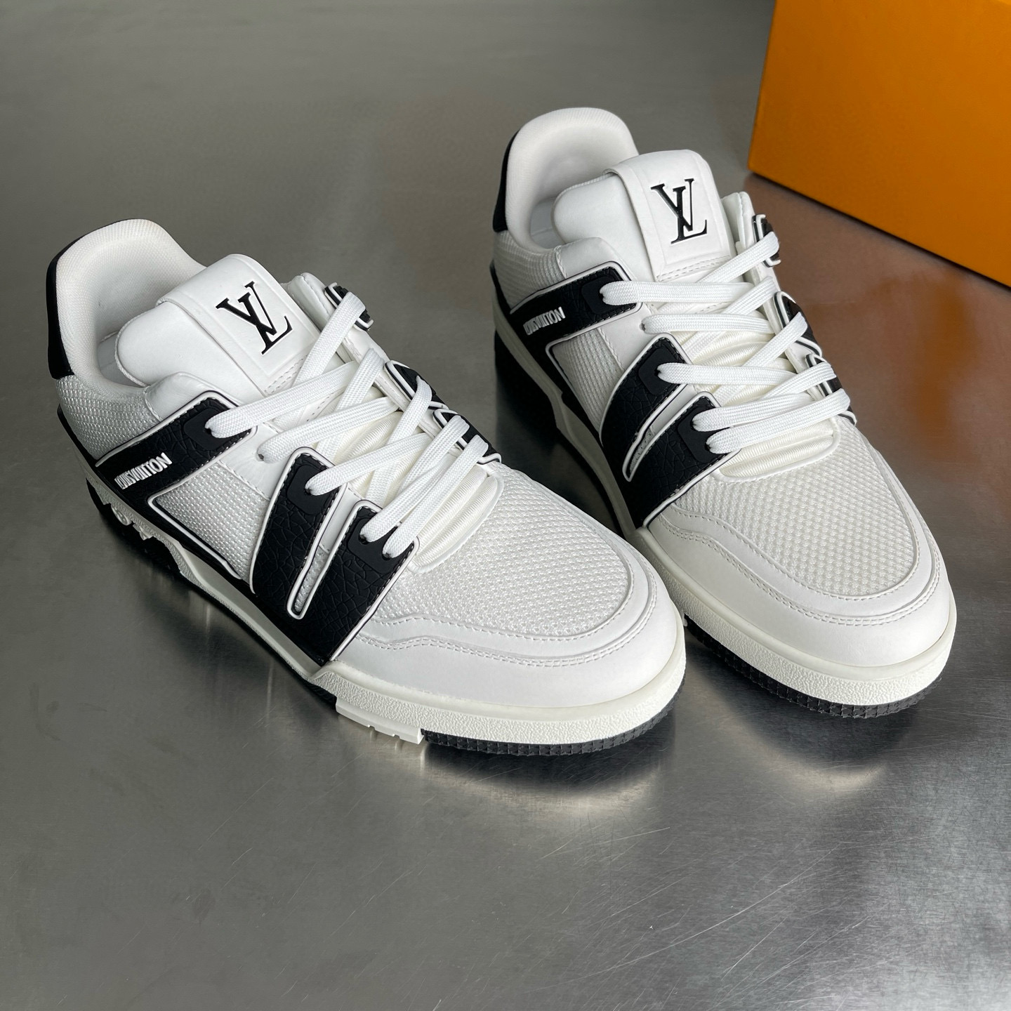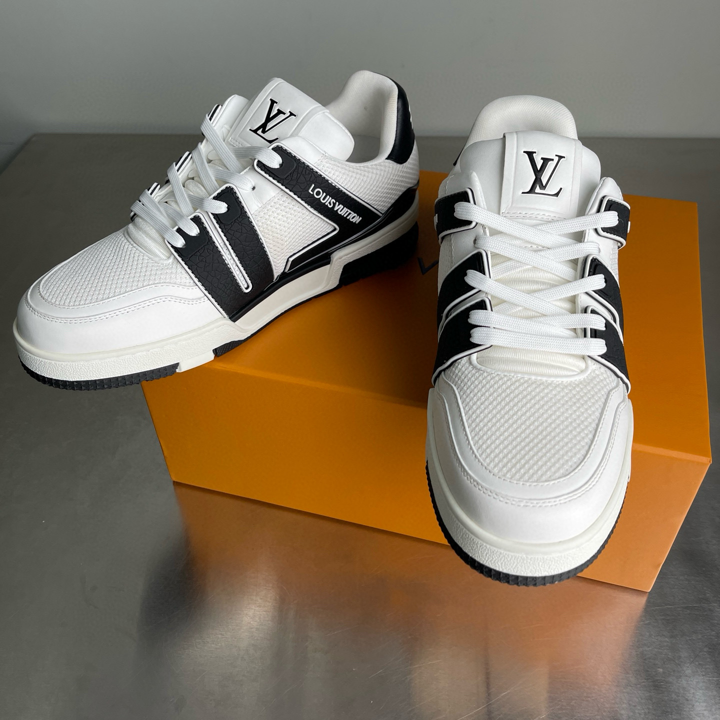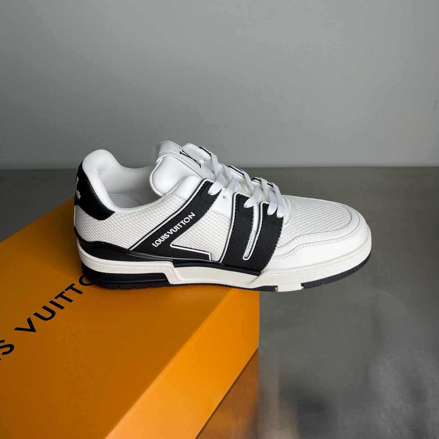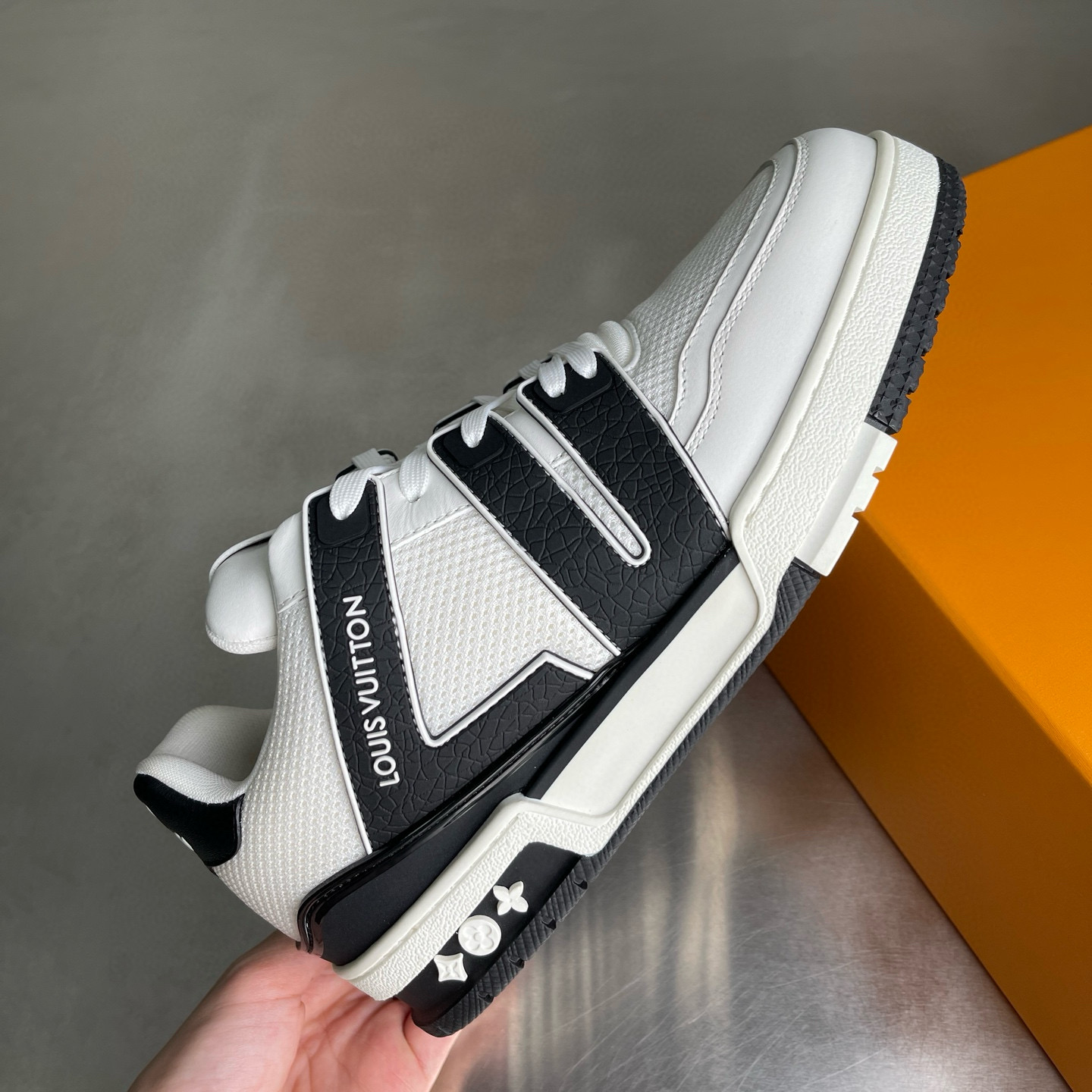 这款鞋子是AAAAA 1:1 质量 (非常棒). 使用了和原版一模一样的材料. 商标部分也保持了和路易威登/Louis Vuitton一样. 图片拍摄是实物鞋子拍摄, 您所收到的实物保证和我们图片一模一样.