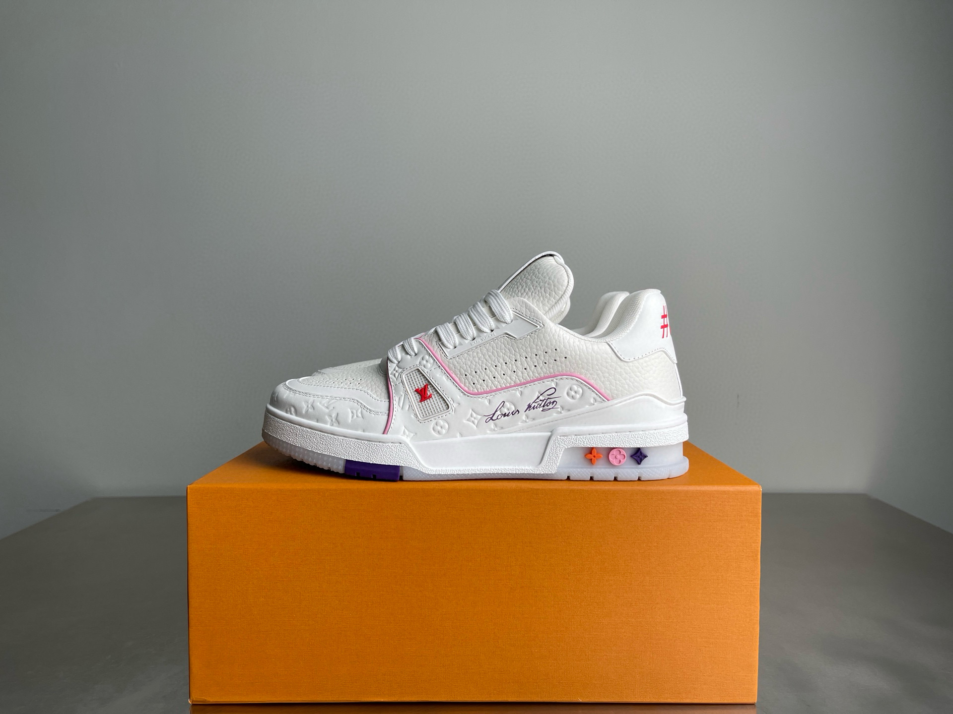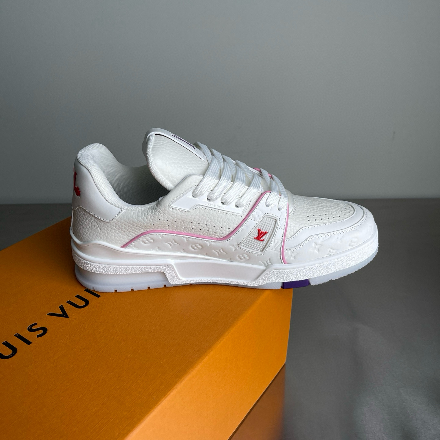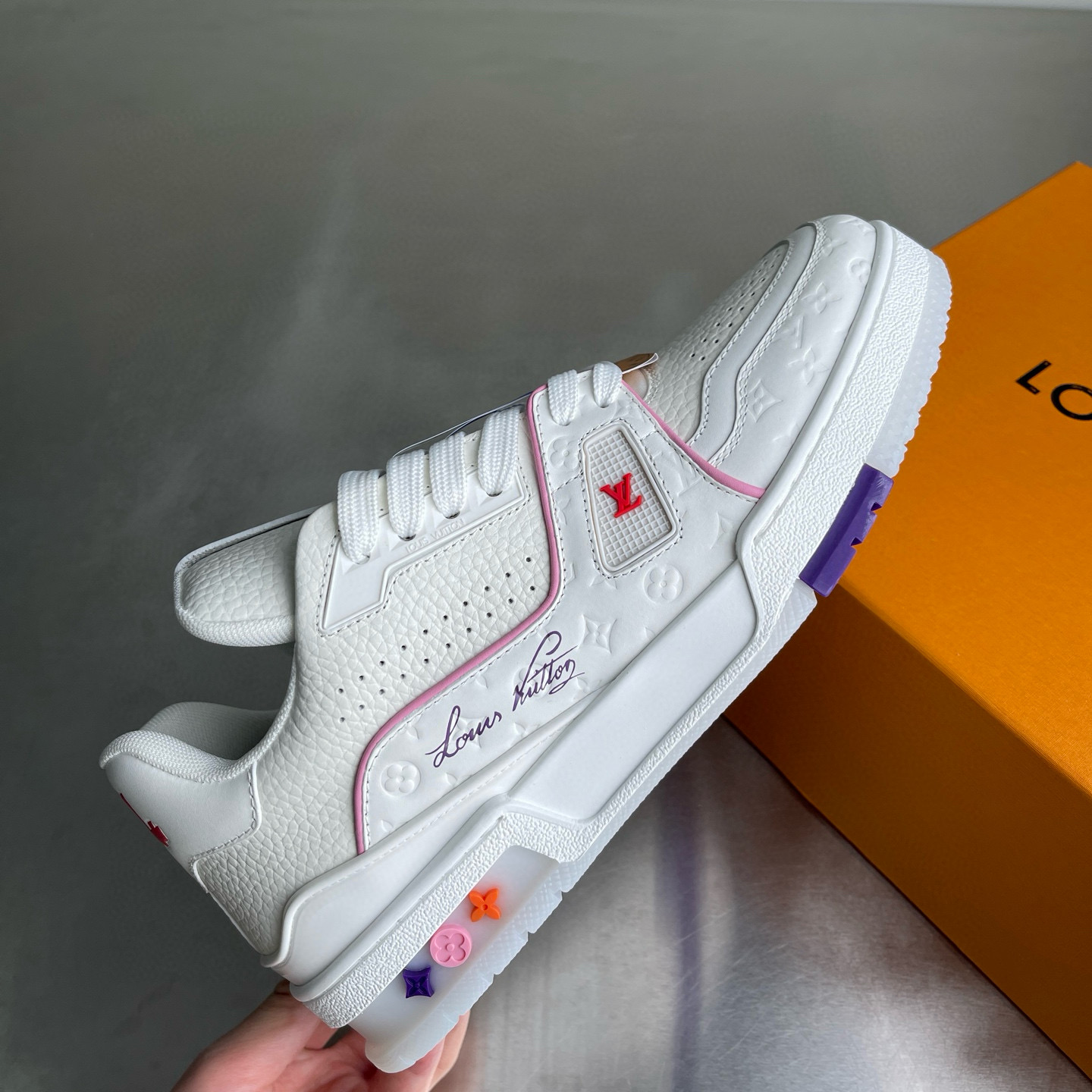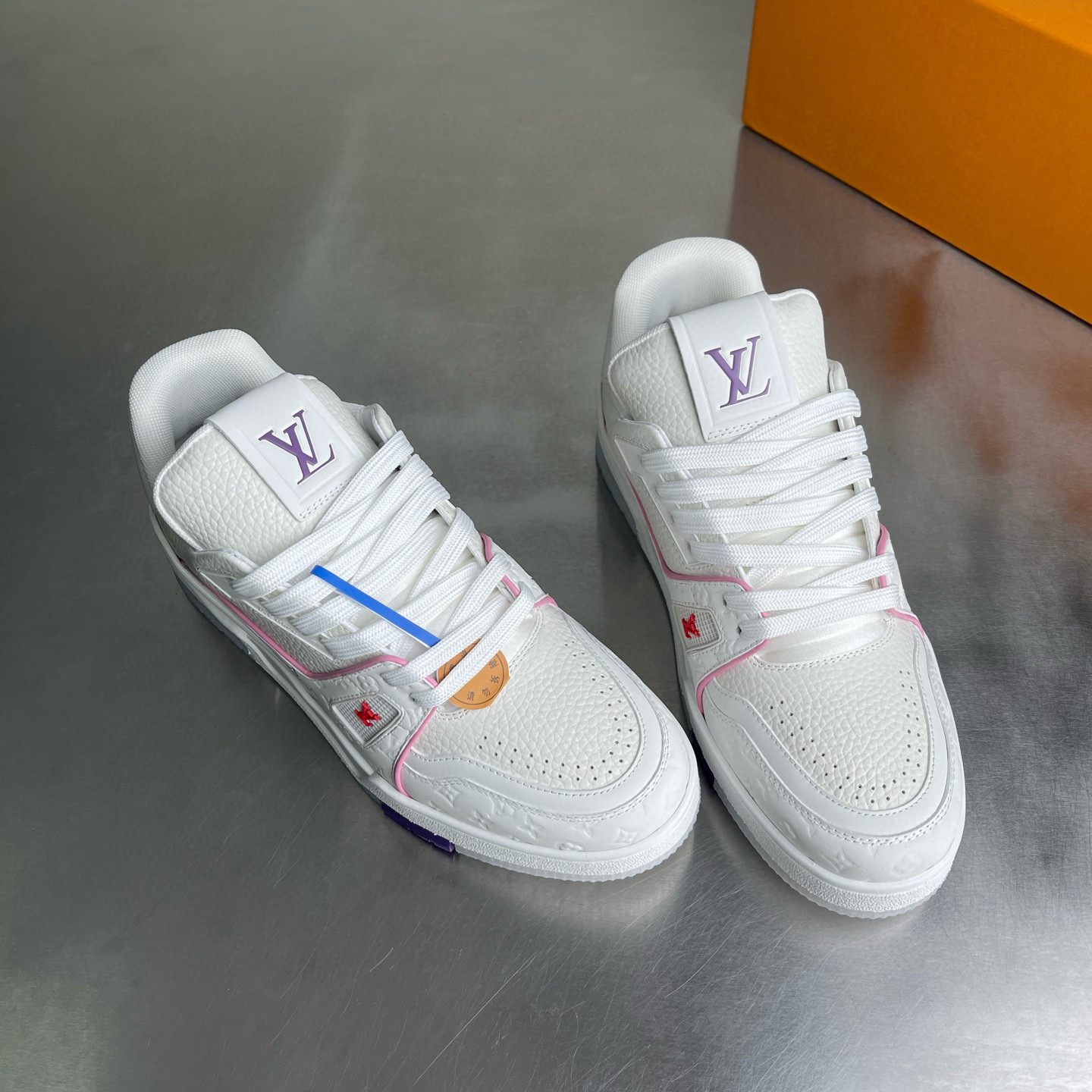 这款鞋子是AAAAA 1:1 质量 (非常棒). 使用了和原版一模一样的材料. 商标部分也保持了和路易威登/Louis Vuitton一样. 图片拍摄是实物鞋子拍摄, 您所收到的实物保证和我们图片一模一样.