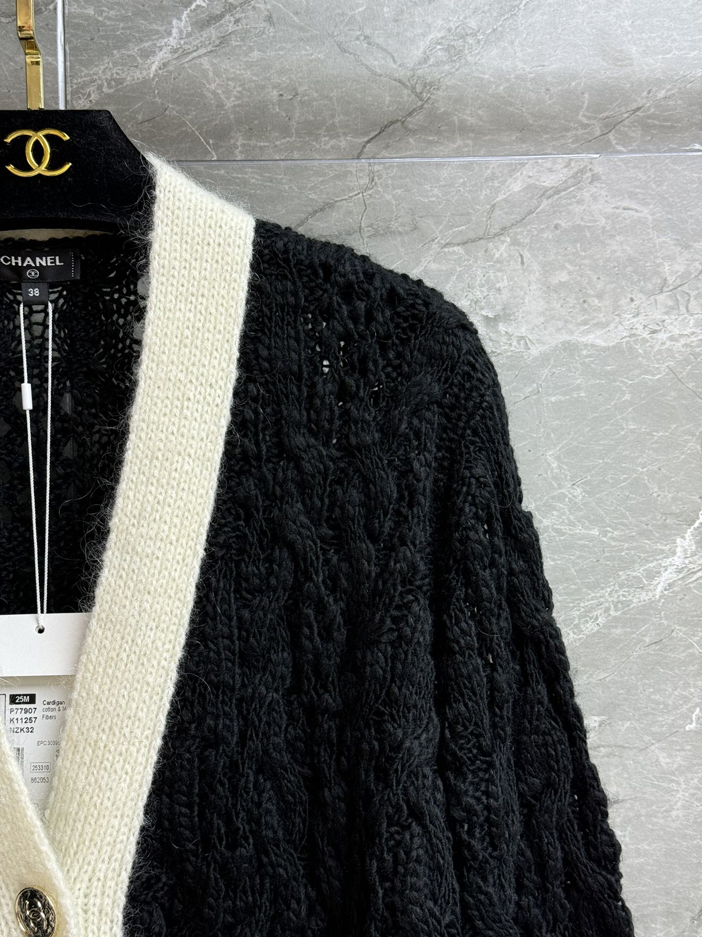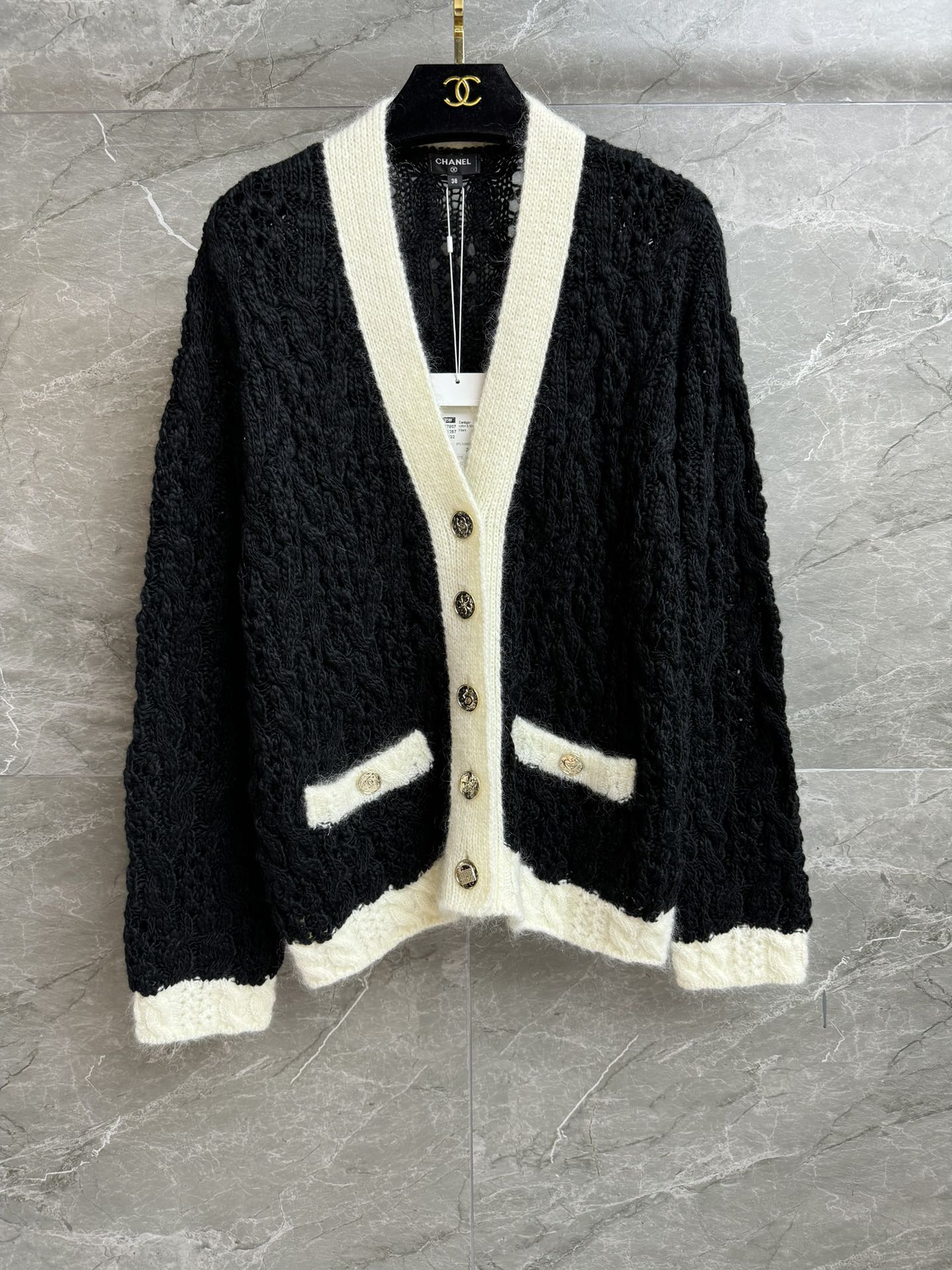 这款衣服是AAAAA 1:1 质量 (非常棒). 使用了和原版一模一样的材料. 商标部分也保持了和香奈儿/Chanel一样. 图片拍摄是实物衣服拍摄, 您所收到的实物保证和我们图片一模一样.