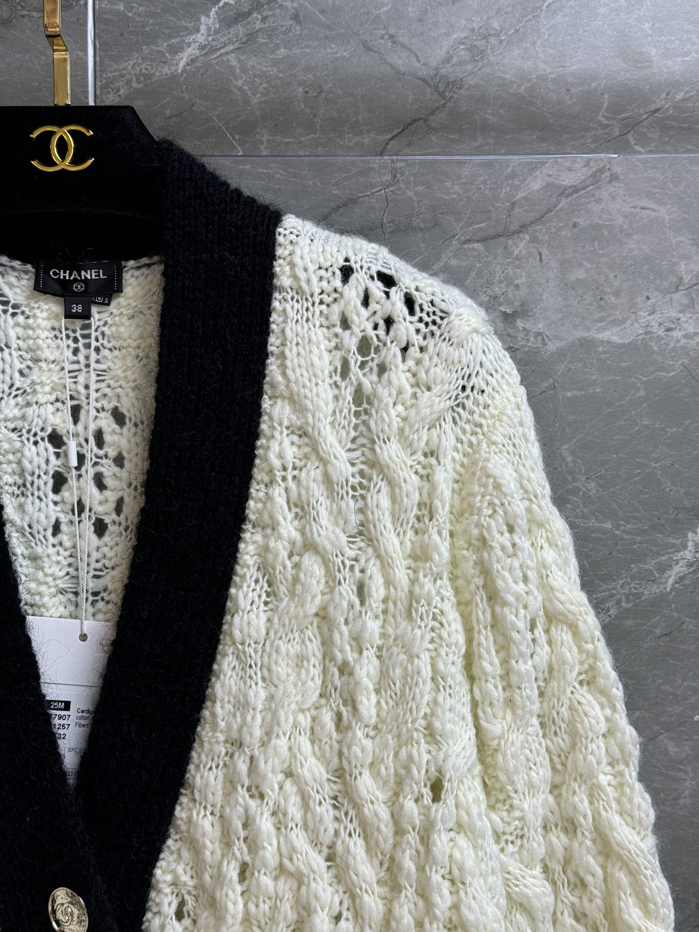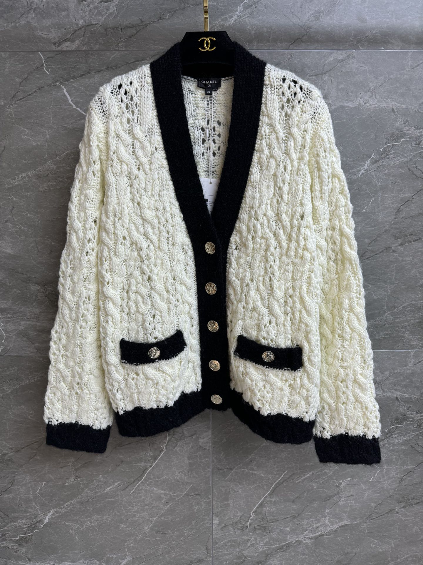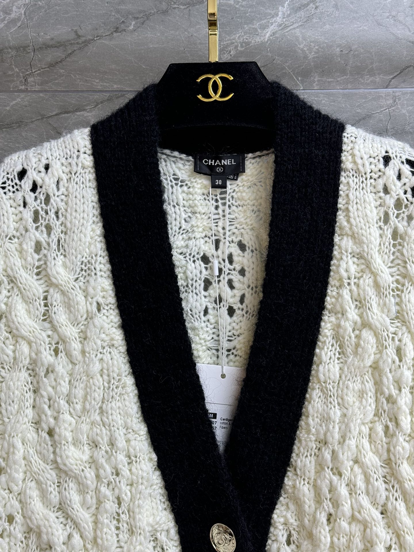 这款衣服是AAAAA 1:1 质量 (非常棒). 使用了和原版一模一样的材料. 商标部分也保持了和香奈儿/Chanel一样. 图片拍摄是实物衣服拍摄, 您所收到的实物保证和我们图片一模一样.