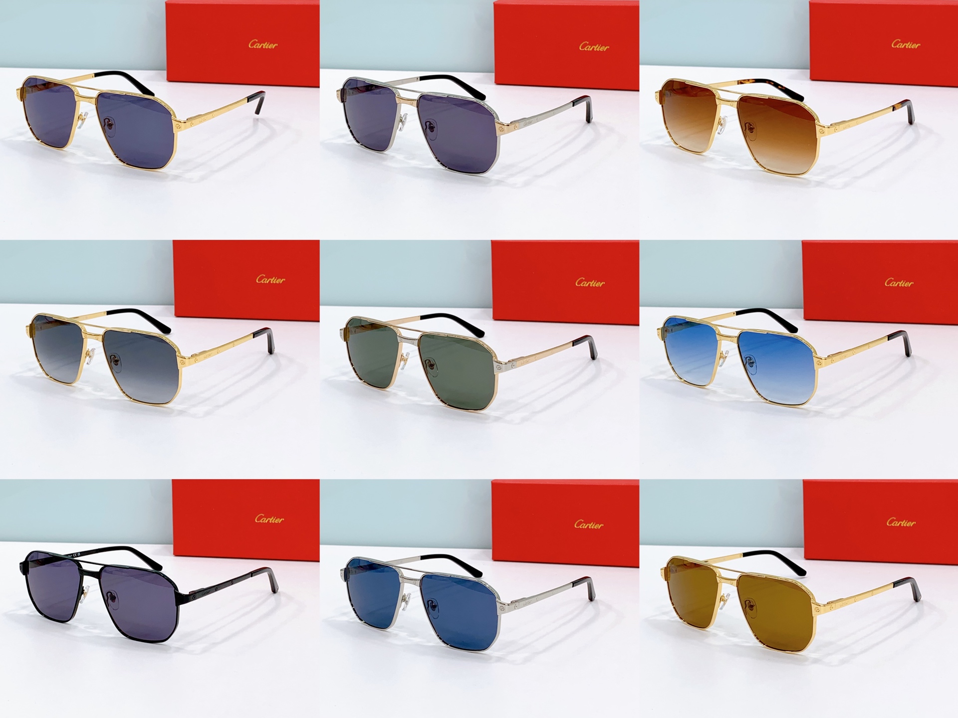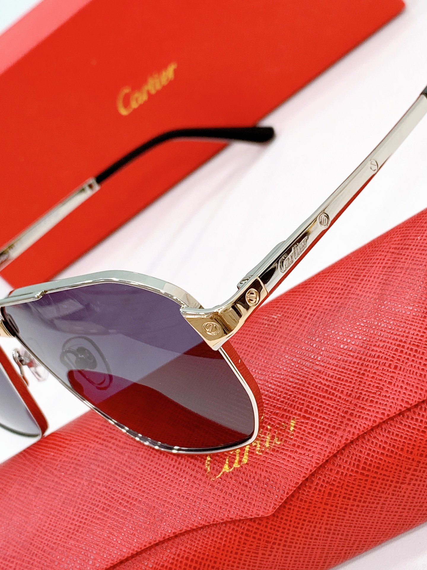这款太阳眼镜是AAAAA 1:1 质量 (非常棒). 使用了和原版一模一样的材料. 商标部分也保持了和卡地亚/Cartier一样. 图片拍摄是实物太阳眼镜拍摄, 您所收到的实物保证和我们图片一模一样.