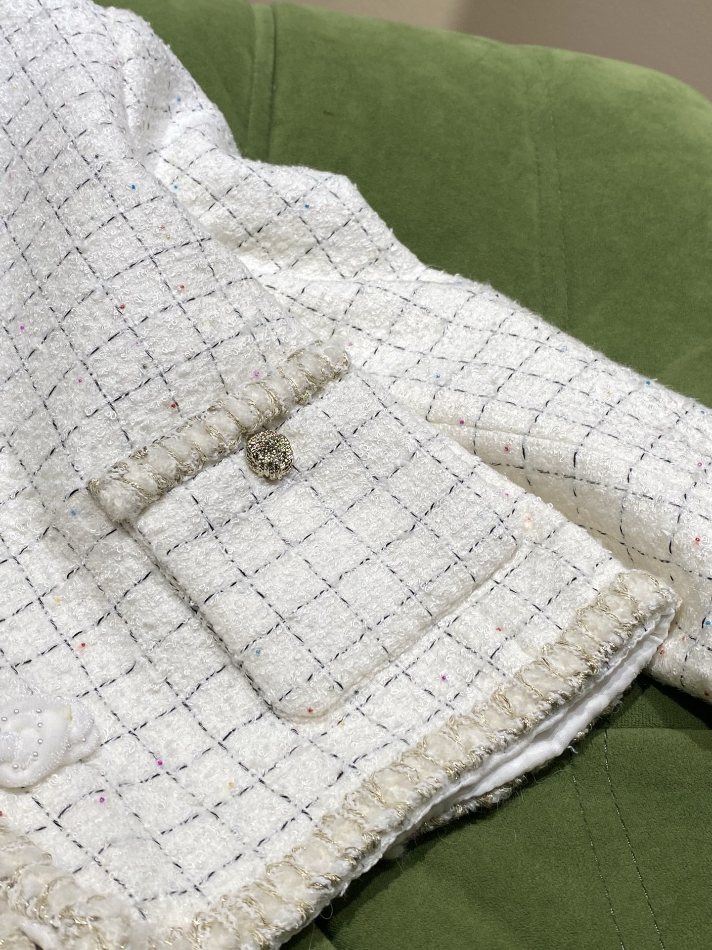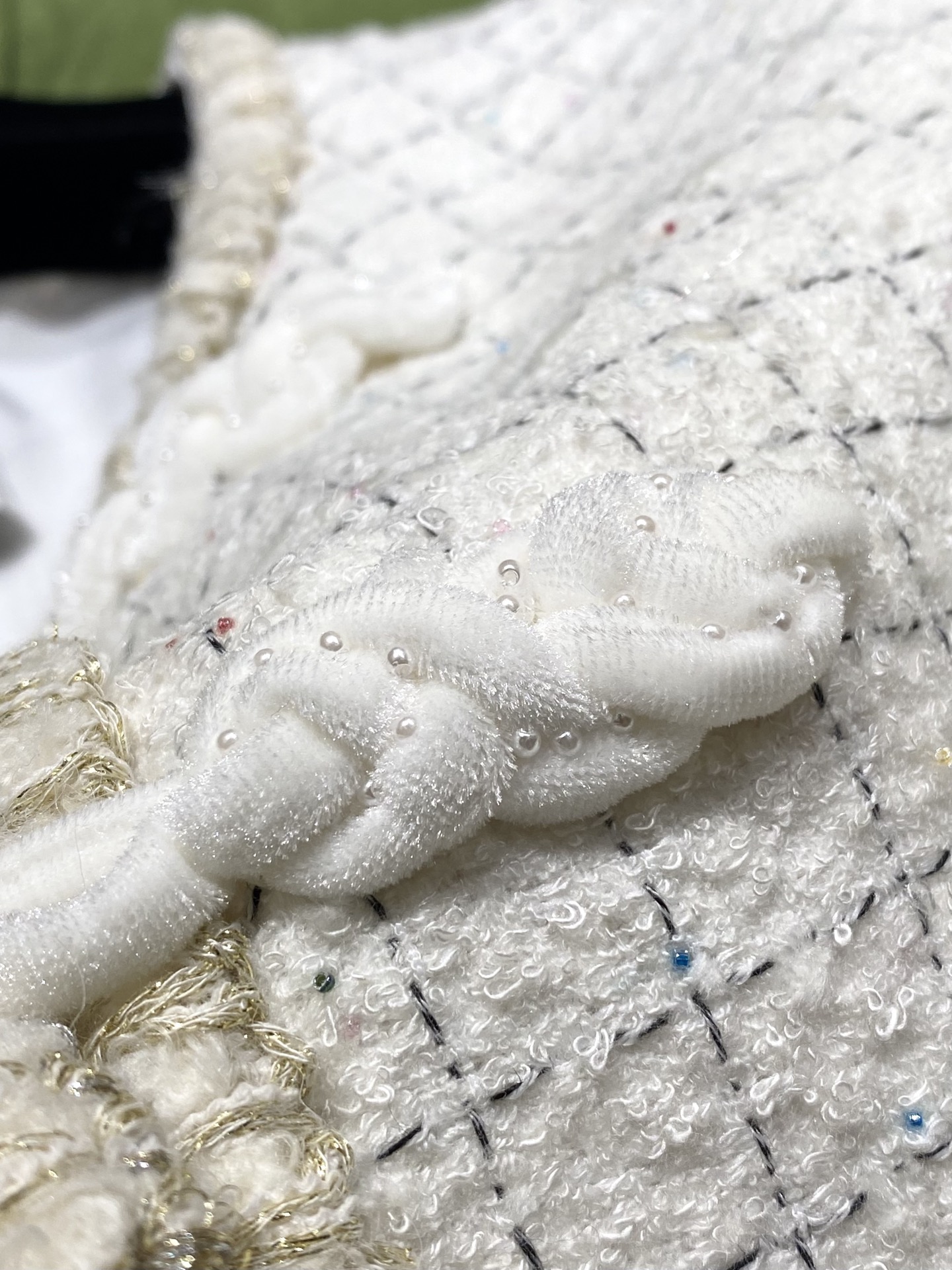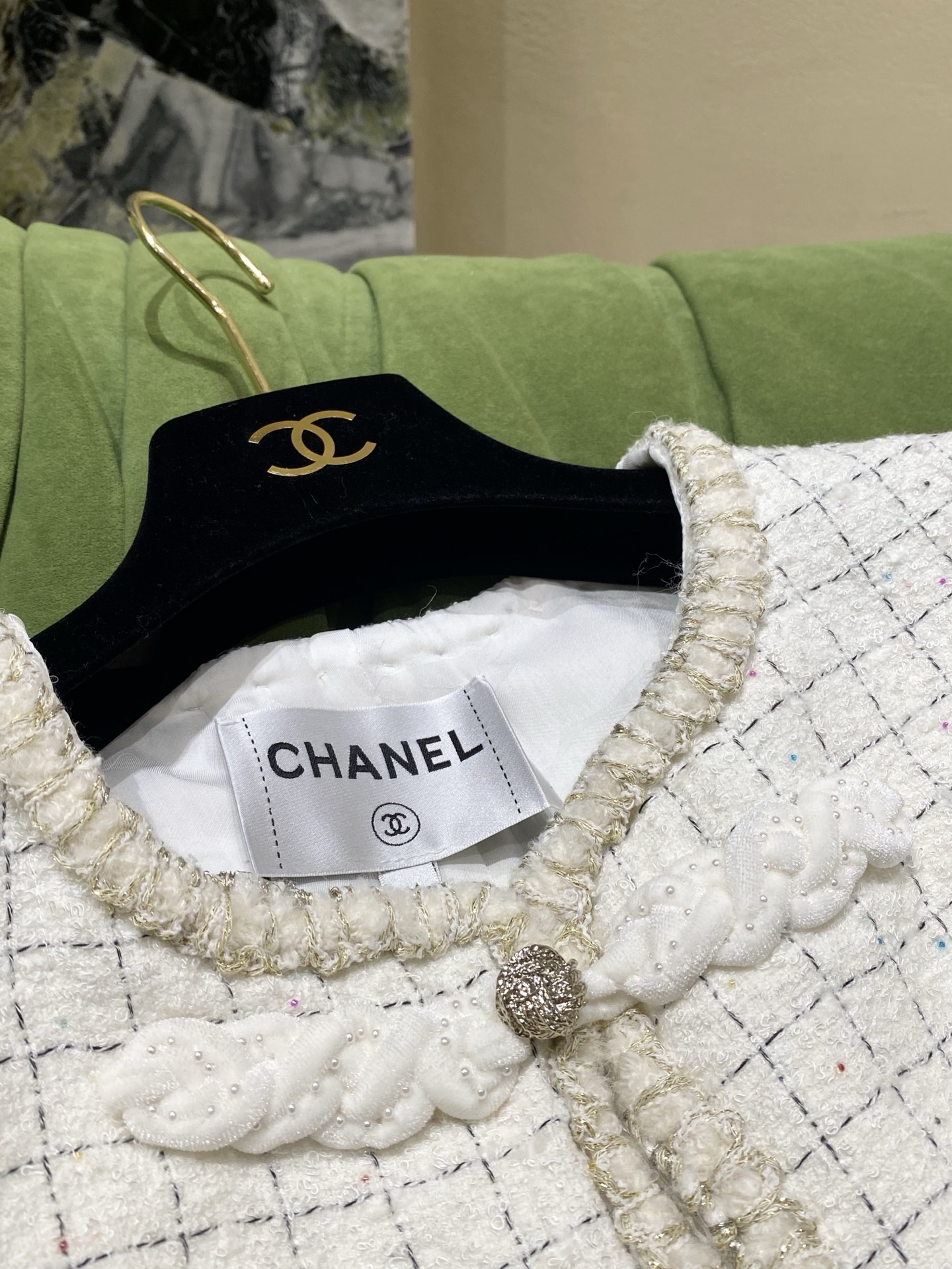 这款衣服是AAAAA 1:1 质量 (非常棒). 使用了和原版一模一样的材料. 商标部分也保持了和香奈儿/Chanel一样. 图片拍摄是实物衣服拍摄, 您所收到的实物保证和我们图片一模一样.