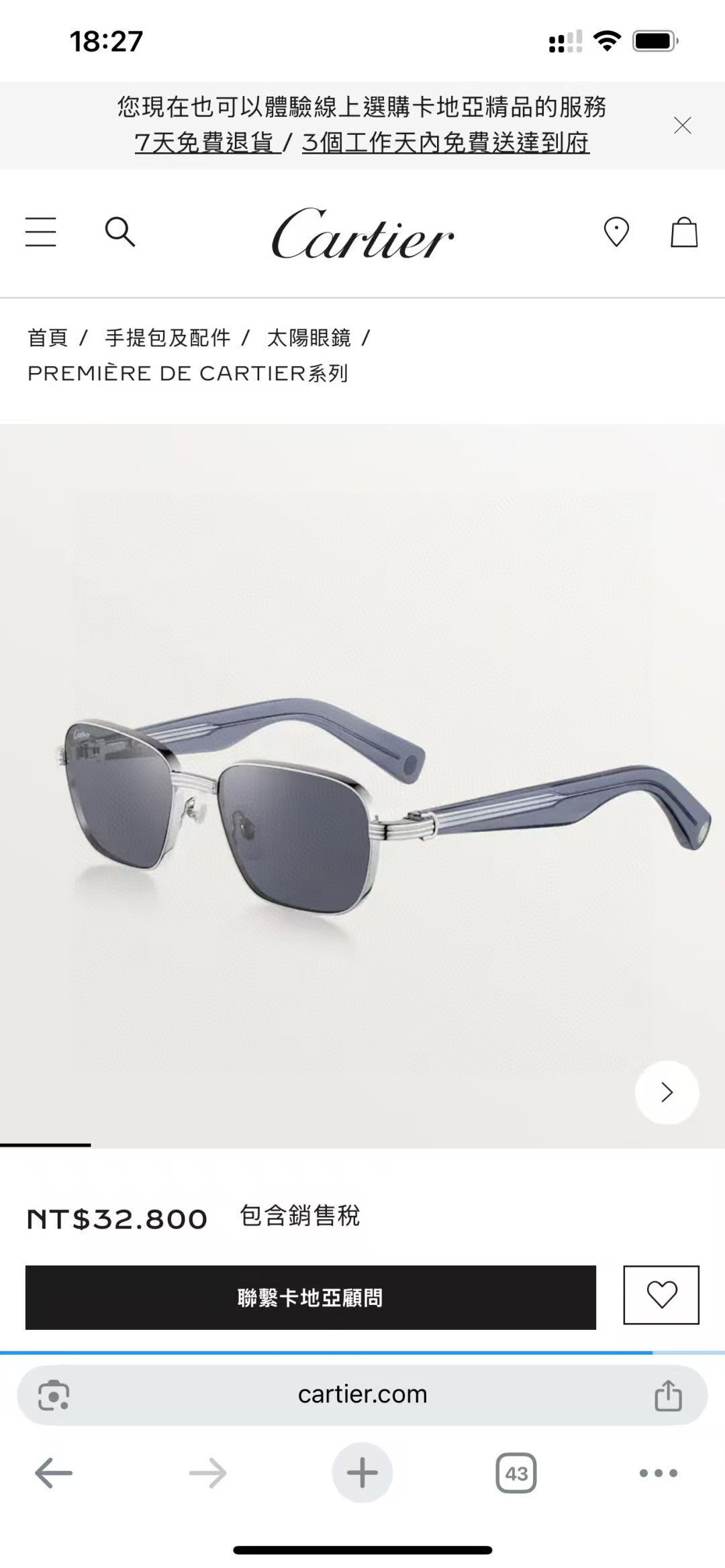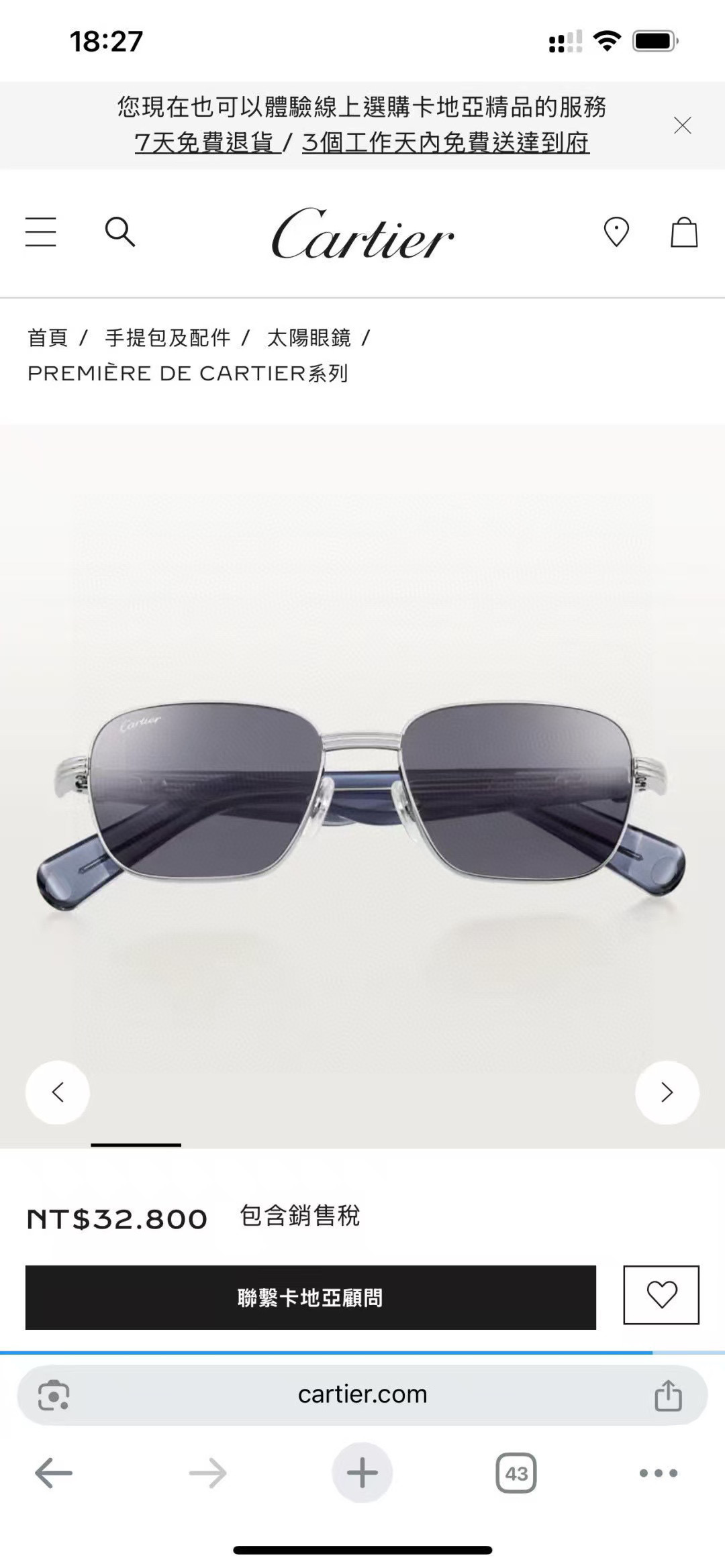这款太阳眼镜是AAAAA 1:1 质量 (非常棒). 使用了和原版一模一样的材料. 商标部分也保持了和卡地亚/Cartier一样. 图片拍摄是实物太阳眼镜拍摄, 您所收到的实物保证和我们图片一模一样.