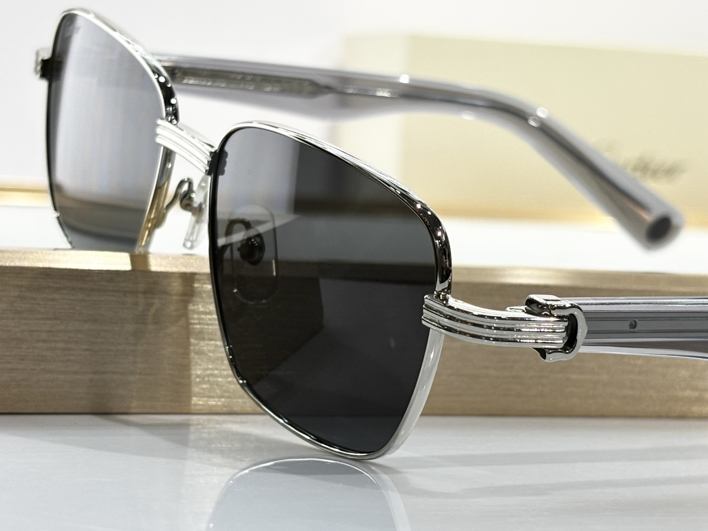 这款太阳眼镜是AAAAA 1:1 质量 (非常棒). 使用了和原版一模一样的材料. 商标部分也保持了和卡地亚/Cartier一样. 图片拍摄是实物太阳眼镜拍摄, 您所收到的实物保证和我们图片一模一样.