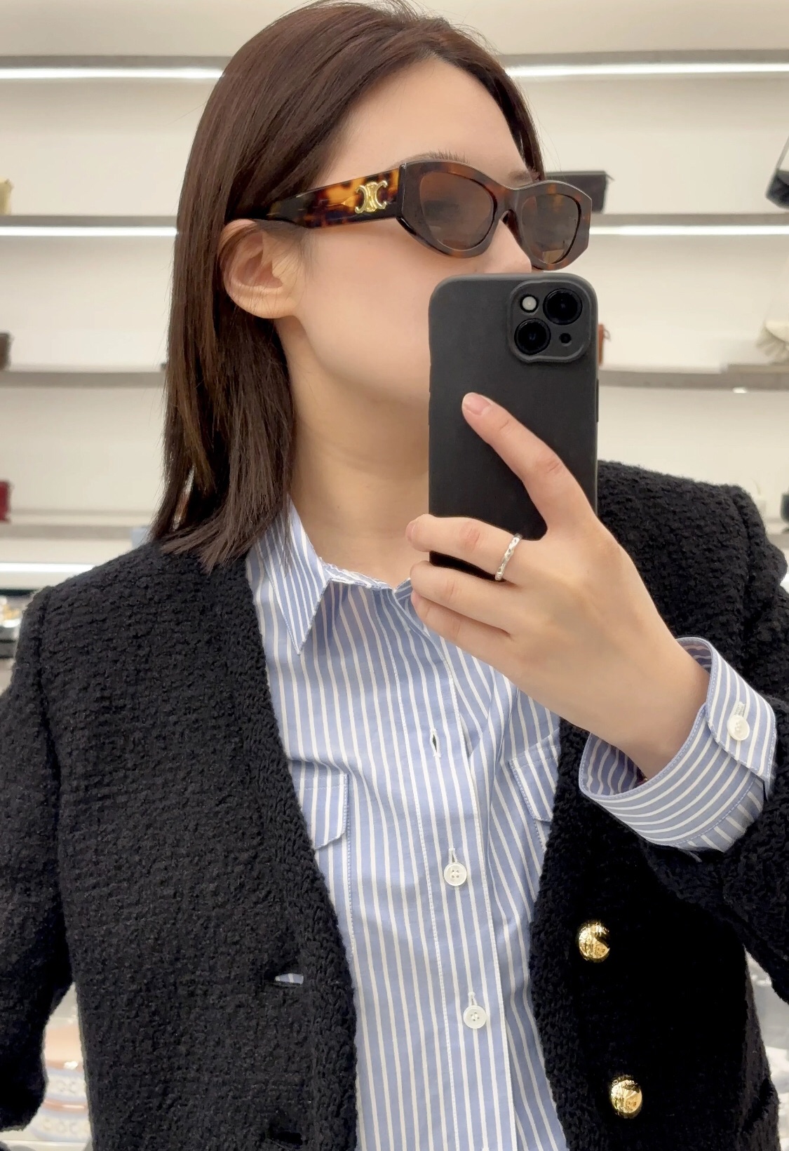 这款太阳眼镜是AAAAA 1:1 质量 (非常棒). 使用了和原版一模一样的材料. 商标部分也保持了和思琳/Celine一样. 图片拍摄是实物太阳眼镜拍摄, 您所收到的实物保证和我们图片一模一样.