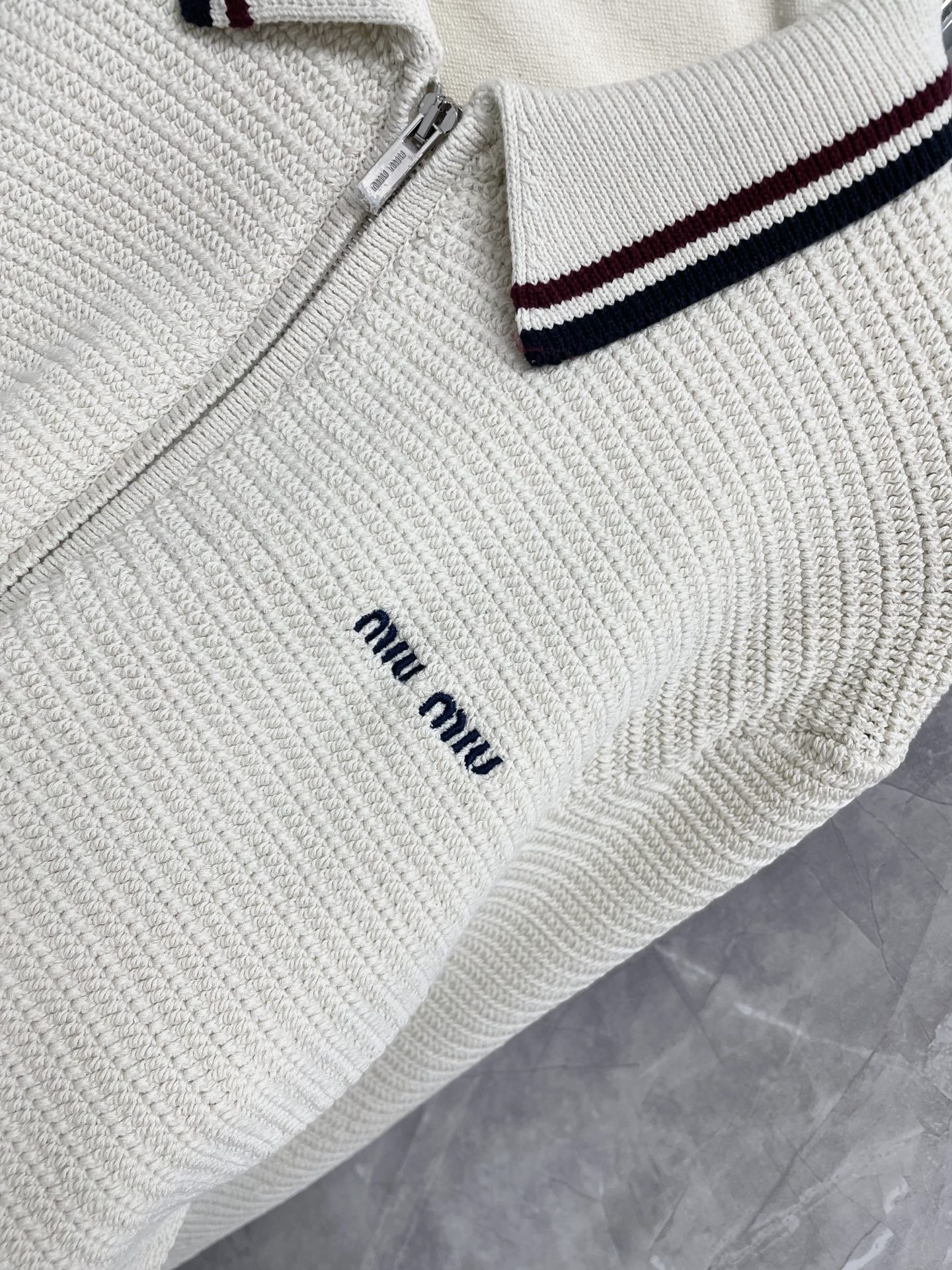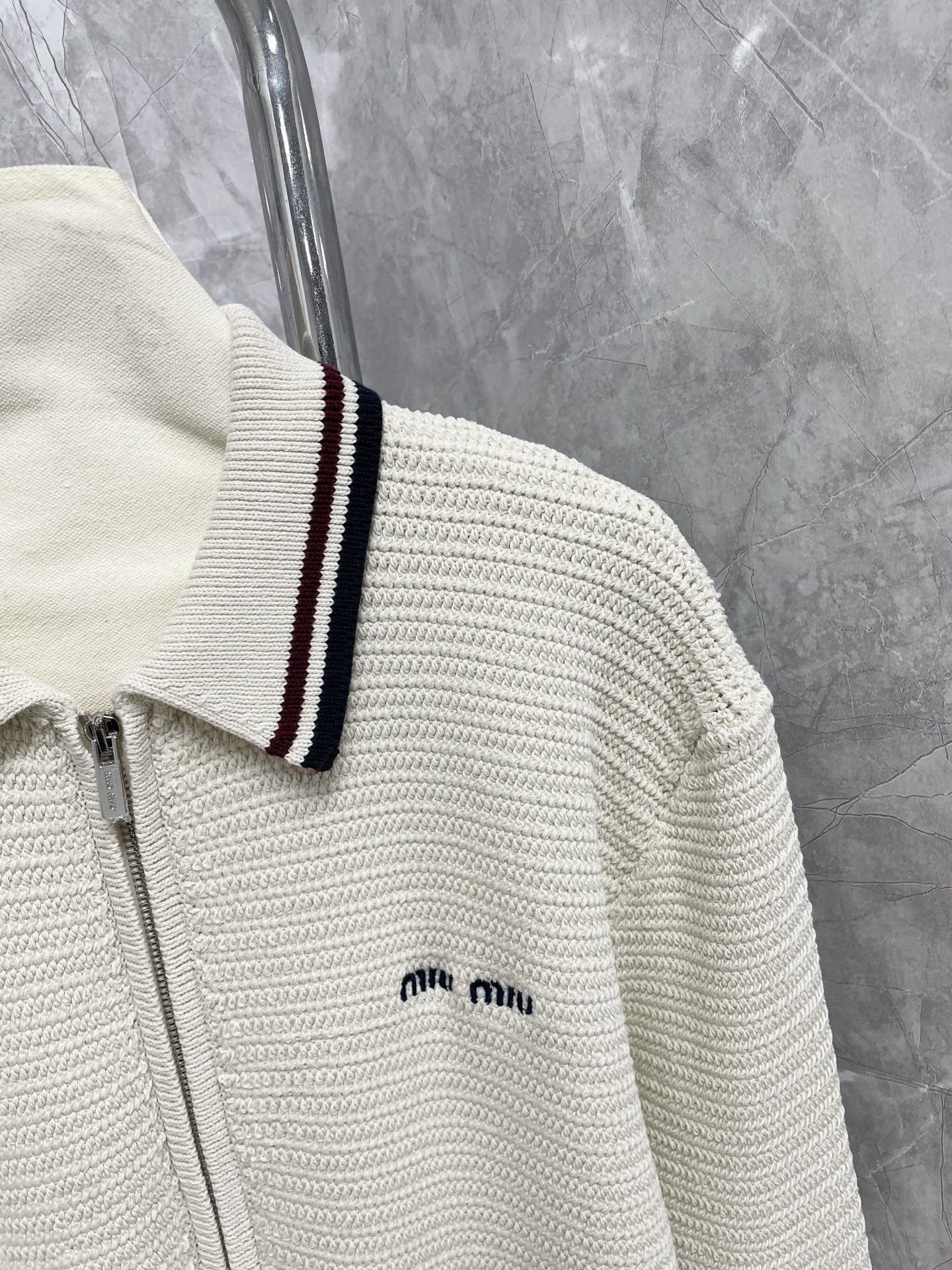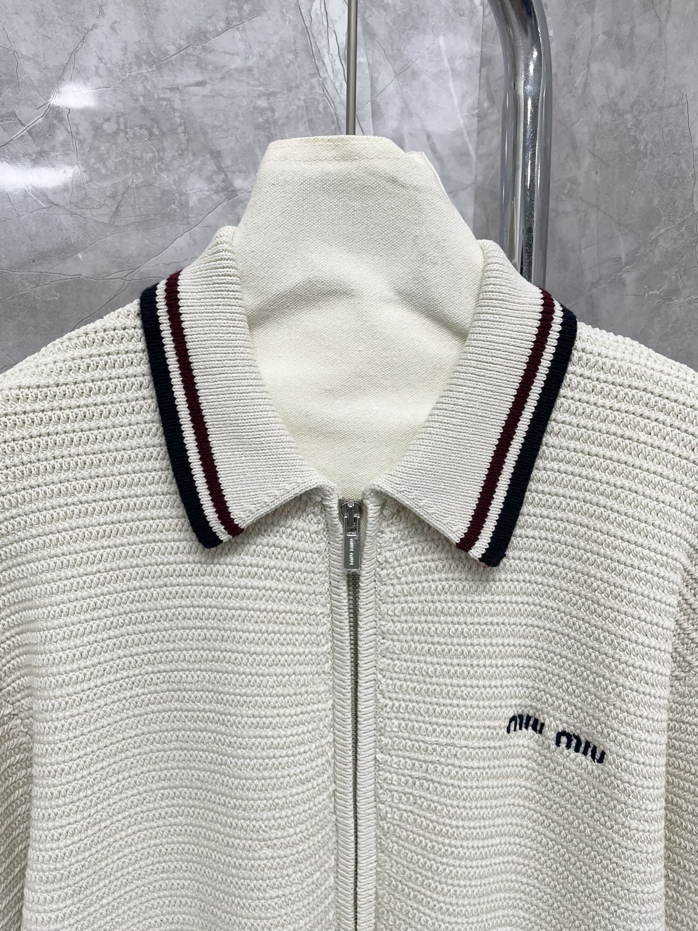 这款衣服是AAAAA 1:1 质量 (非常棒). 使用了和原版一模一样的材料. 商标部分也保持了和缪缪/Miu Miu一样. 图片拍摄是实物衣服拍摄, 您所收到的实物保证和我们图片一模一样.