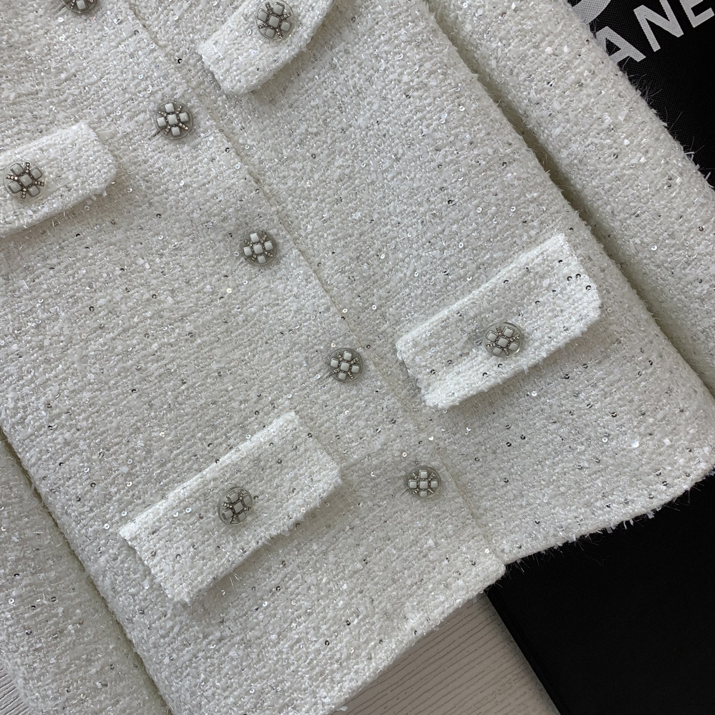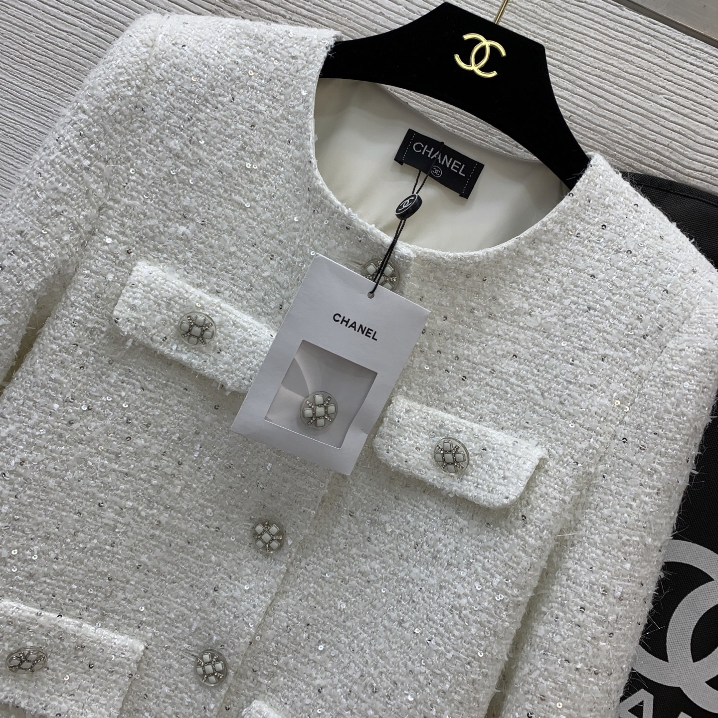 这款衣服是AAAAA 1:1 质量 (非常棒). 使用了和原版一模一样的材料. 商标部分也保持了和香奈儿/Chanel一样. 图片拍摄是实物衣服拍摄, 您所收到的实物保证和我们图片一模一样.