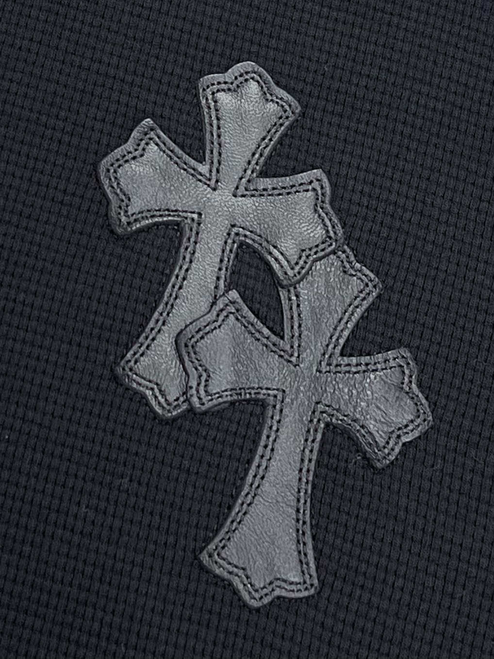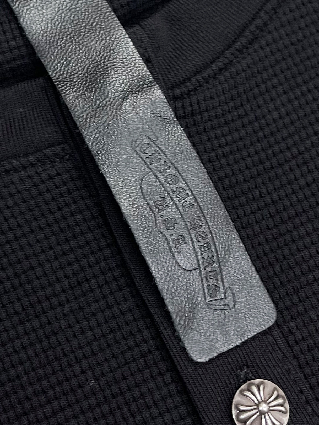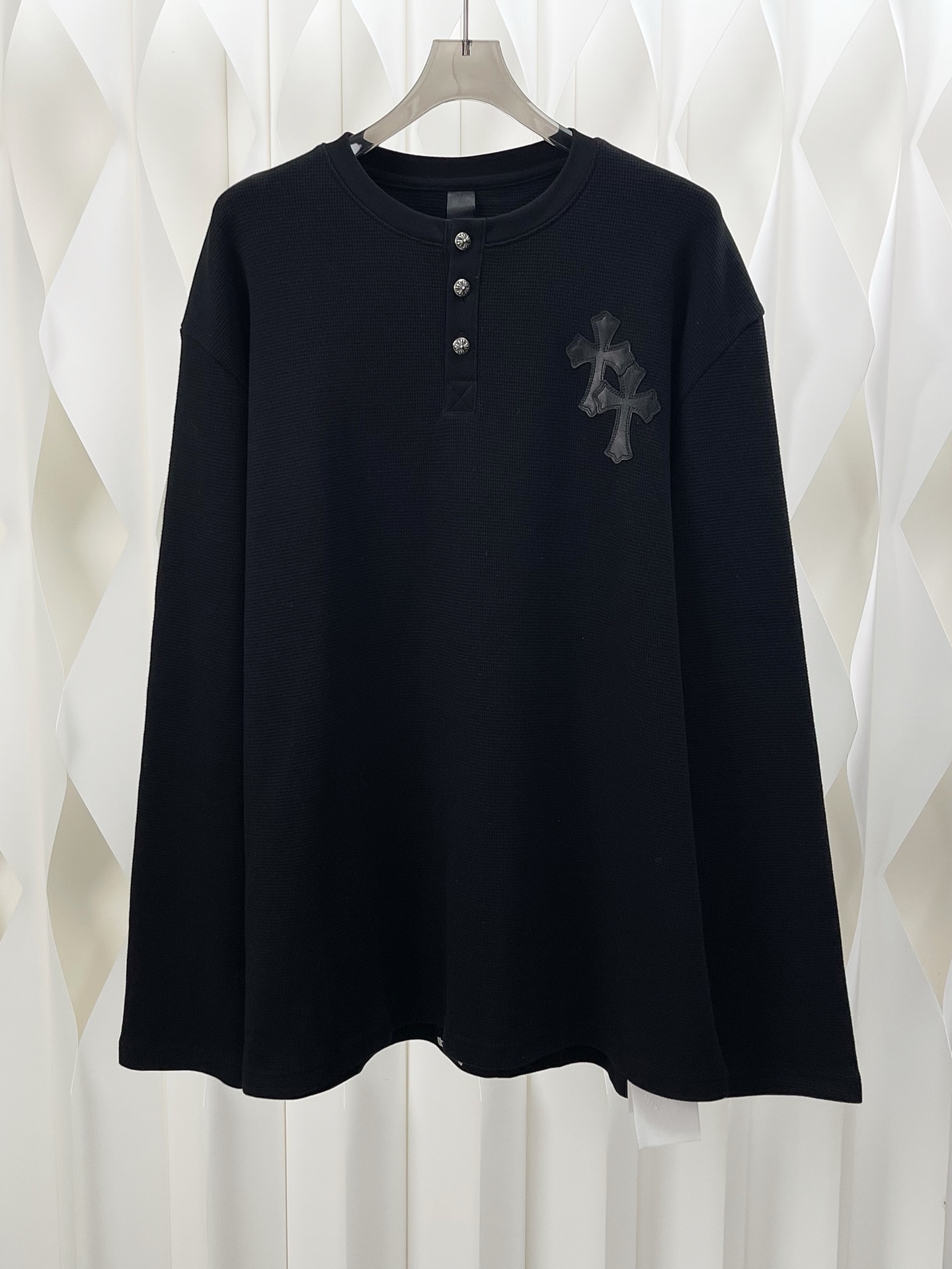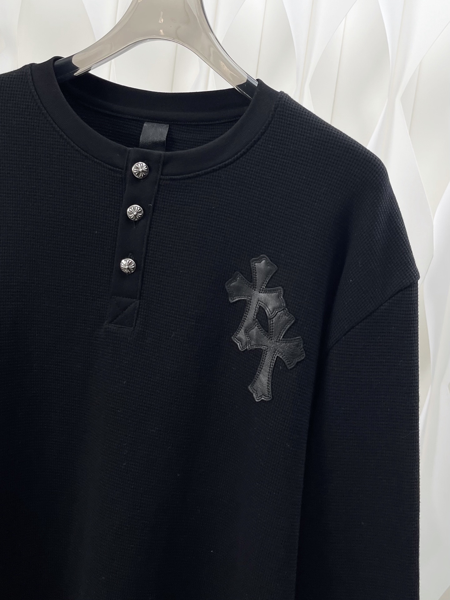 这款衣服是AAAAA 1:1 质量 (非常棒). 使用了和原版一模一样的材料. 商标部分也保持了和克罗心/Chrome Hearts一样. 图片拍摄是实物衣服拍摄, 您所收到的实物保证和我们图片一模一样.