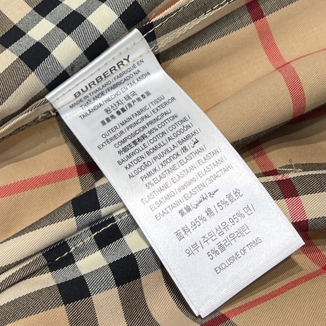 这款衣服是AAAAA 1:1 质量 (非常棒). 使用了和原版一模一样的材料. 商标部分也保持了和巴宝莉/Burberry一样. 图片拍摄是实物衣服拍摄, 您所收到的实物保证和我们图片一模一样.