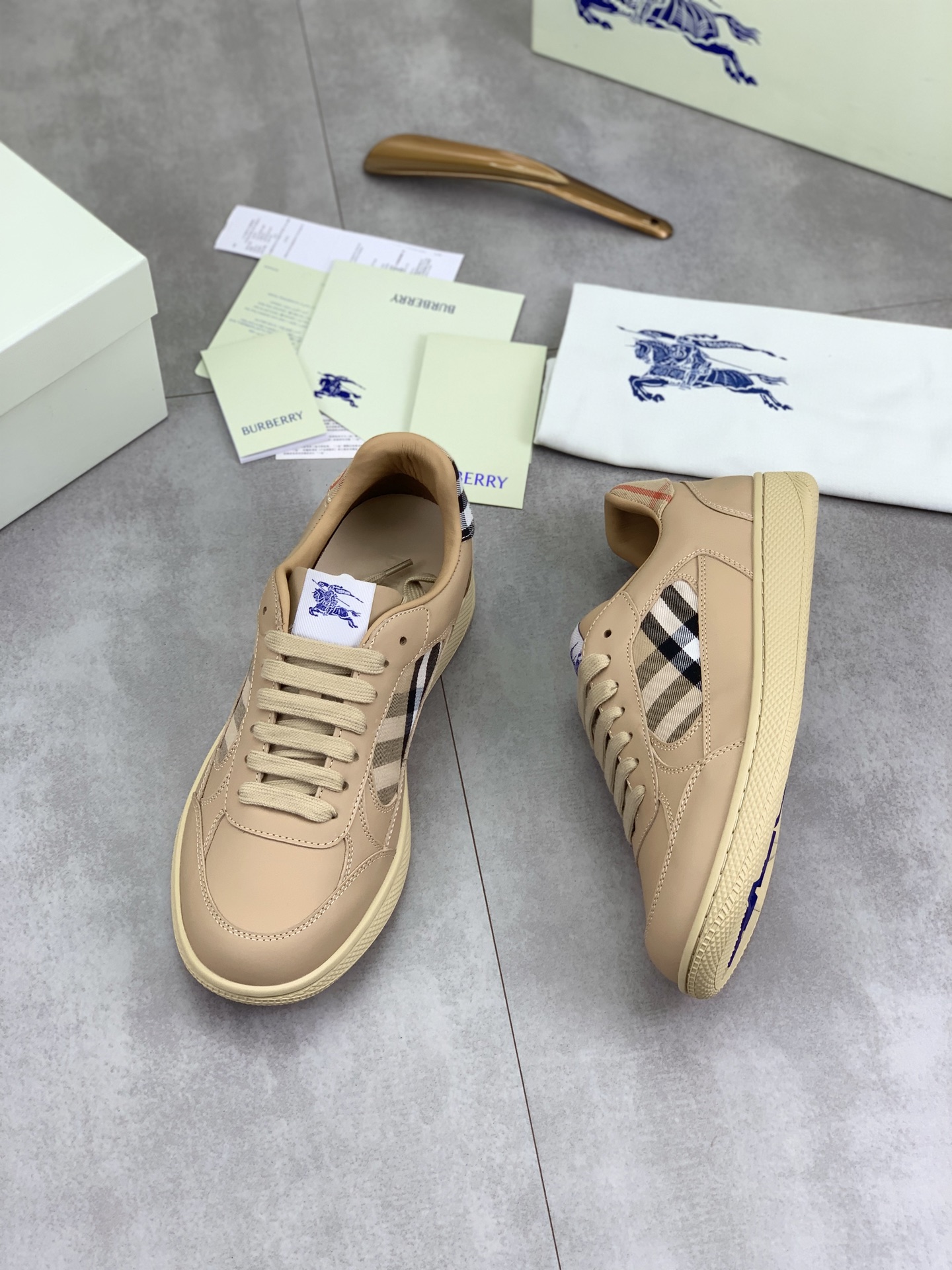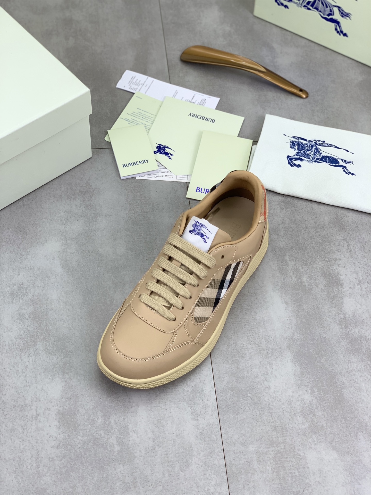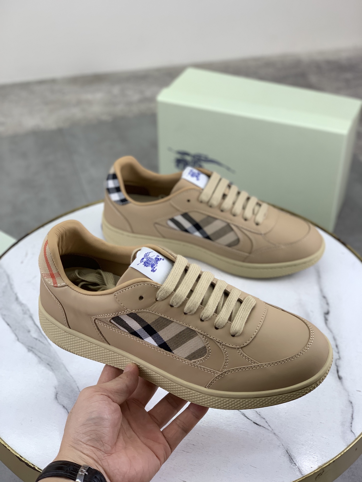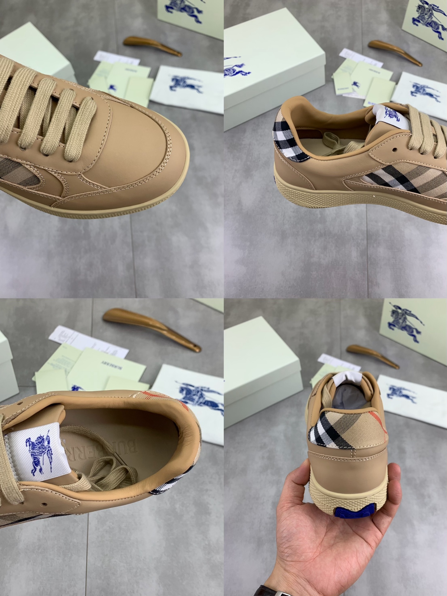 这款鞋子是AAAAA 1:1 质量 (非常棒). 使用了和原版一模一样的材料. 商标部分也保持了和巴宝莉/Burberry一样. 图片拍摄是实物鞋子拍摄, 您所收到的实物保证和我们图片一模一样.