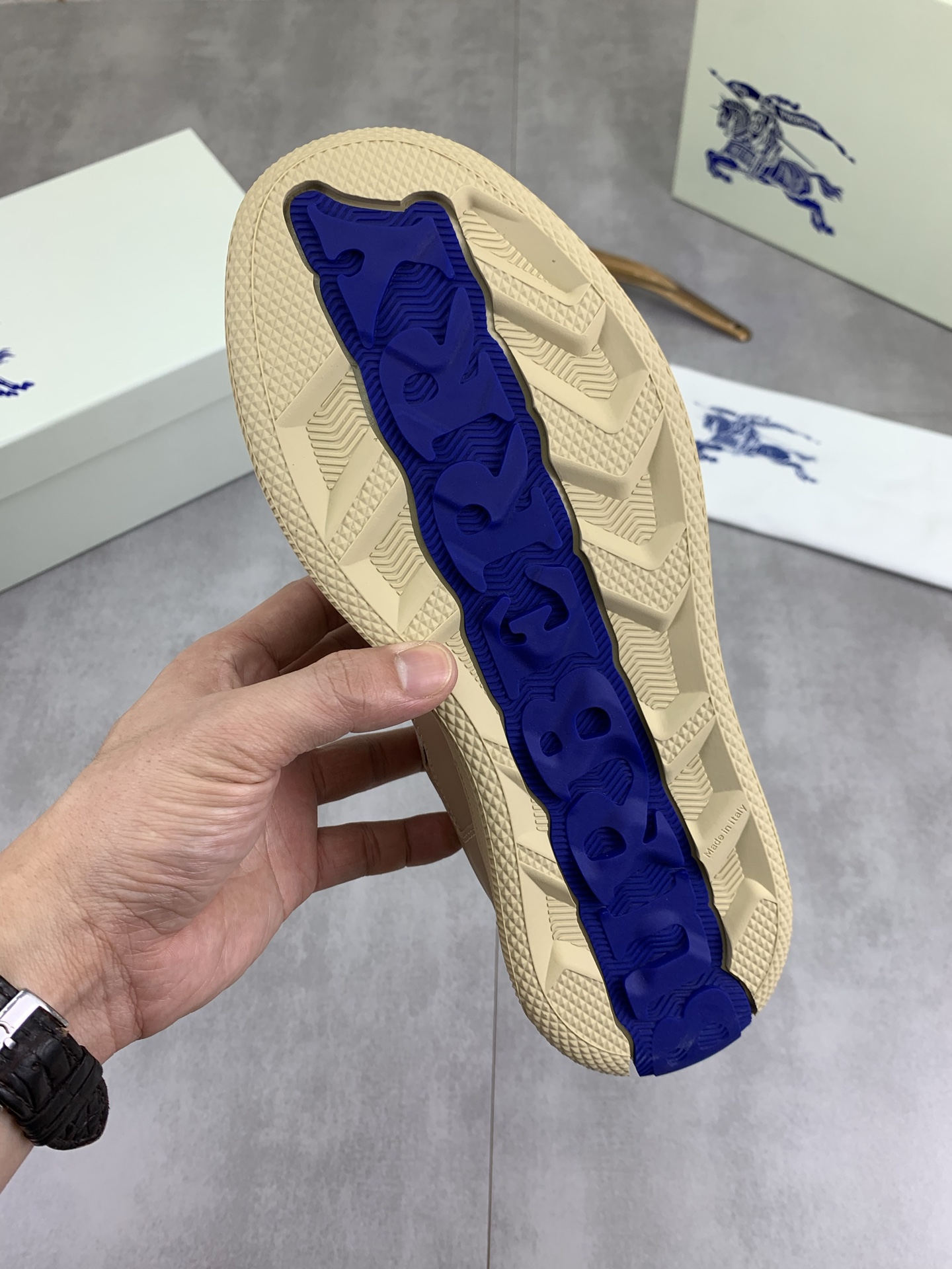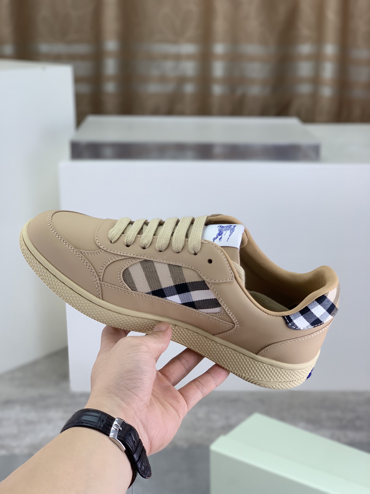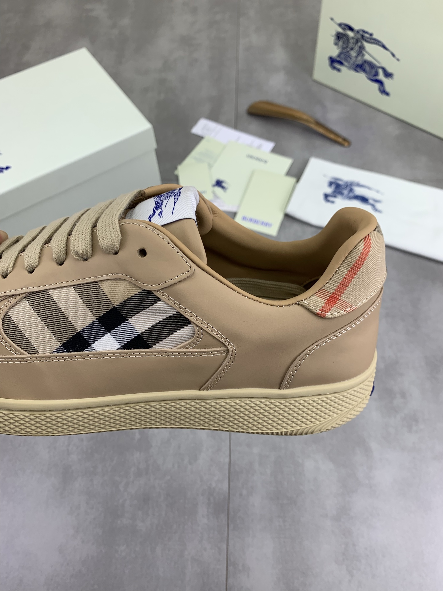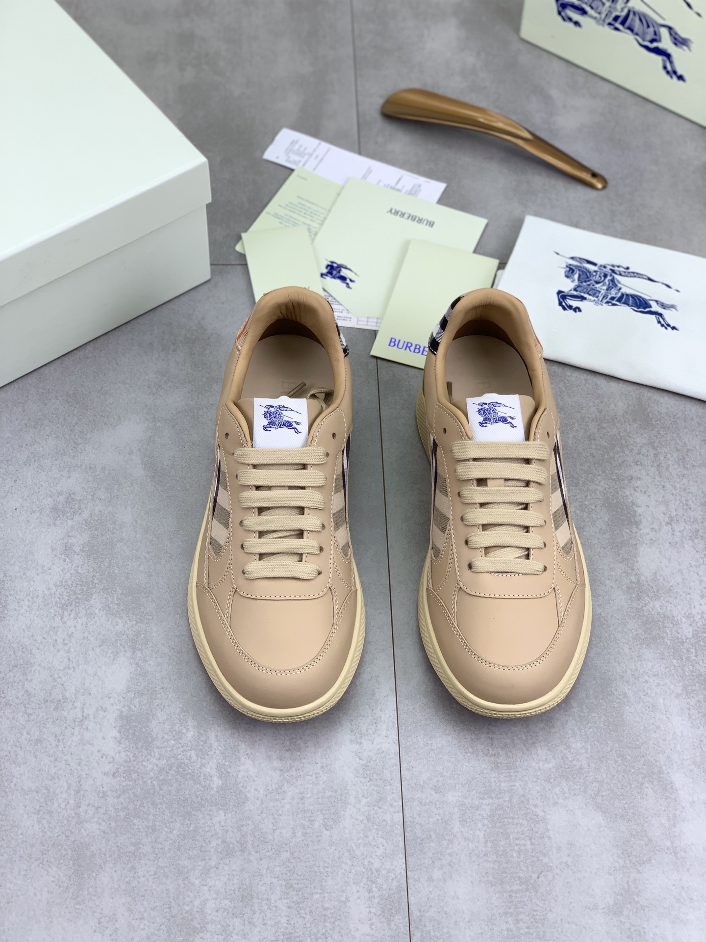 这款鞋子是AAAAA 1:1 质量 (非常棒). 使用了和原版一模一样的材料. 商标部分也保持了和巴宝莉/Burberry一样. 图片拍摄是实物鞋子拍摄, 您所收到的实物保证和我们图片一模一样.