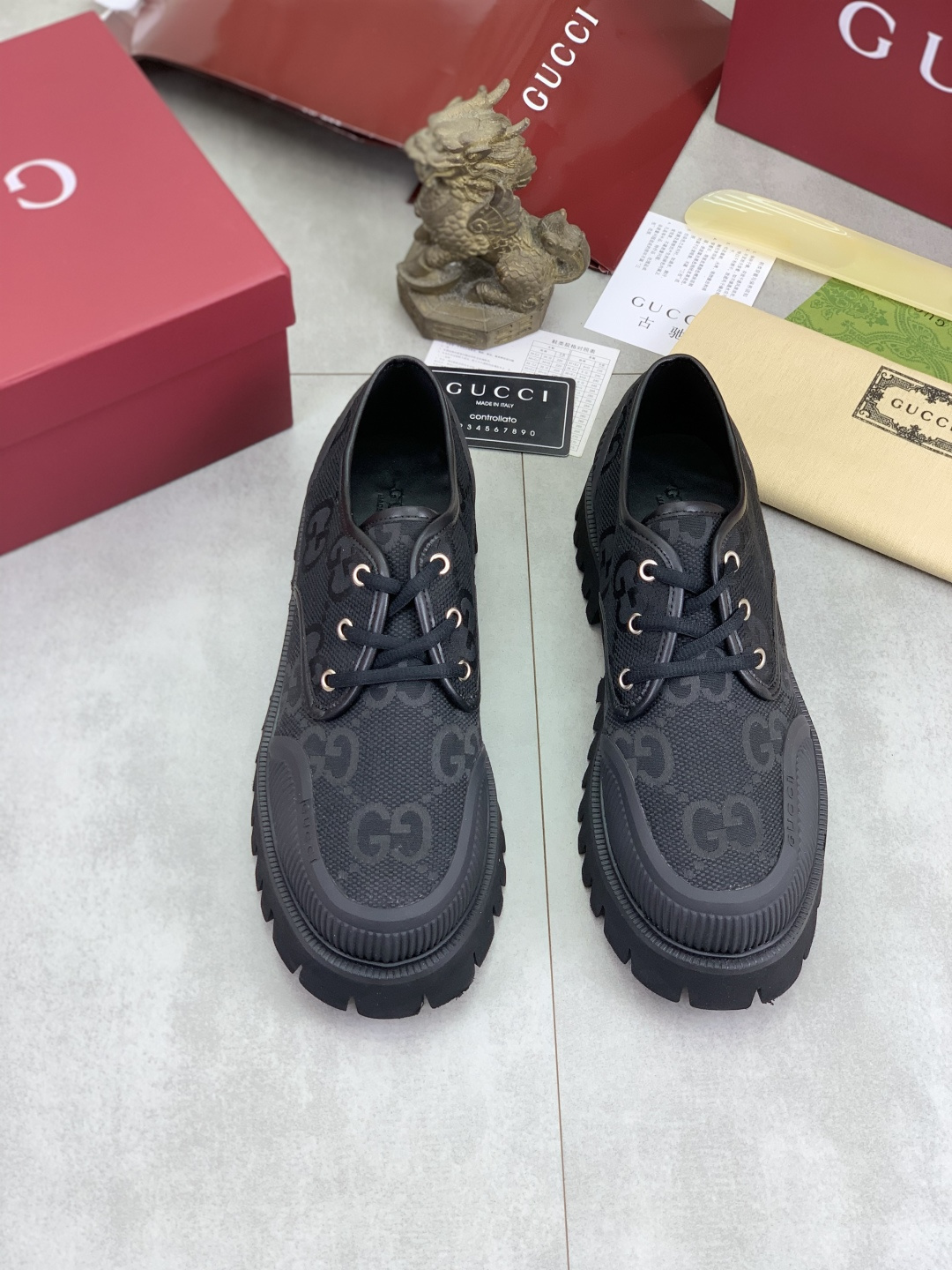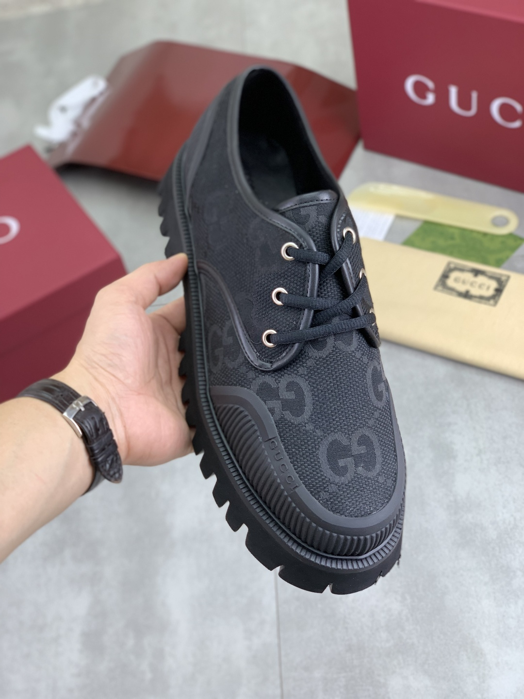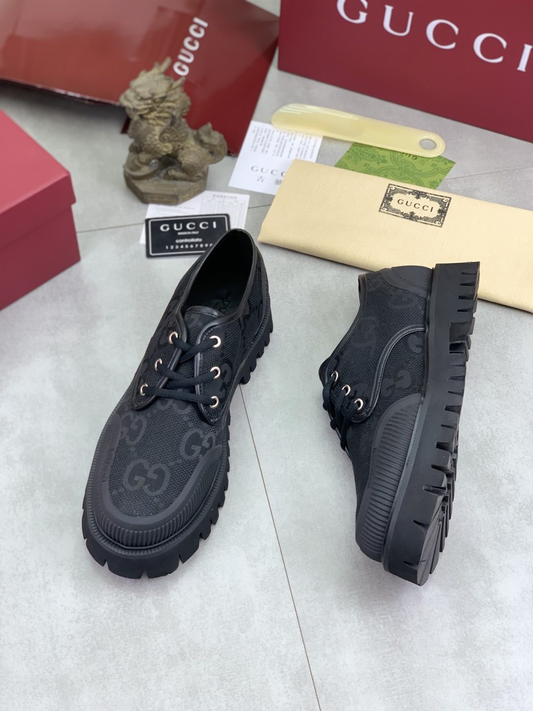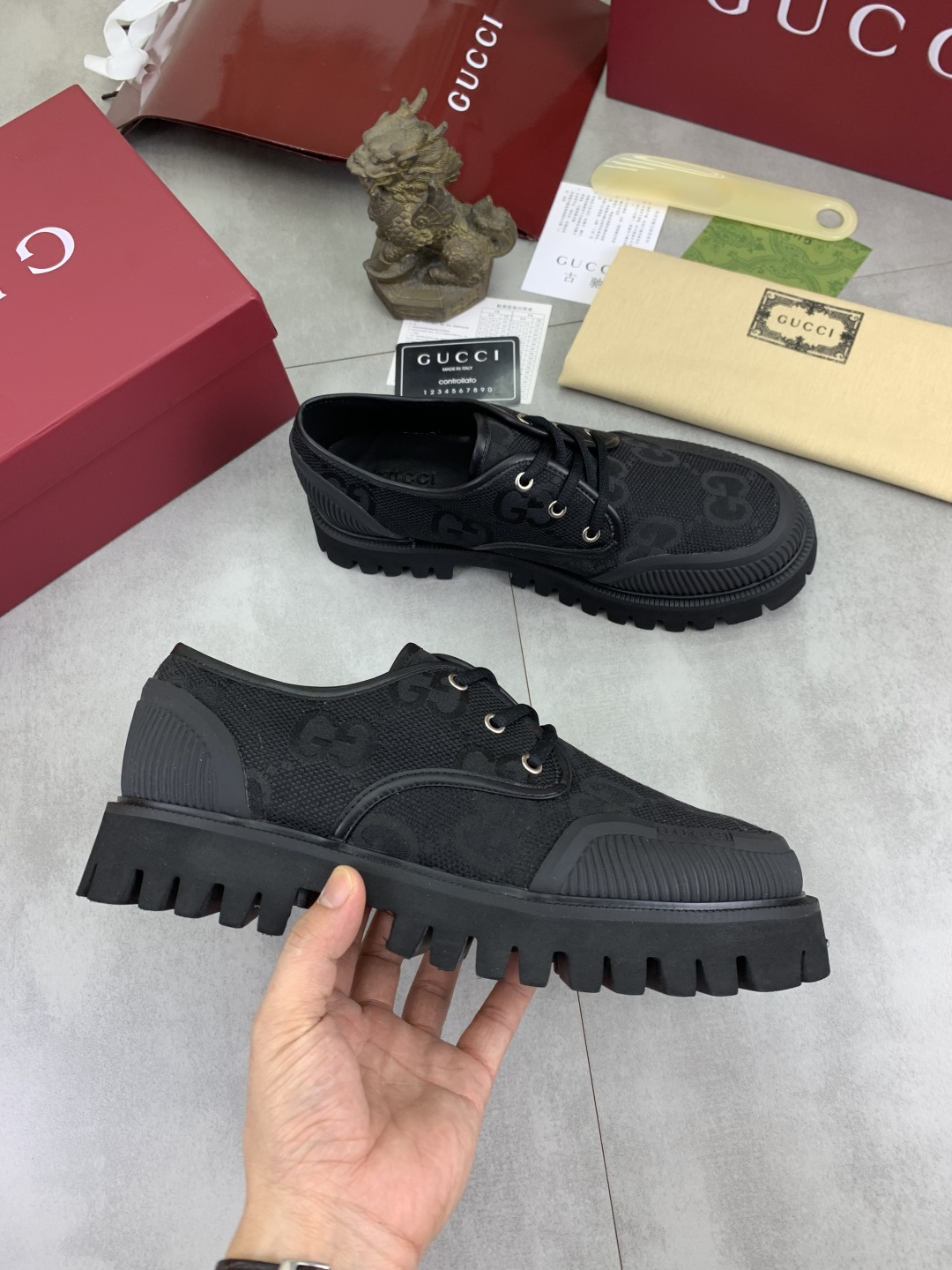 这款鞋子是AAAAA 1:1 质量 (非常棒). 使用了和原版一模一样的材料. 商标部分也保持了和古奇/Gucci一样. 图片拍摄是实物鞋子拍摄, 您所收到的实物保证和我们图片一模一样.