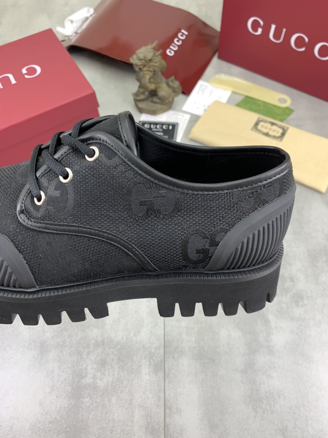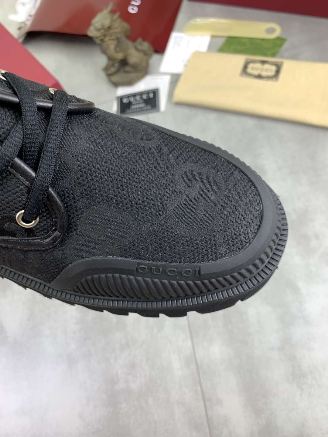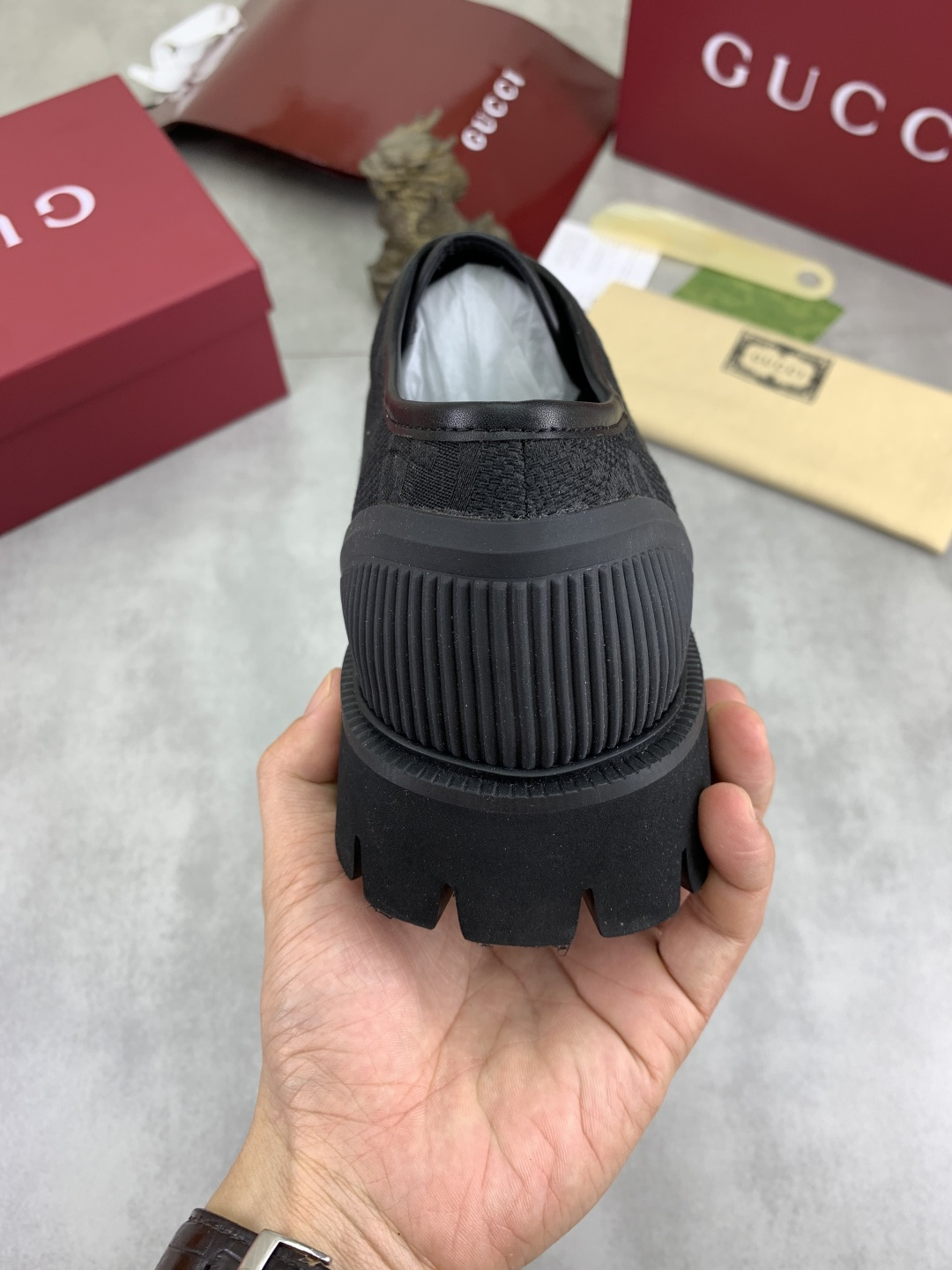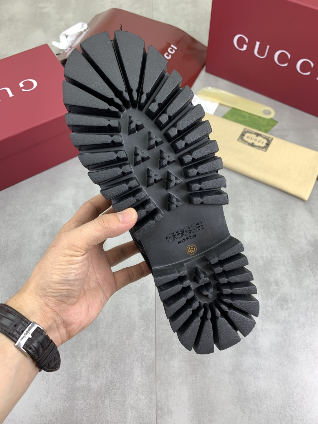 这款鞋子是AAAAA 1:1 质量 (非常棒). 使用了和原版一模一样的材料. 商标部分也保持了和古奇/Gucci一样. 图片拍摄是实物鞋子拍摄, 您所收到的实物保证和我们图片一模一样.
