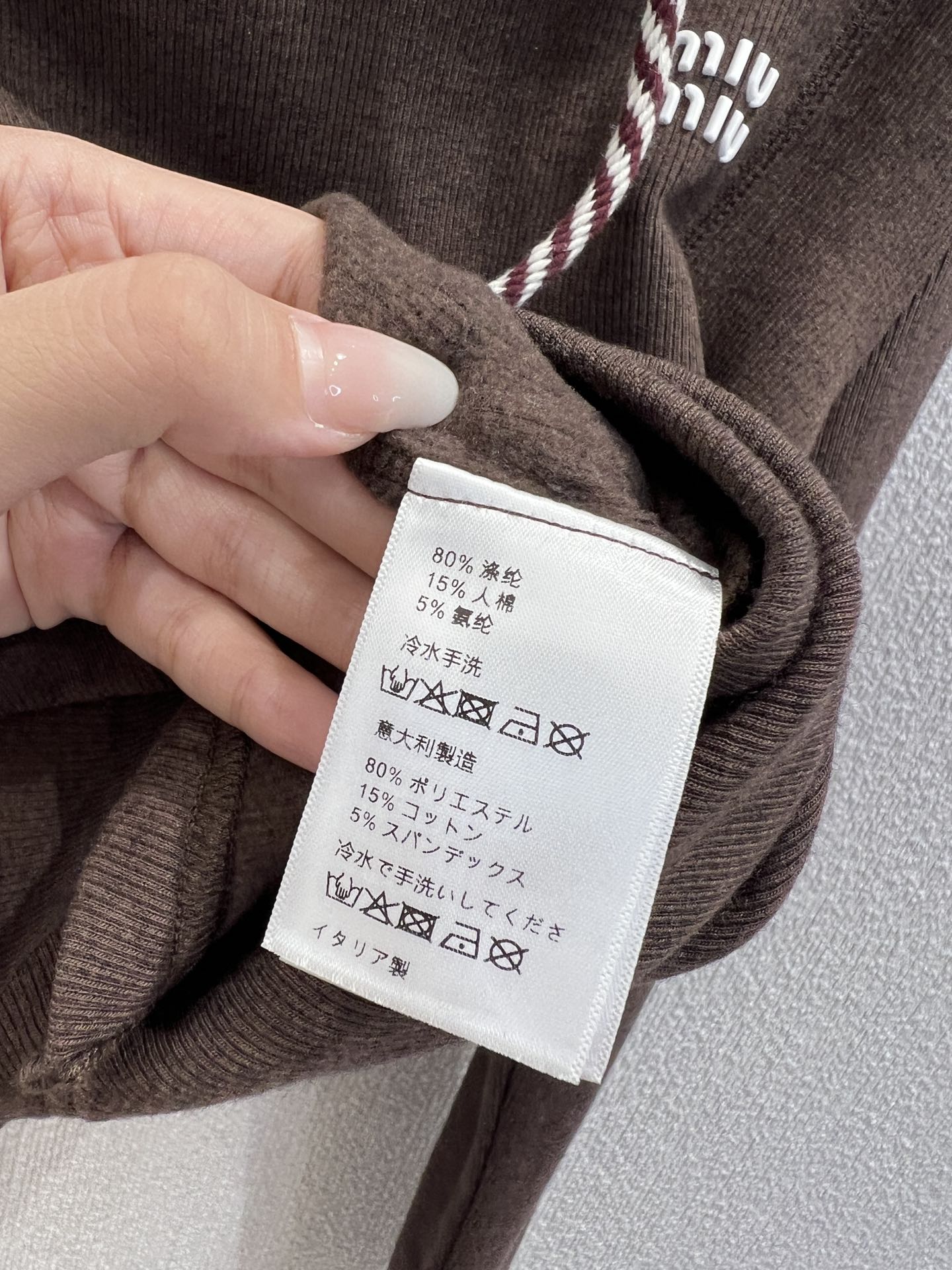 这款衣服是AAAAA 1:1 质量 (非常棒). 使用了和原版一模一样的材料. 商标部分也保持了和缪缪/Miu Miu一样. 图片拍摄是实物衣服拍摄, 您所收到的实物保证和我们图片一模一样.
