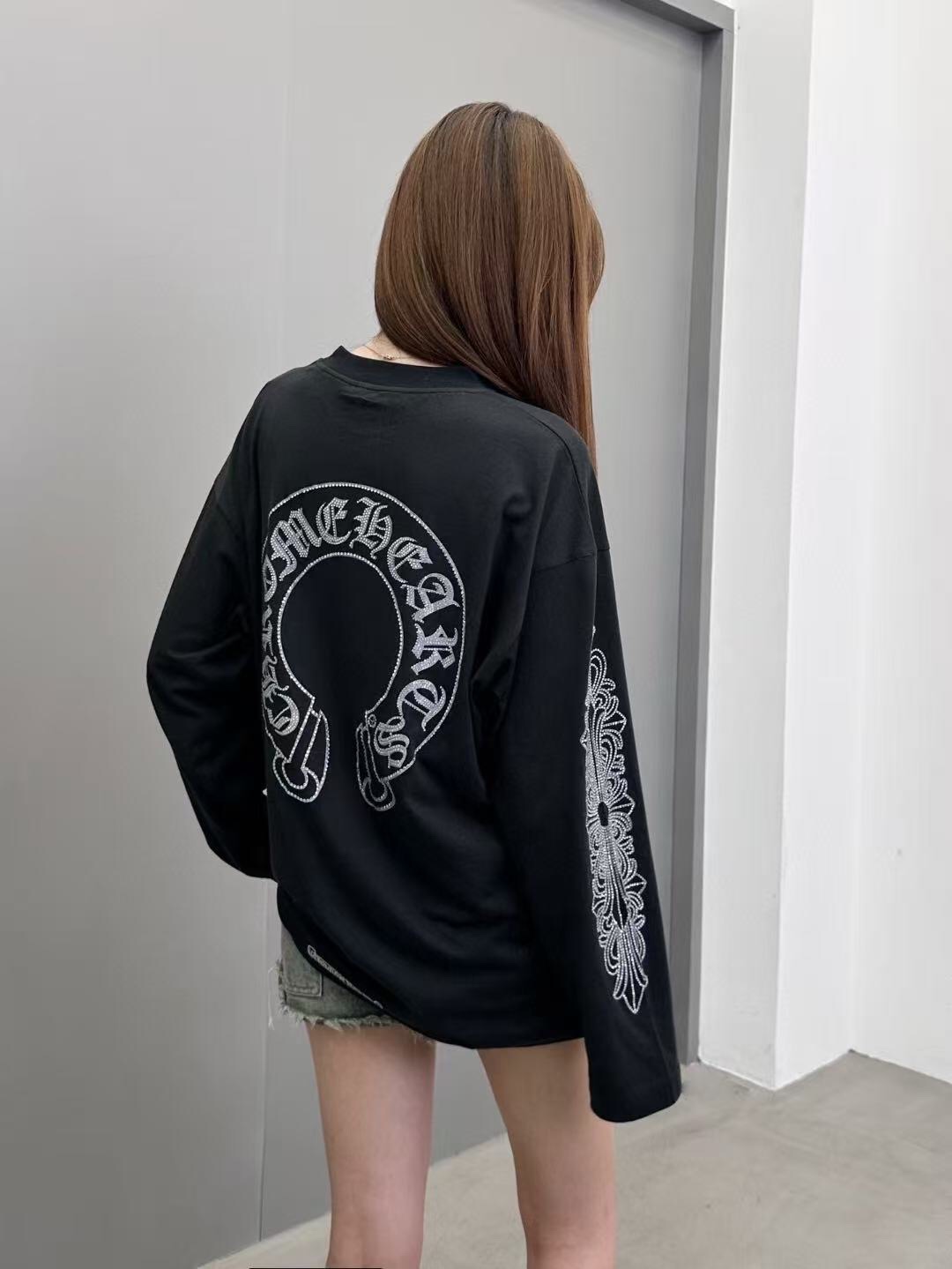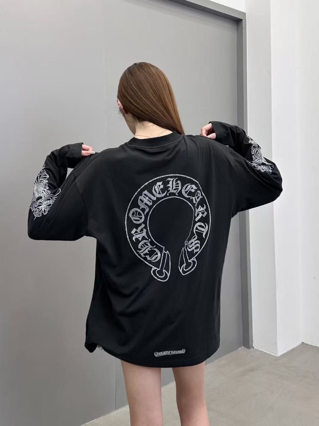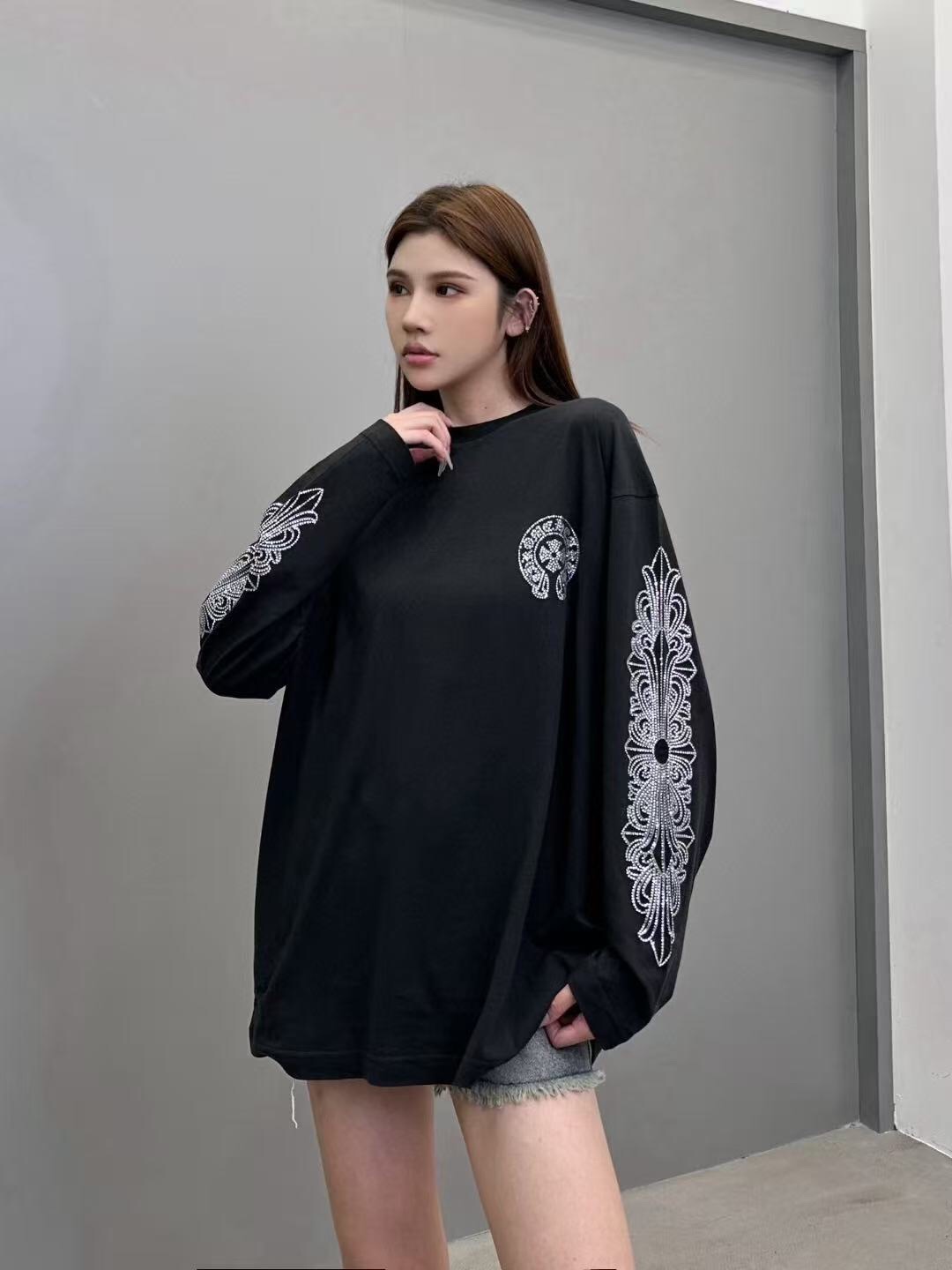 这款衣服是AAAAA 1:1 质量 (非常棒). 使用了和原版一模一样的材料. 商标部分也保持了和克罗心/Chrome Hearts一样. 图片拍摄是实物衣服拍摄, 您所收到的实物保证和我们图片一模一样.