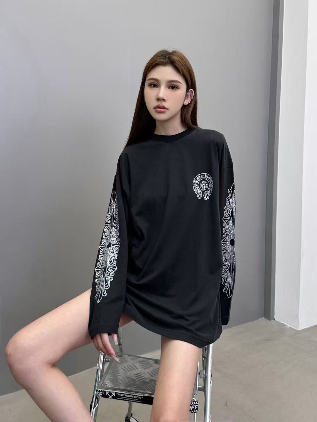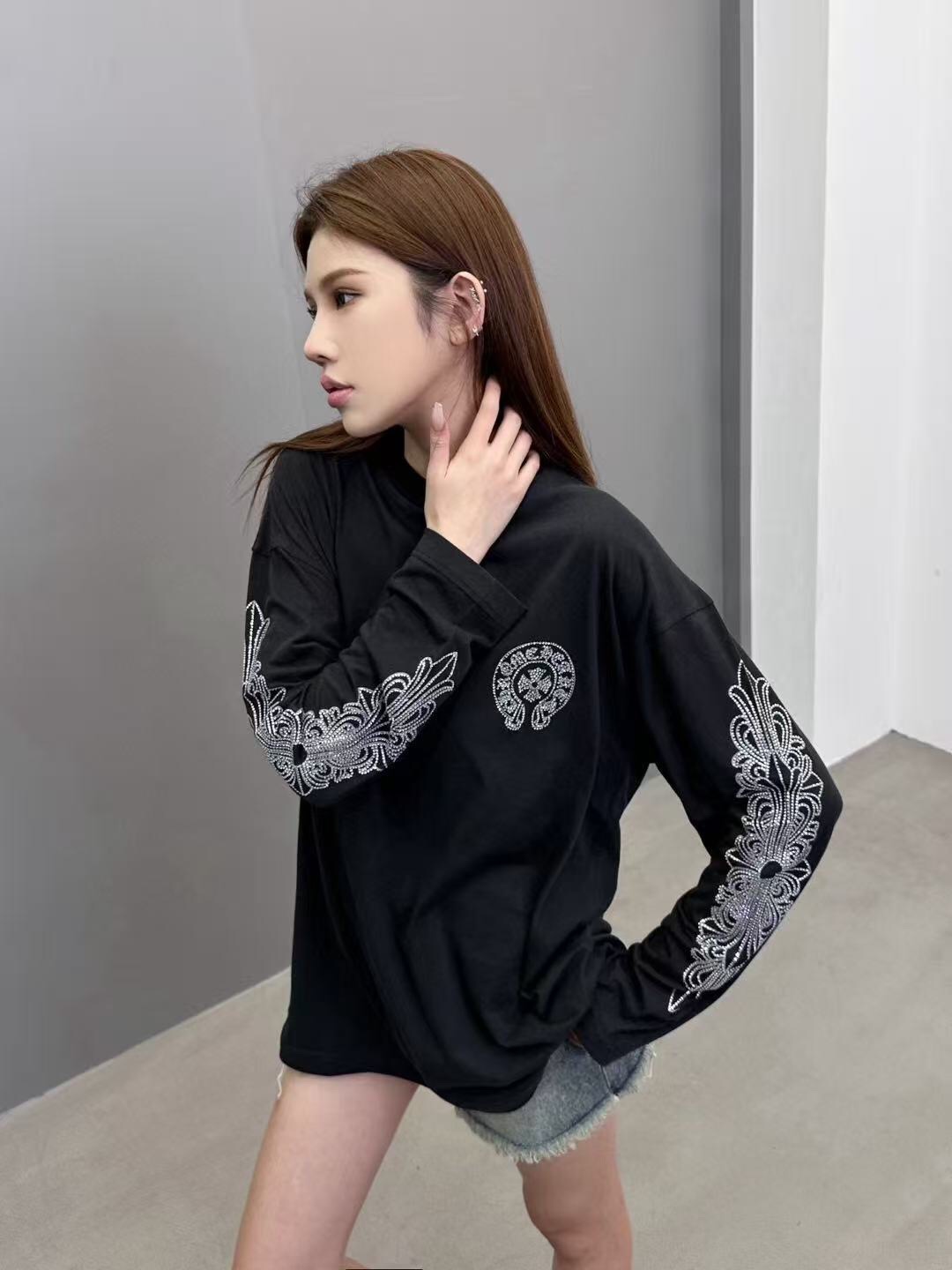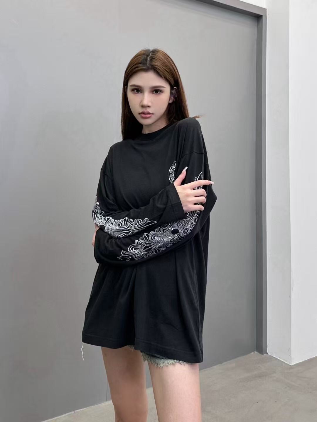 这款衣服是AAAAA 1:1 质量 (非常棒). 使用了和原版一模一样的材料. 商标部分也保持了和克罗心/Chrome Hearts一样. 图片拍摄是实物衣服拍摄, 您所收到的实物保证和我们图片一模一样.