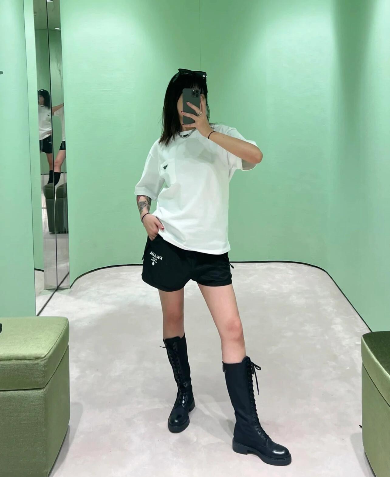 这款衣服是AAAAA 1:1 质量 (非常棒). 使用了和原版一模一样的材料. 商标部分也保持了和普拉达/Prada一样. 图片拍摄是实物衣服拍摄, 您所收到的实物保证和我们图片一模一样.