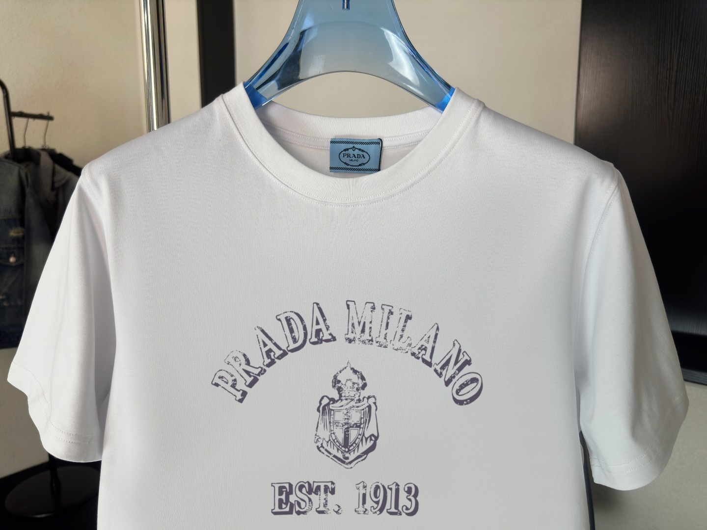这款衣服是AAAAA 1:1 质量 (非常棒). 使用了和原版一模一样的材料. 商标部分也保持了和普拉达/Prada一样. 图片拍摄是实物衣服拍摄, 您所收到的实物保证和我们图片一模一样.