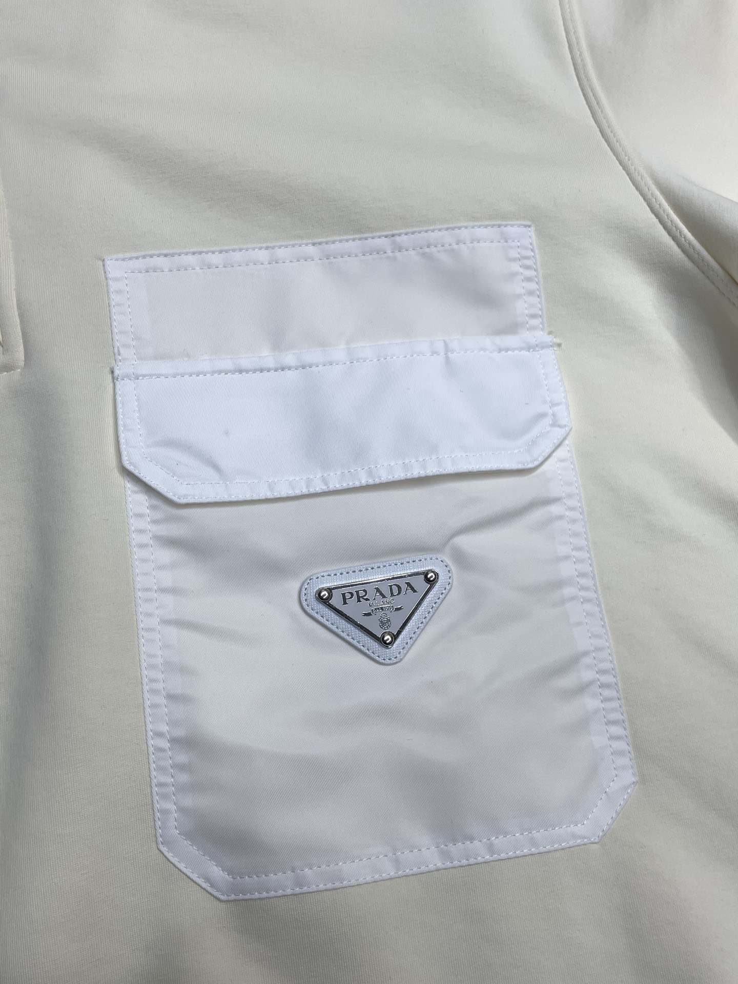 这款衣服是AAAAA 1:1 质量 (非常棒). 使用了和原版一模一样的材料. 商标部分也保持了和普拉达/Prada一样. 图片拍摄是实物衣服拍摄, 您所收到的实物保证和我们图片一模一样.