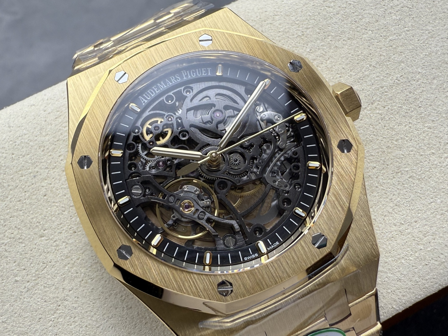 这款手表是AAAAA 1:1 质量 (非常棒). 使用了和原版一模一样的材料. 商标部分也保持了和爱彼/Audemars Piguet一样. 图片拍摄是实物手表拍摄, 您所收到的实物保证和我们图片一模一样.