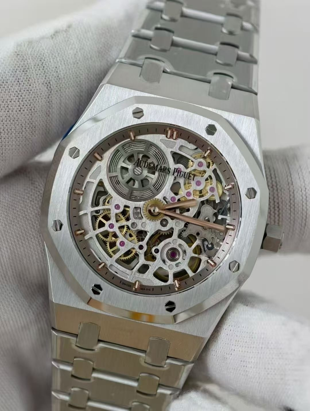 这款手表是AAAAA 1:1 质量 (非常棒). 使用了和原版一模一样的材料. 商标部分也保持了和爱彼/Audemars Piguet一样. 图片拍摄是实物手表拍摄, 您所收到的实物保证和我们图片一模一样.