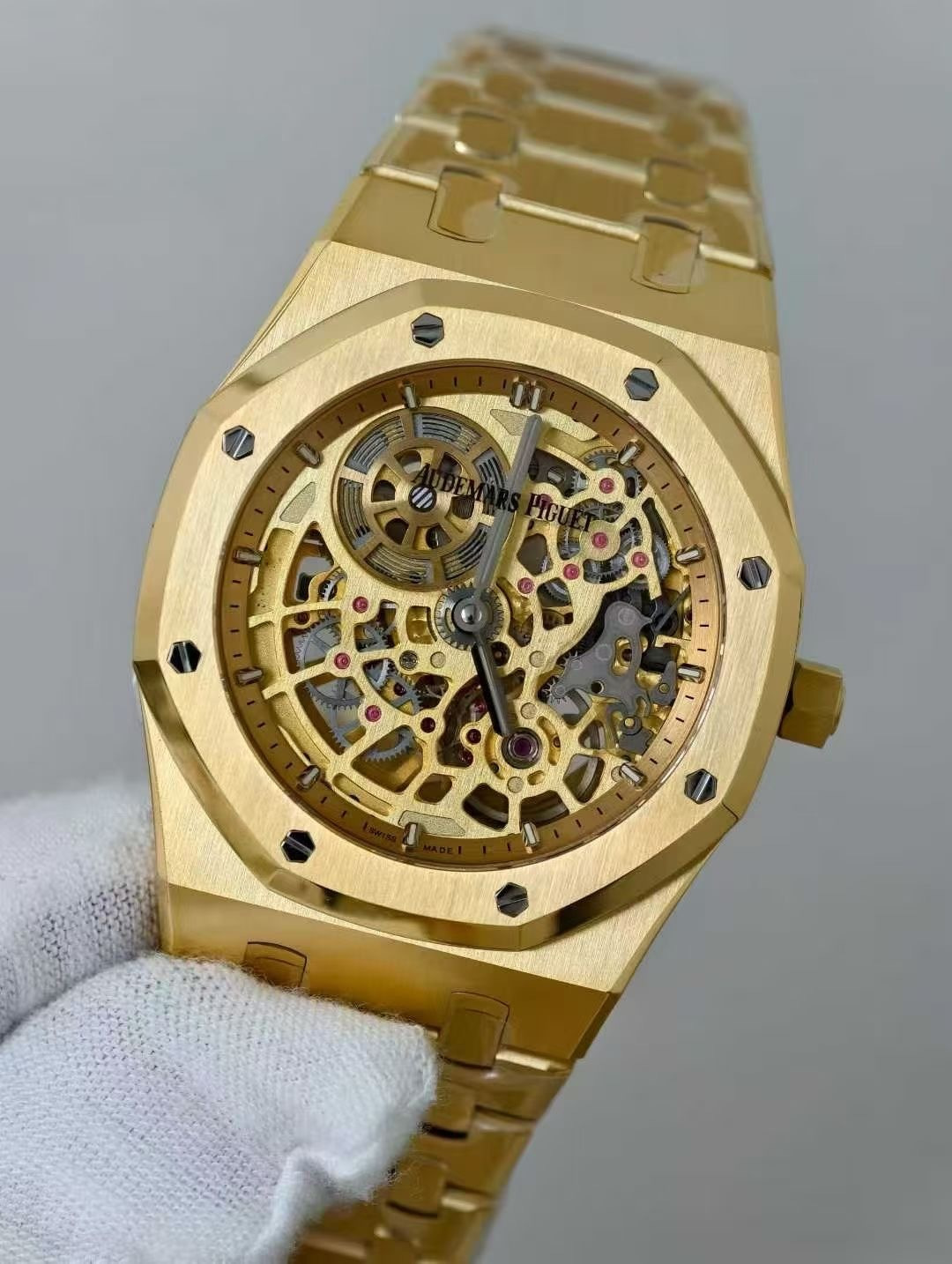 这款手表是AAAAA 1:1 质量 (非常棒). 使用了和原版一模一样的材料. 商标部分也保持了和爱彼/Audemars Piguet一样. 图片拍摄是实物手表拍摄, 您所收到的实物保证和我们图片一模一样.