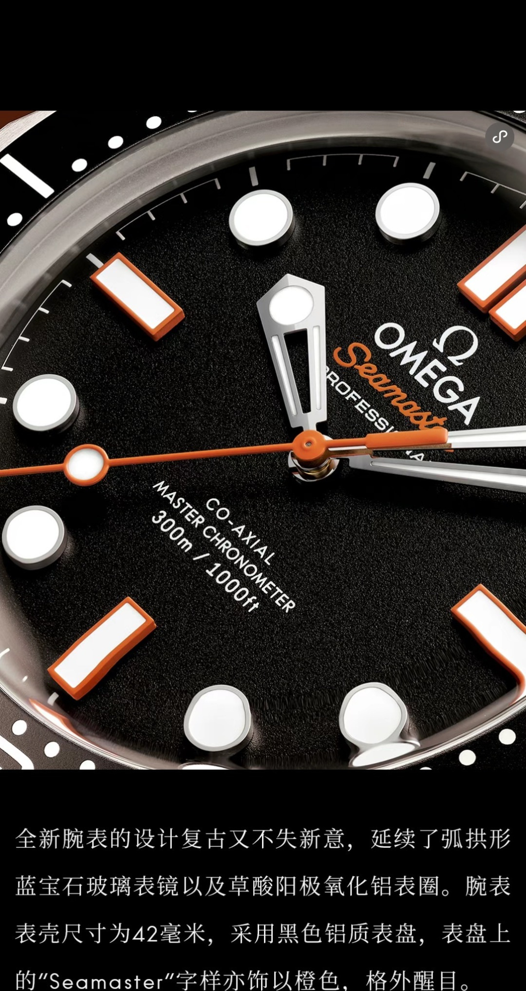 这款手表是AAAAA 1:1 质量 (非常棒). 使用了和原版一模一样的材料. 商标部分也保持了和欧米茄/Omega一样. 图片拍摄是实物手表拍摄, 您所收到的实物保证和我们图片一模一样.
