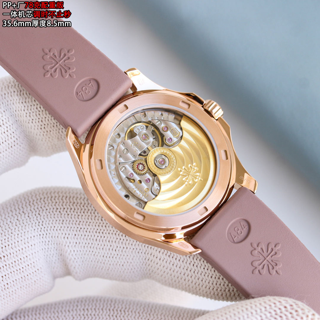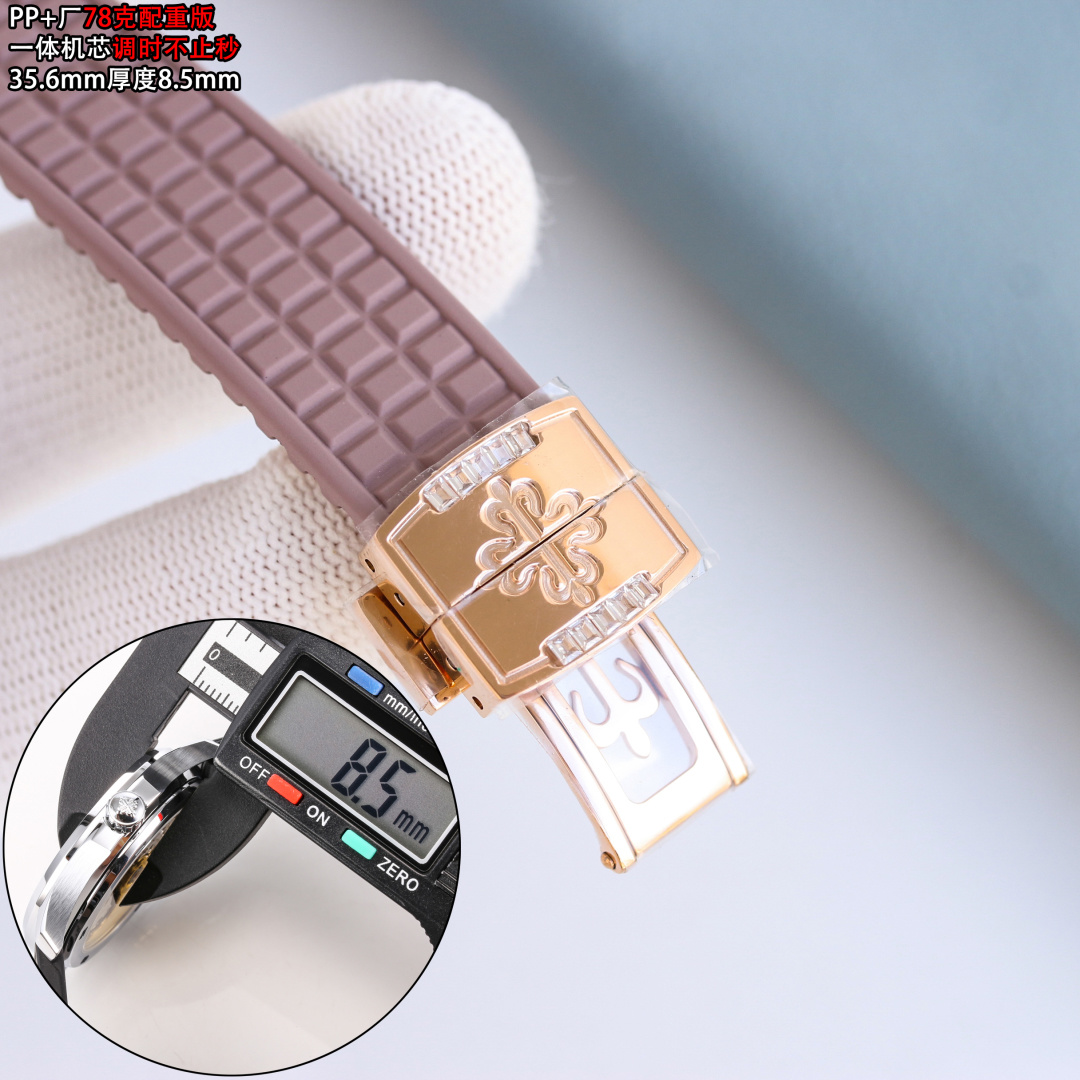 这款手表是AAAAA 1:1 质量 (非常棒). 使用了和原版一模一样的材料. 商标部分也保持了和百达翡丽/Patek Philippe一样. 图片拍摄是实物手表拍摄, 您所收到的实物保证和我们图片一模一样.