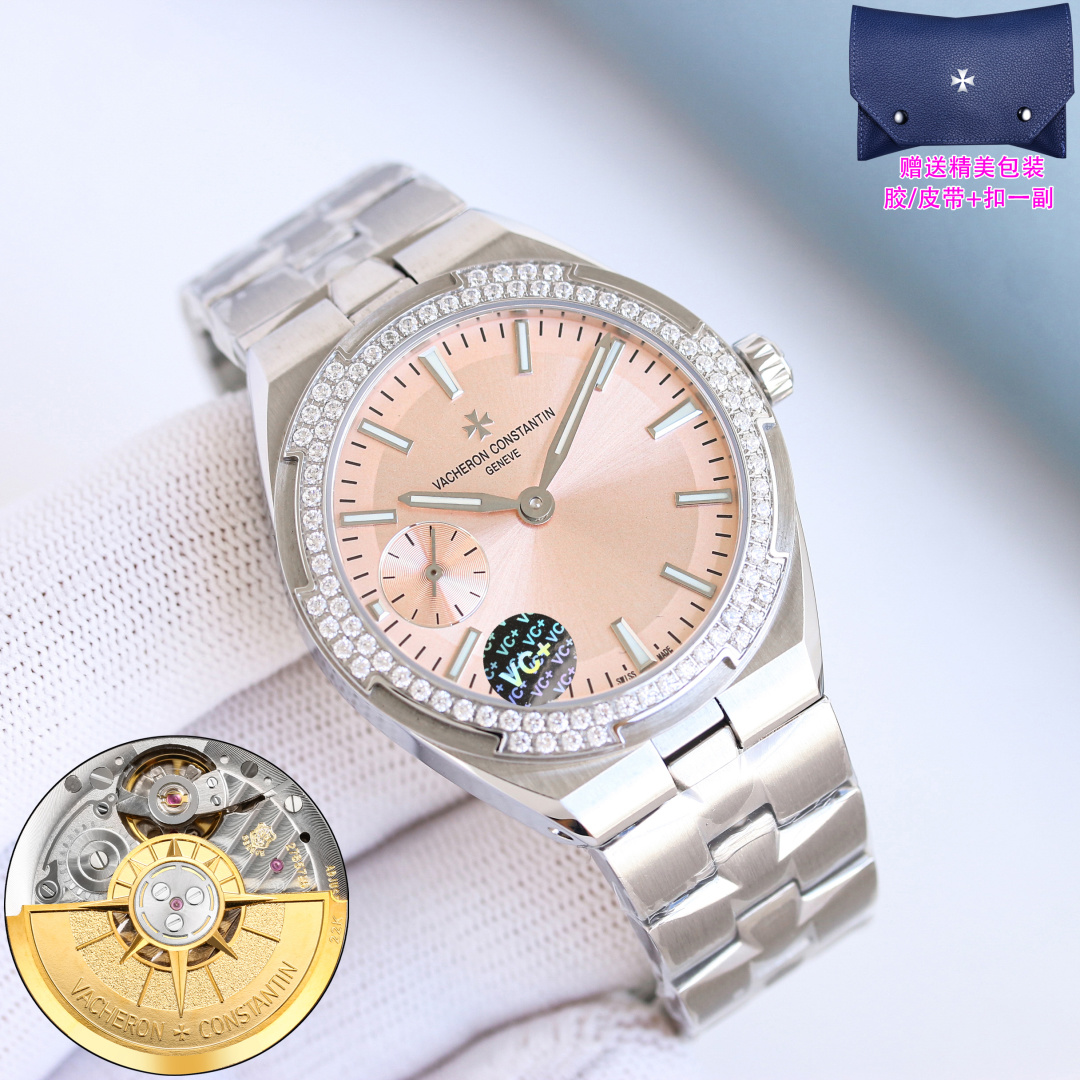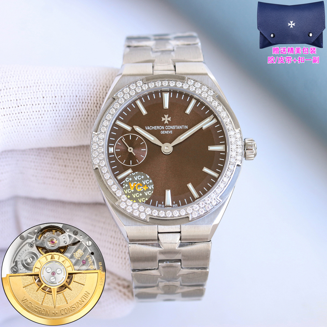 这款手表是AAAAA 1:1 质量 (非常棒). 使用了和原版一模一样的材料. 商标部分也保持了和江诗丹顿/Vacheron Constantin一样. 图片拍摄是实物手表拍摄, 您所收到的实物保证和我们图片一模一样.