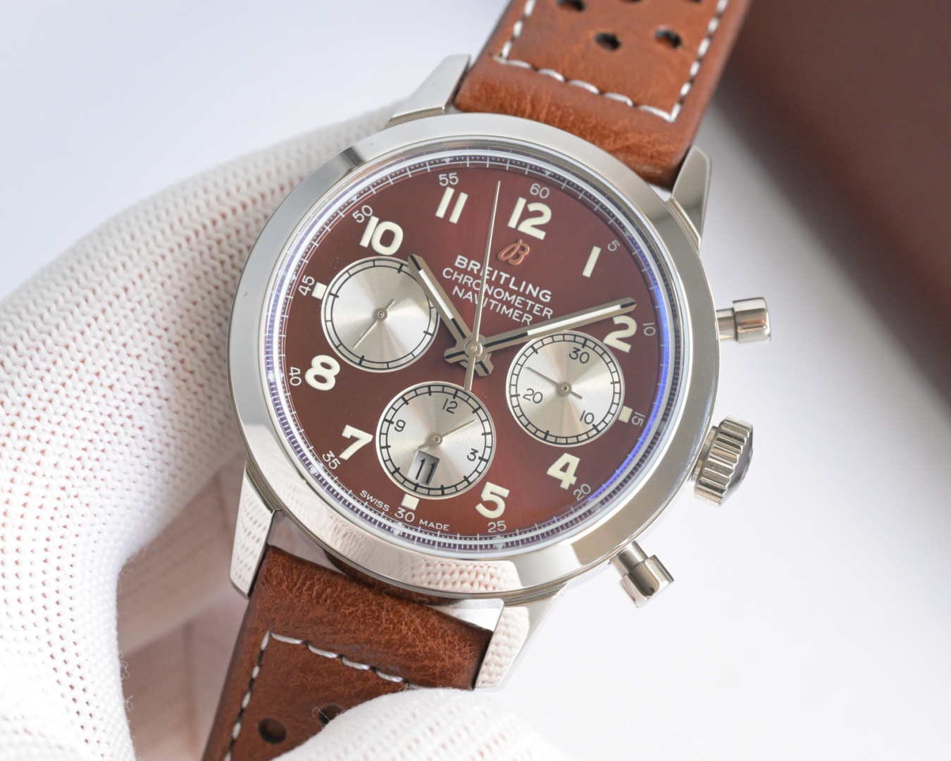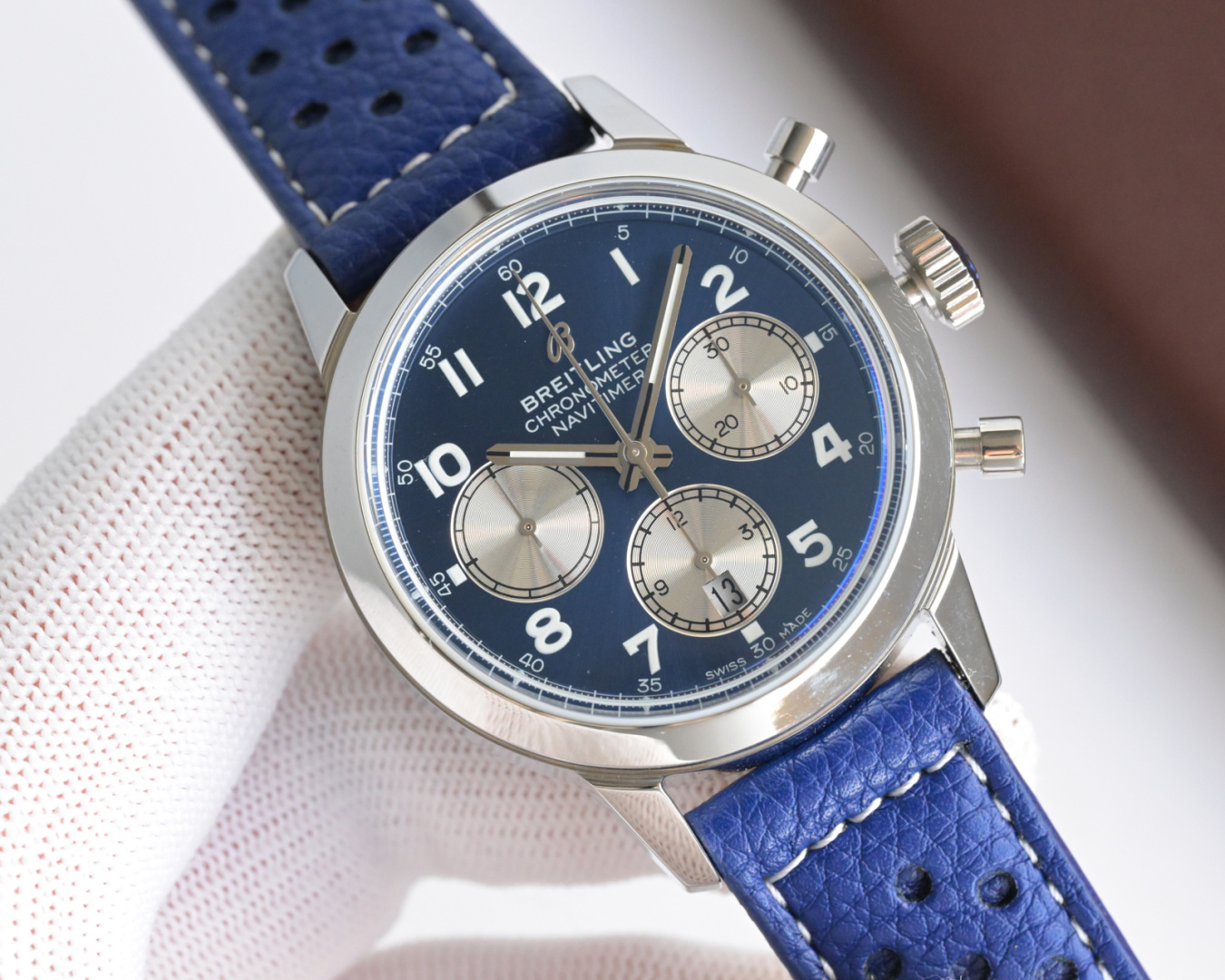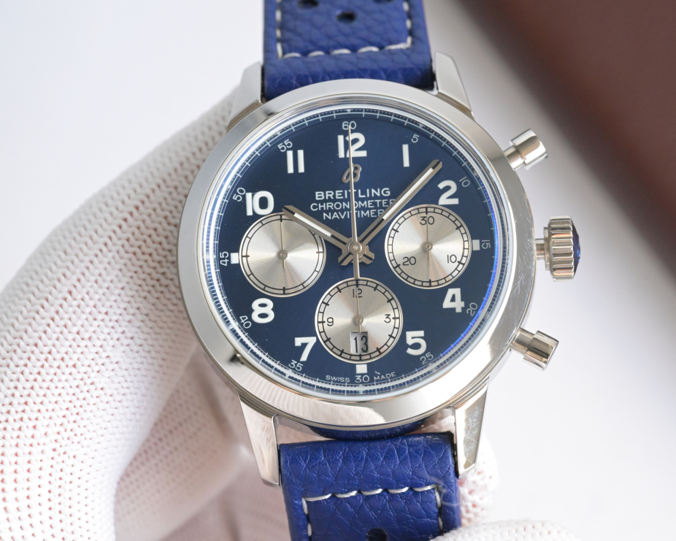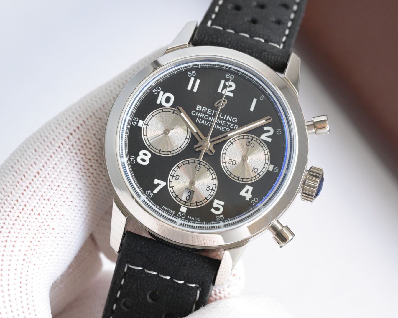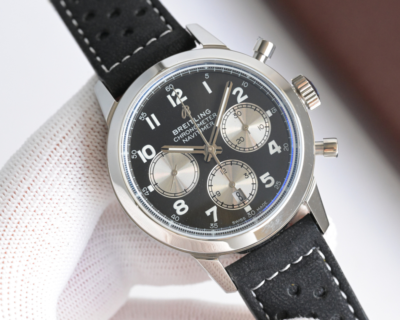 这款手表是AAAAA 1:1 质量 (非常棒). 使用了和原版一模一样的材料. 商标部分也保持了和Breitling一样. 图片拍摄是实物手表拍摄, 您所收到的实物保证和我们图片一模一样.