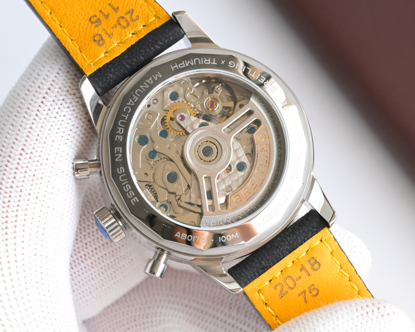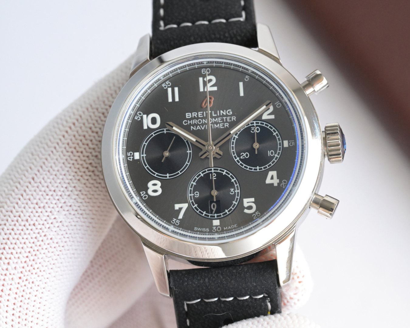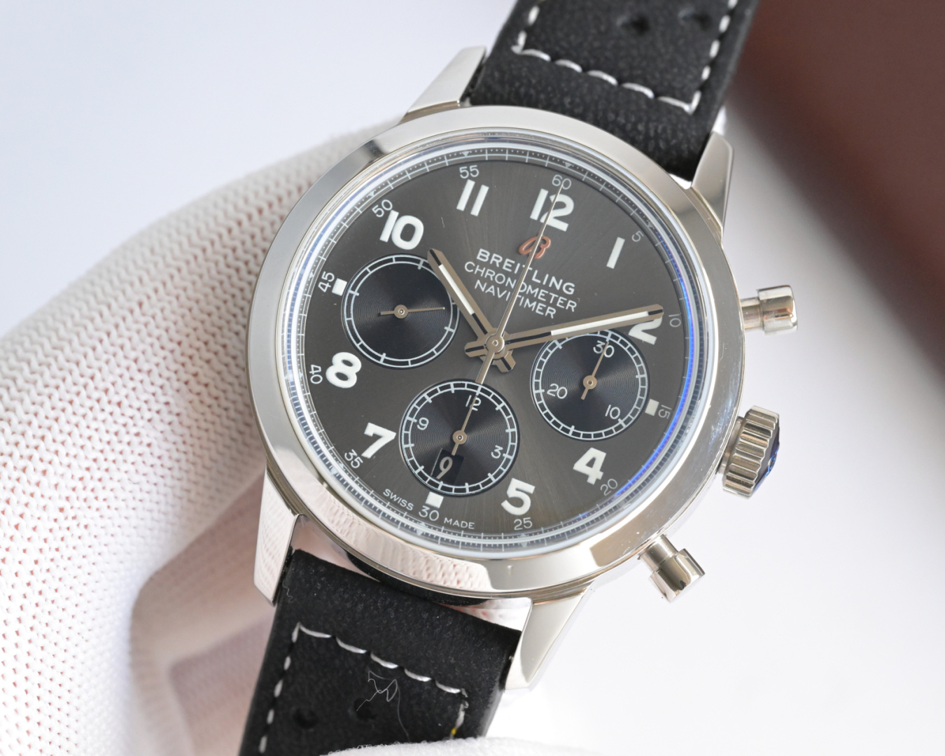 这款手表是AAAAA 1:1 质量 (非常棒). 使用了和原版一模一样的材料. 商标部分也保持了和Breitling一样. 图片拍摄是实物手表拍摄, 您所收到的实物保证和我们图片一模一样.
