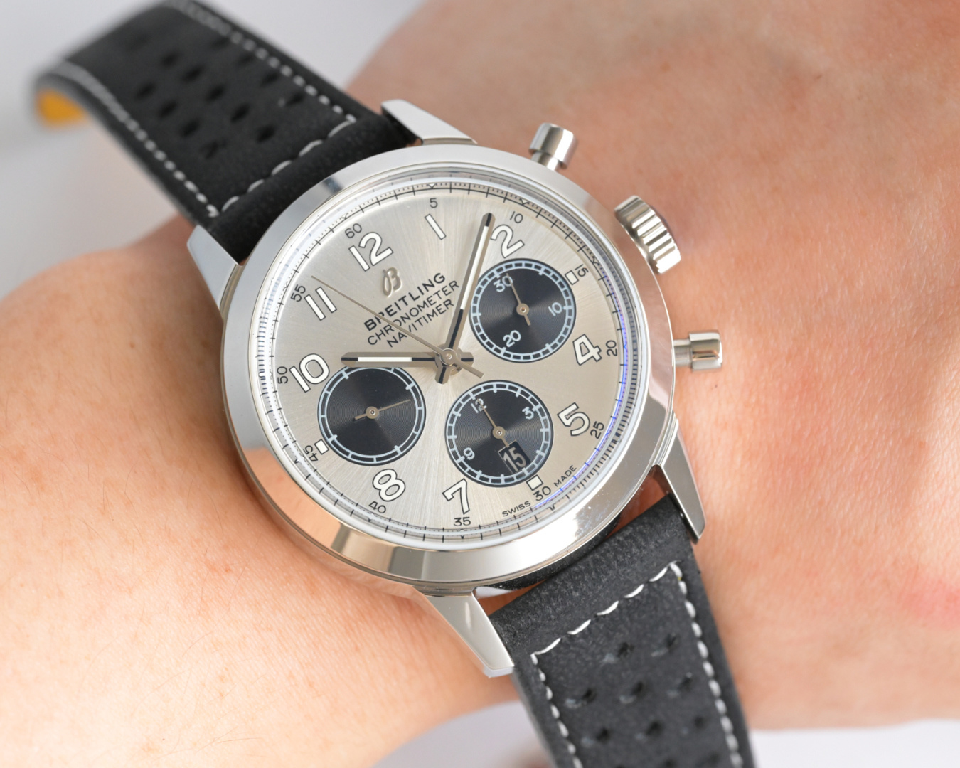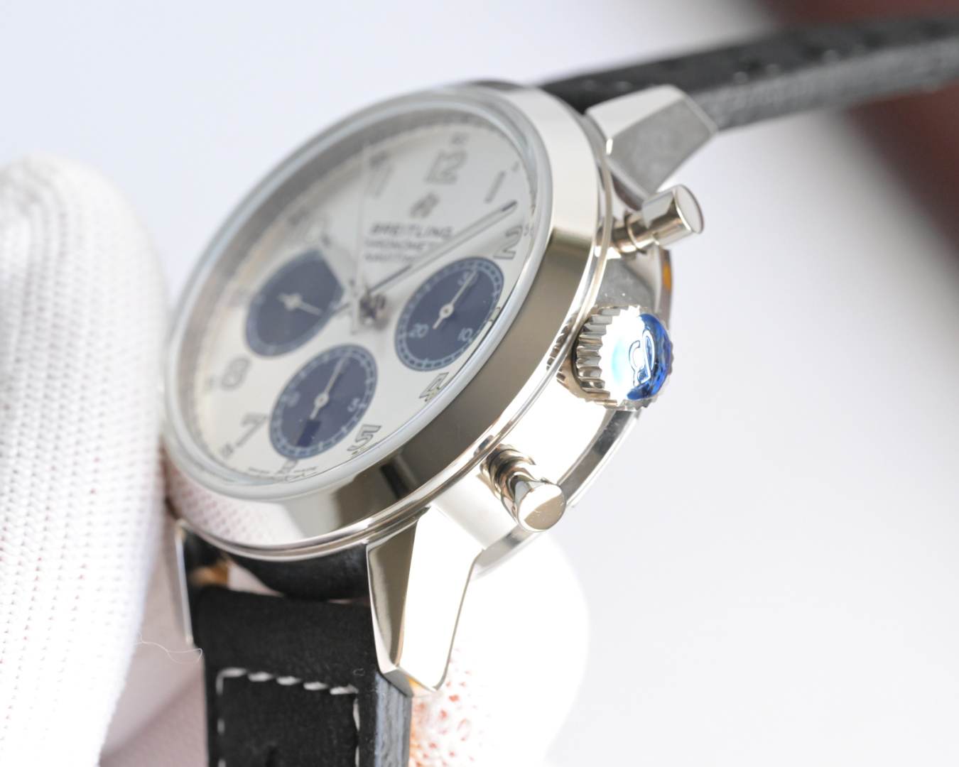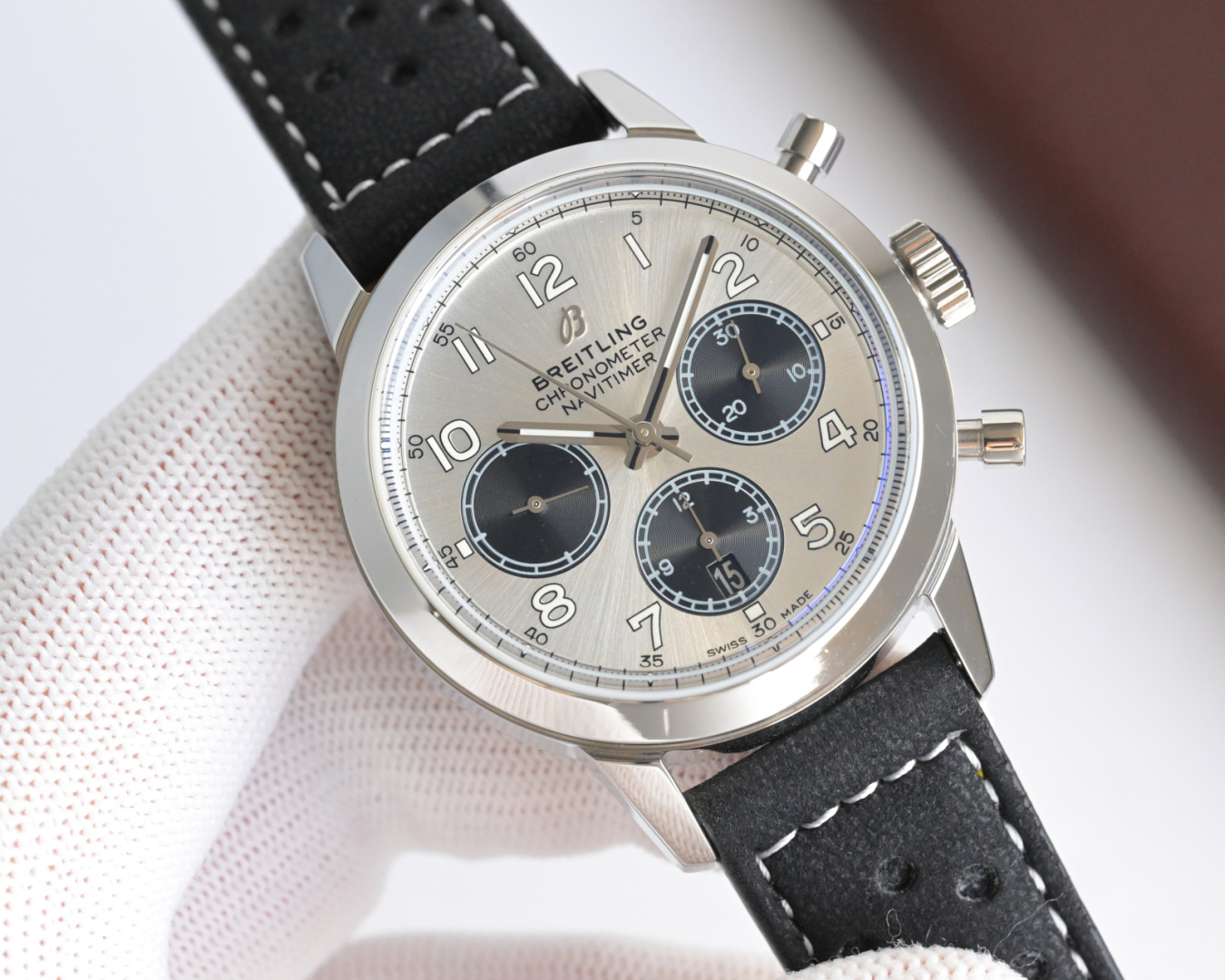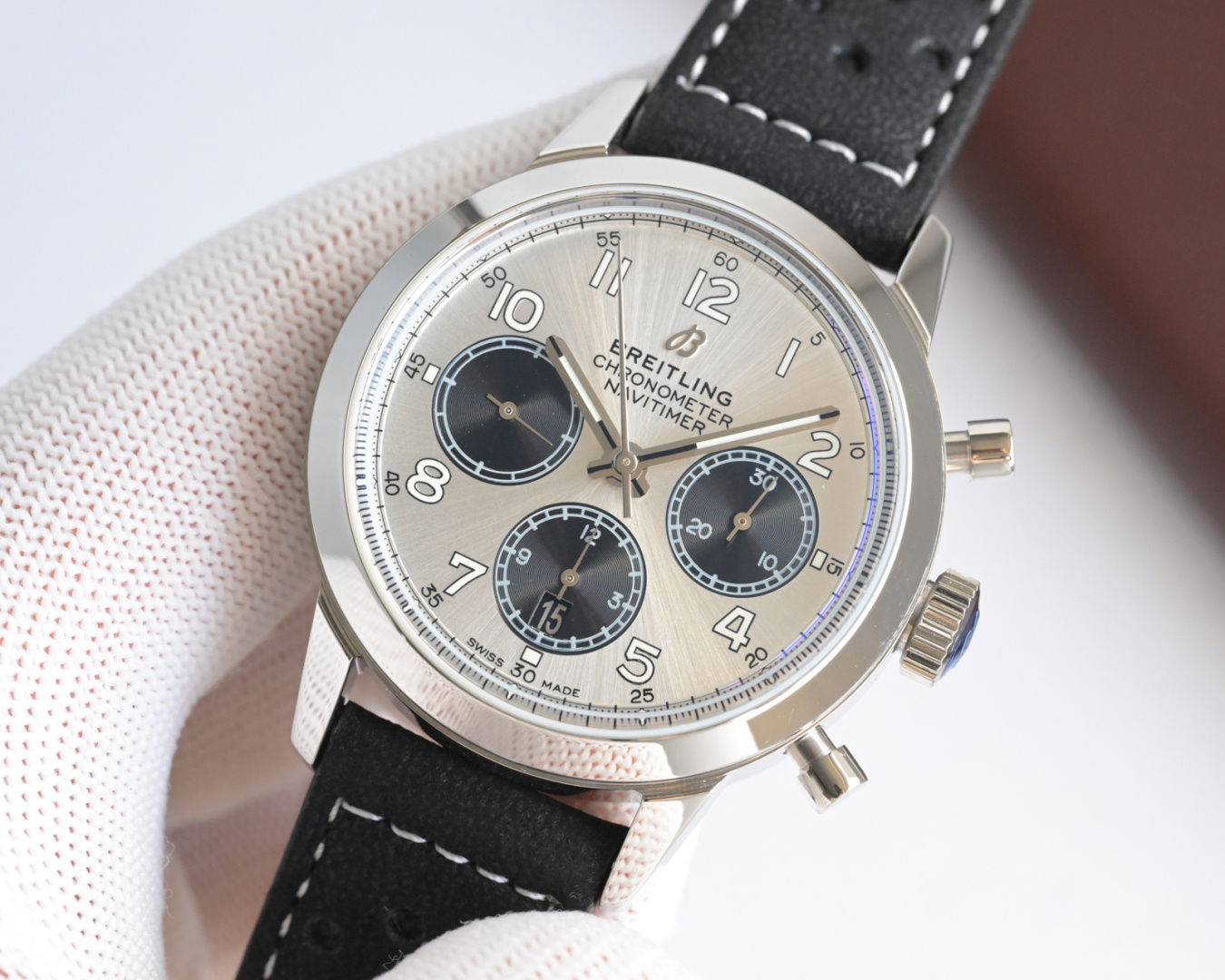 这款手表是AAAAA 1:1 质量 (非常棒). 使用了和原版一模一样的材料. 商标部分也保持了和Breitling一样. 图片拍摄是实物手表拍摄, 您所收到的实物保证和我们图片一模一样.