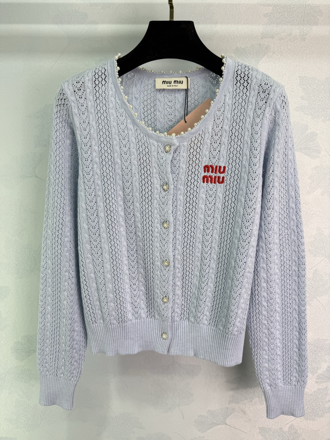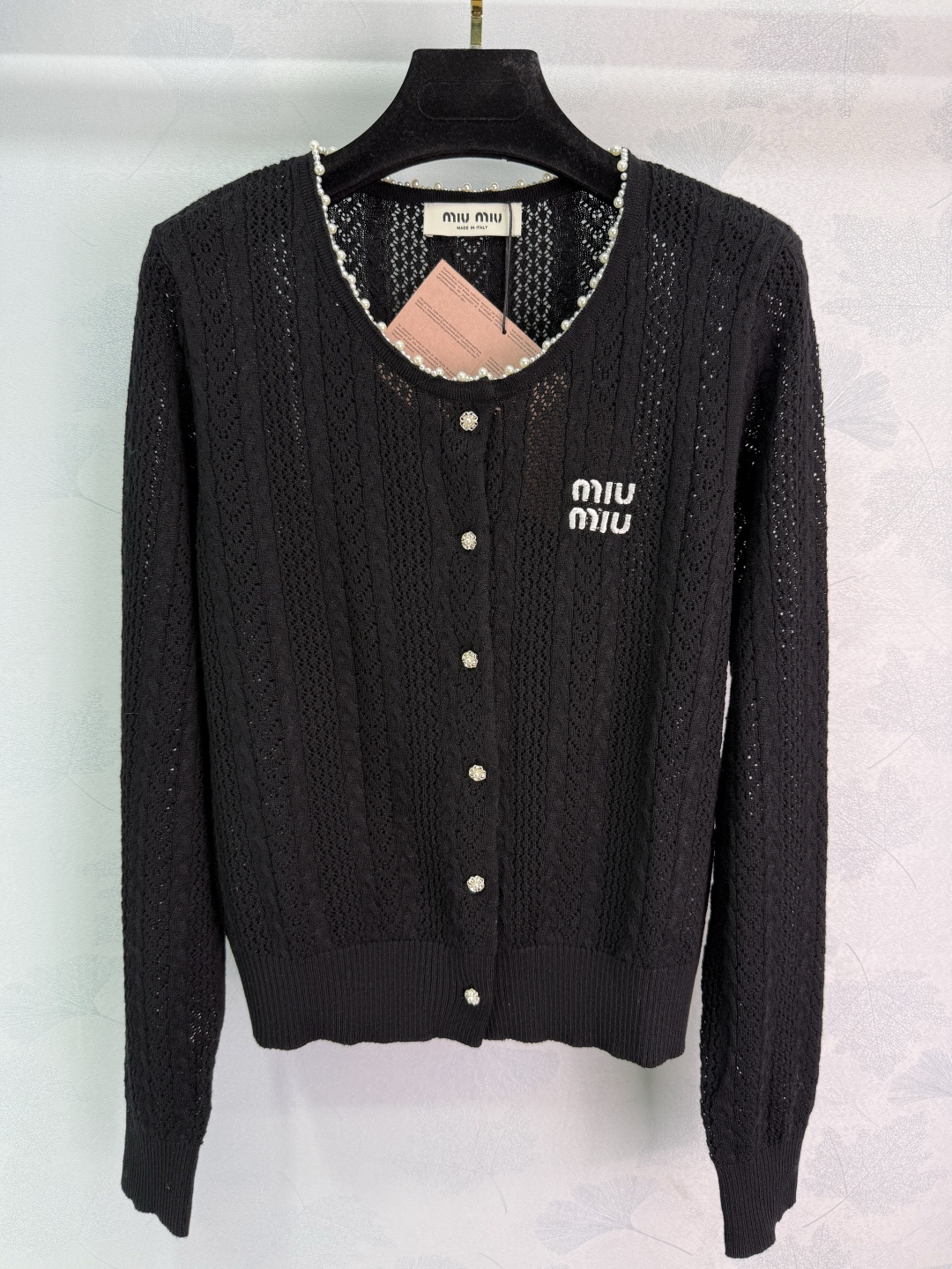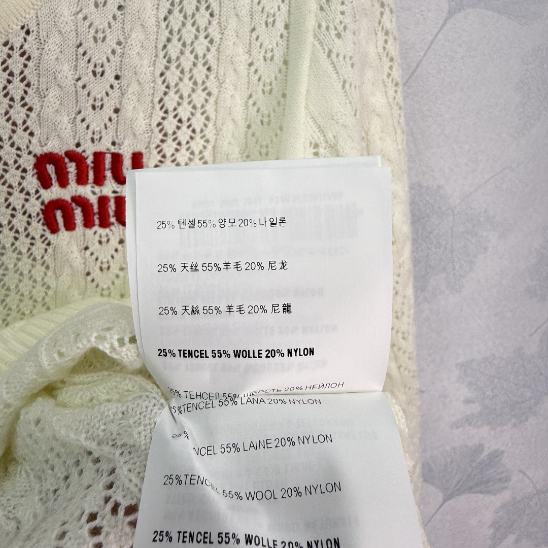 这款衣服是AAAAA 1:1 质量 (非常棒). 使用了和原版一模一样的材料. 商标部分也保持了和缪缪/Miu Miu一样. 图片拍摄是实物衣服拍摄, 您所收到的实物保证和我们图片一模一样.
