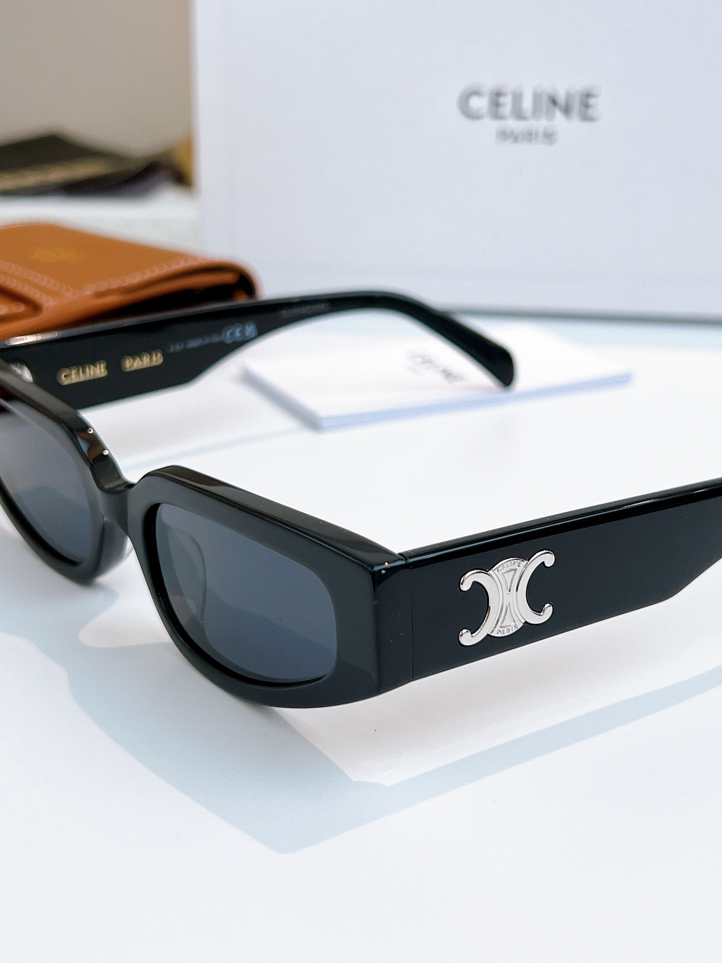 这款太阳眼镜是AAAAA 1:1 质量 (非常棒). 使用了和原版一模一样的材料. 商标部分也保持了和思琳/Celine一样. 图片拍摄是实物太阳眼镜拍摄, 您所收到的实物保证和我们图片一模一样.