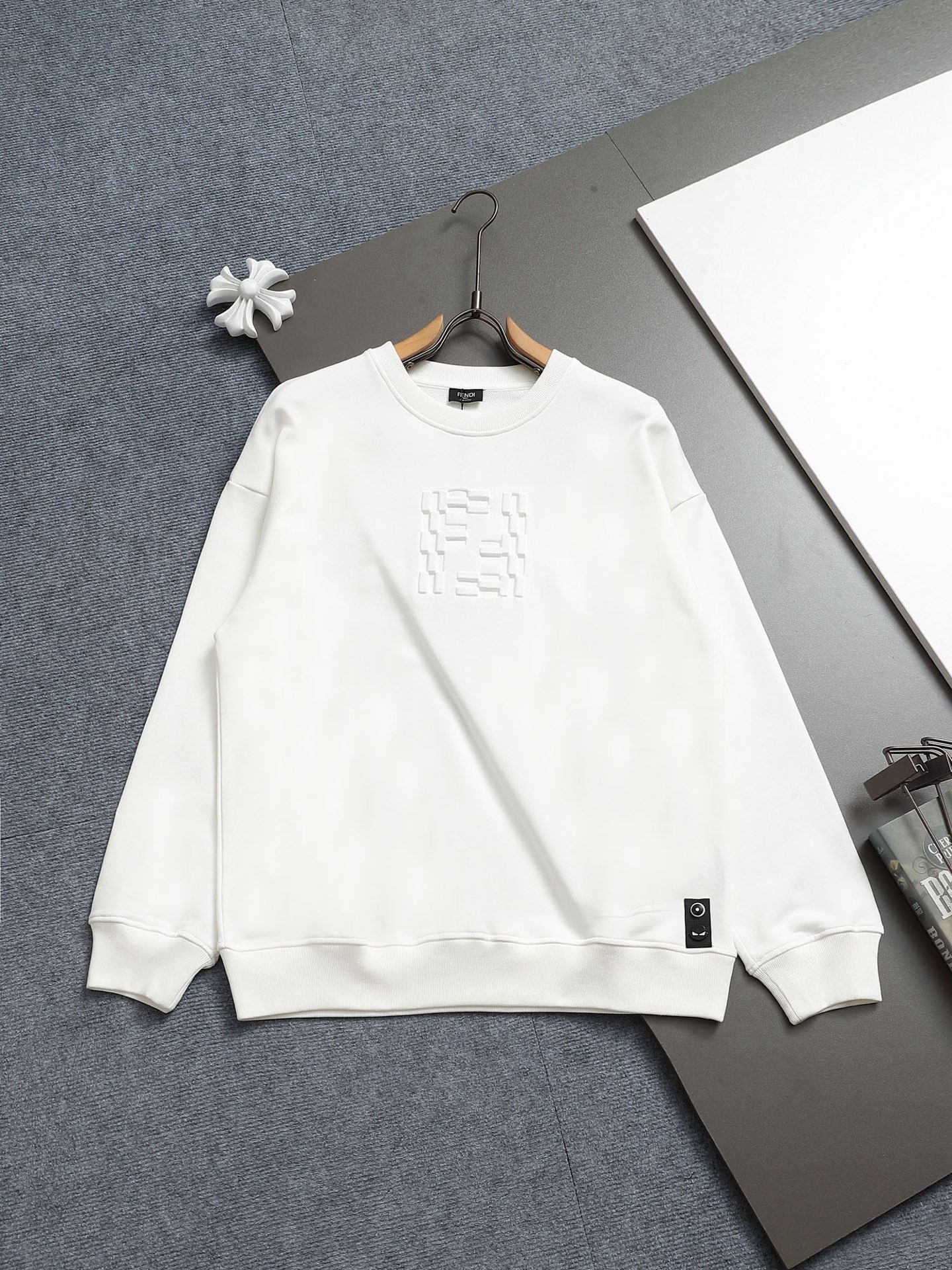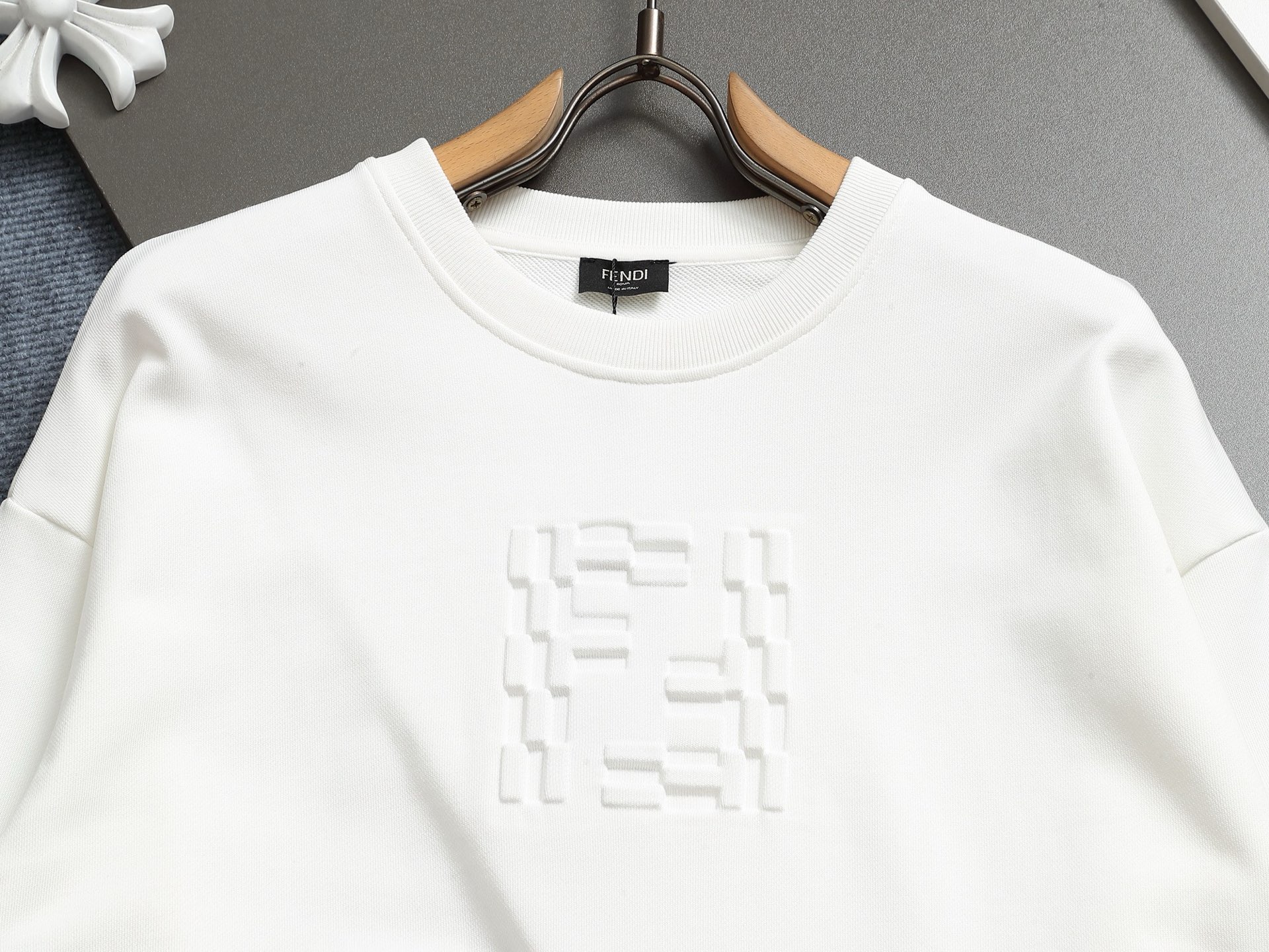 这款衣服是AAAAA 1:1 质量 (非常棒). 使用了和原版一模一样的材料. 商标部分也保持了和芬迪/Fendi一样. 图片拍摄是实物衣服拍摄, 您所收到的实物保证和我们图片一模一样.