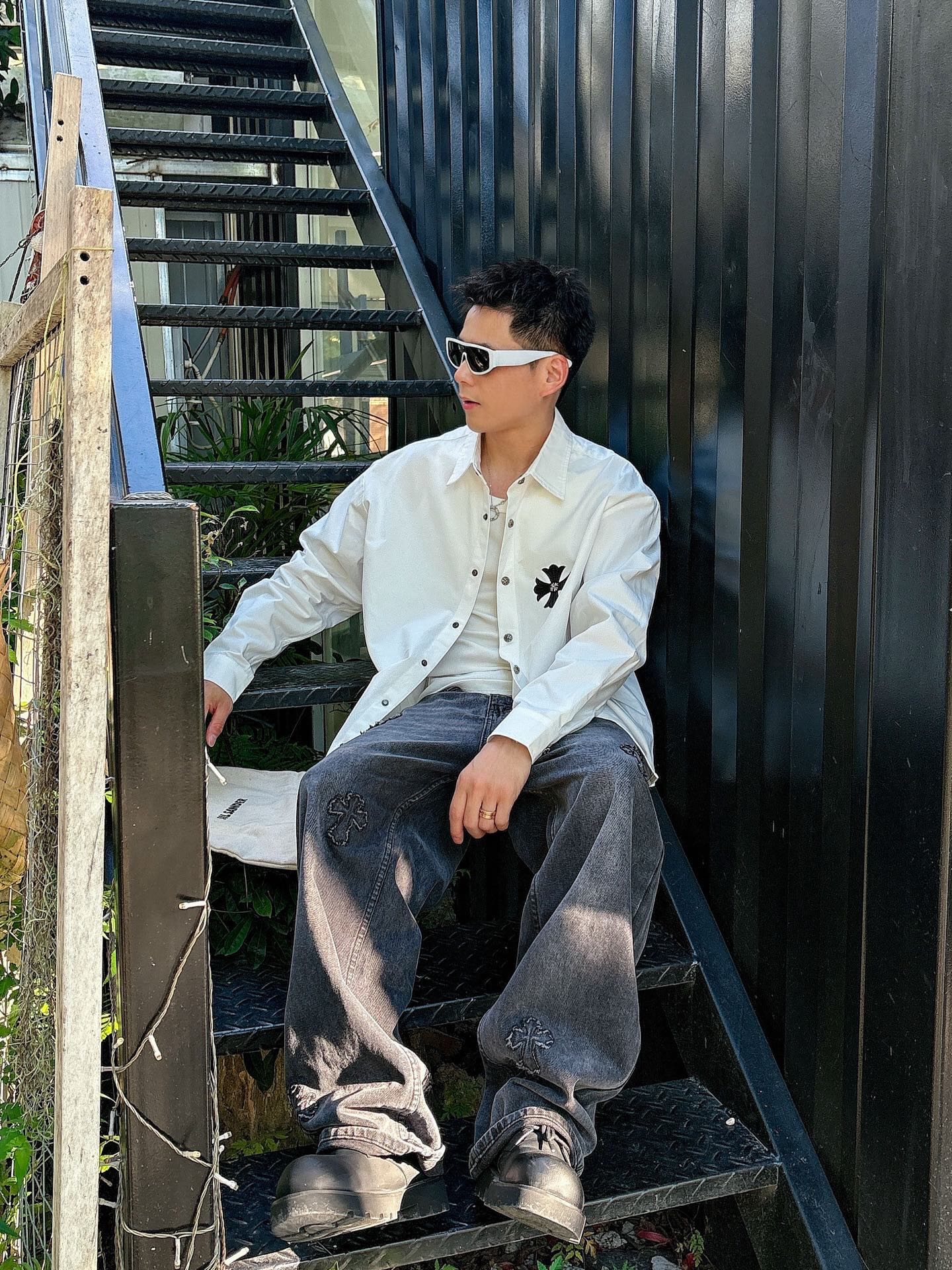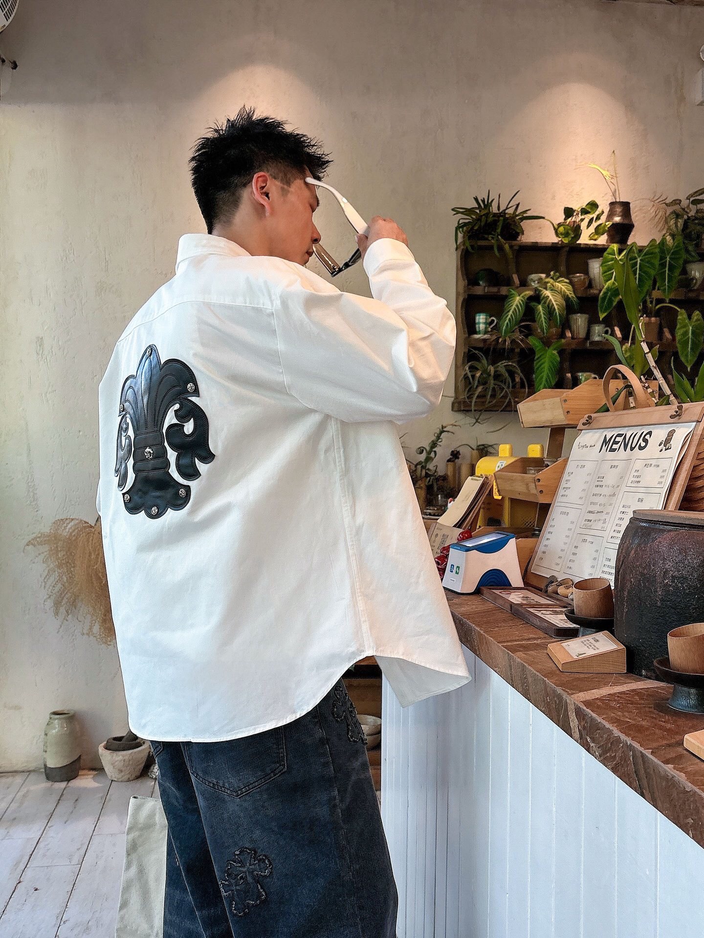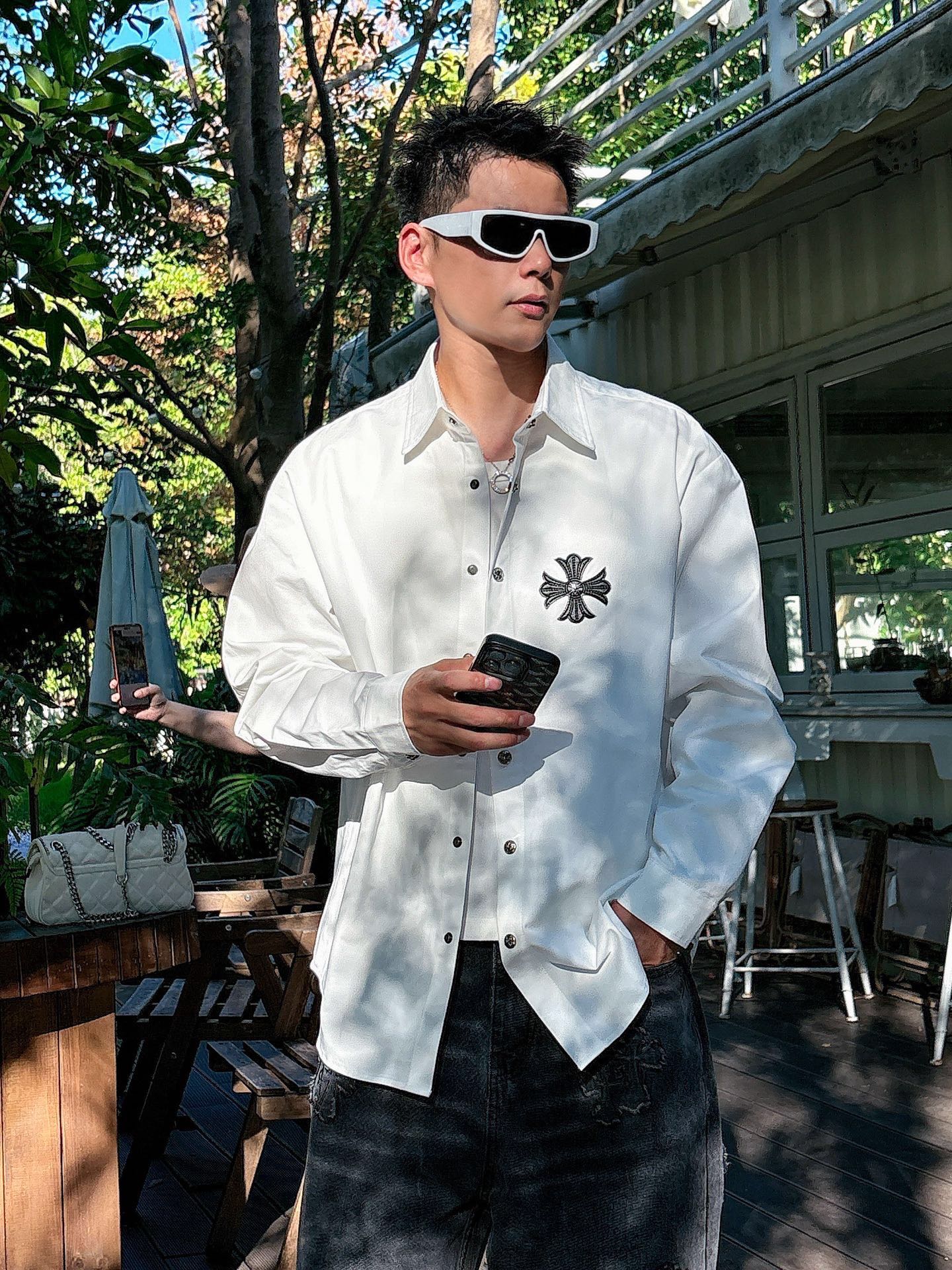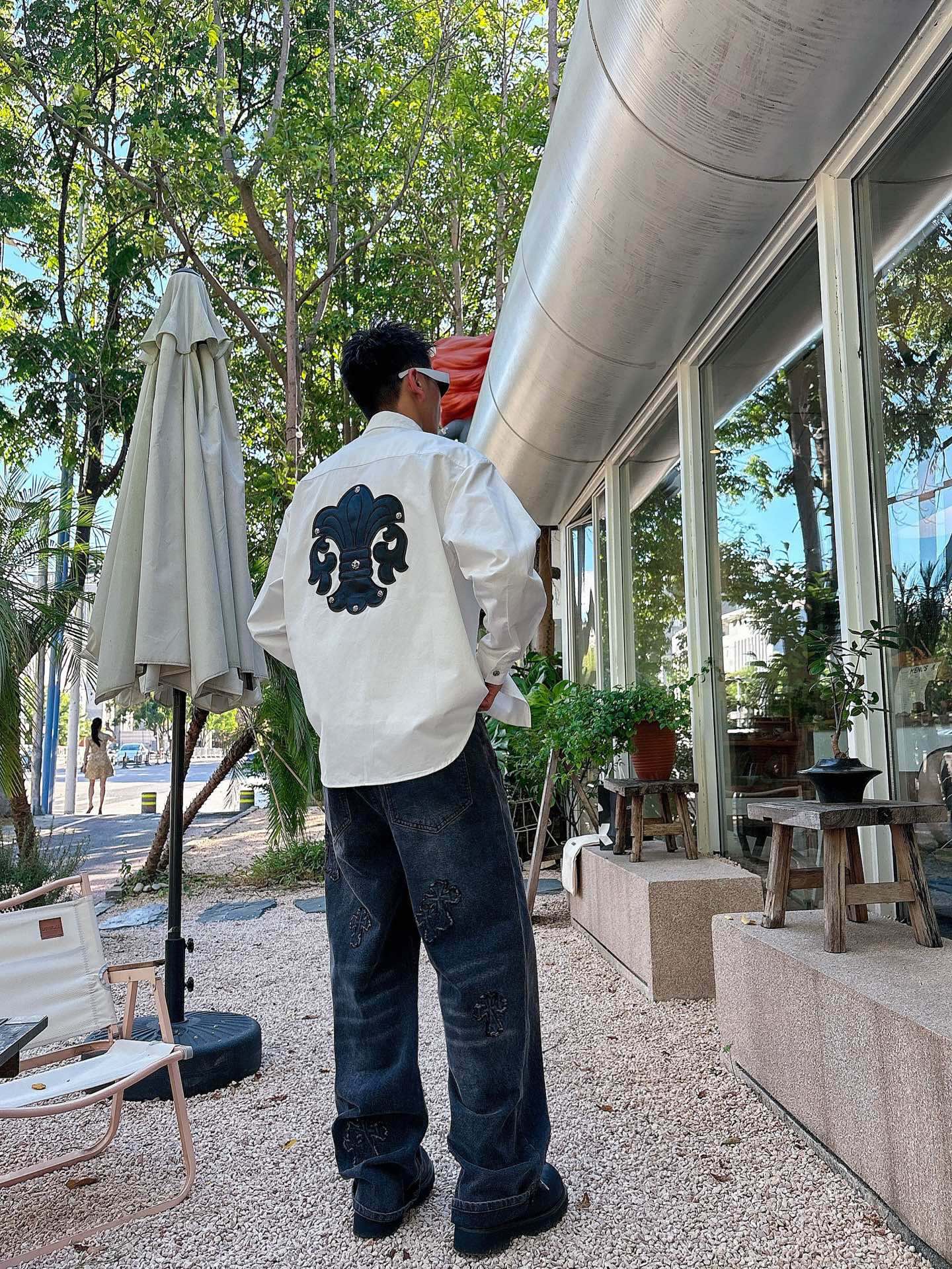 这款衣服是AAAAA 1:1 质量 (非常棒). 使用了和原版一模一样的材料. 商标部分也保持了和克罗心/Chrome Hearts一样. 图片拍摄是实物衣服拍摄, 您所收到的实物保证和我们图片一模一样.