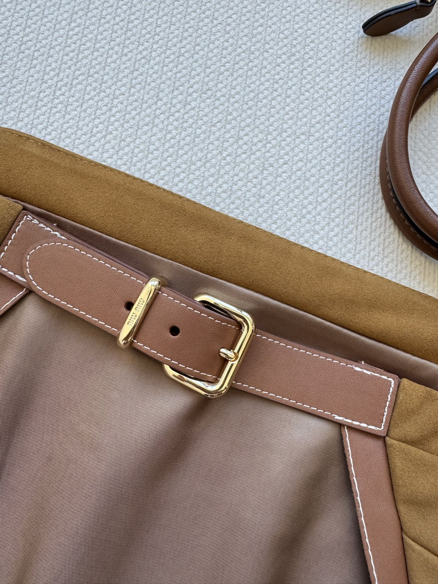 这款衣服是AAAAA 1:1 质量 (非常棒). 使用了和原版一模一样的材料. 商标部分也保持了和缪缪/Miu Miu一样. 图片拍摄是实物衣服拍摄, 您所收到的实物保证和我们图片一模一样.