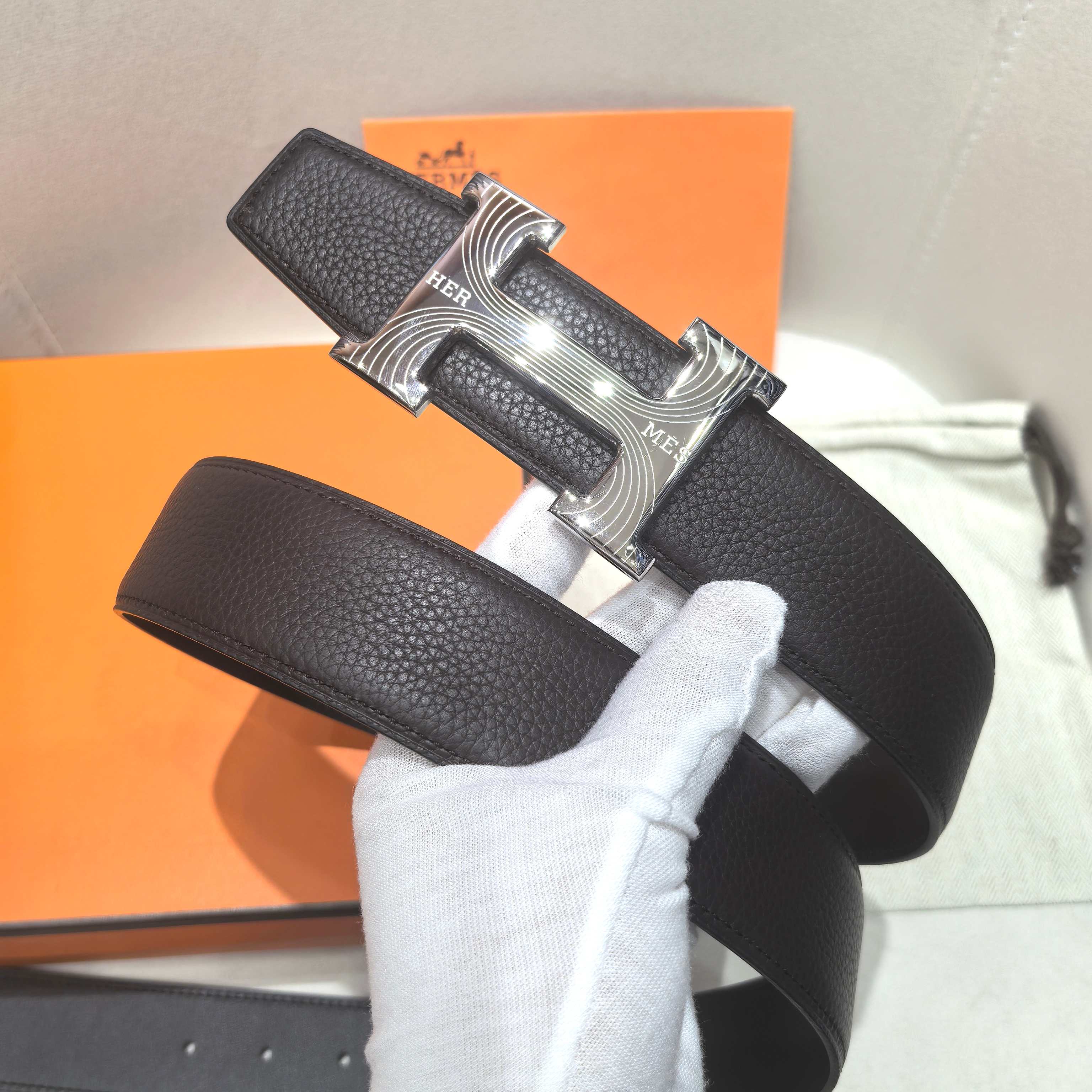 这款皮带是AAAAA 1:1 质量 (非常棒). 使用了和原版一模一样的材料. 商标部分也保持了和爱马仕/Hermes一样. 图片拍摄是实物皮带拍摄, 您所收到的实物保证和我们图片一模一样.