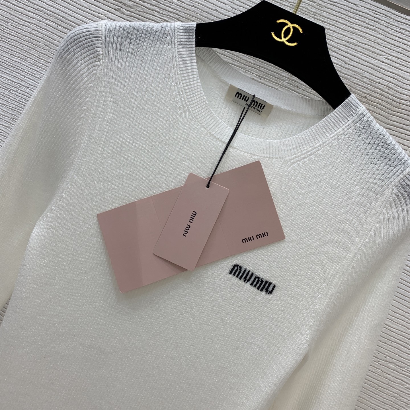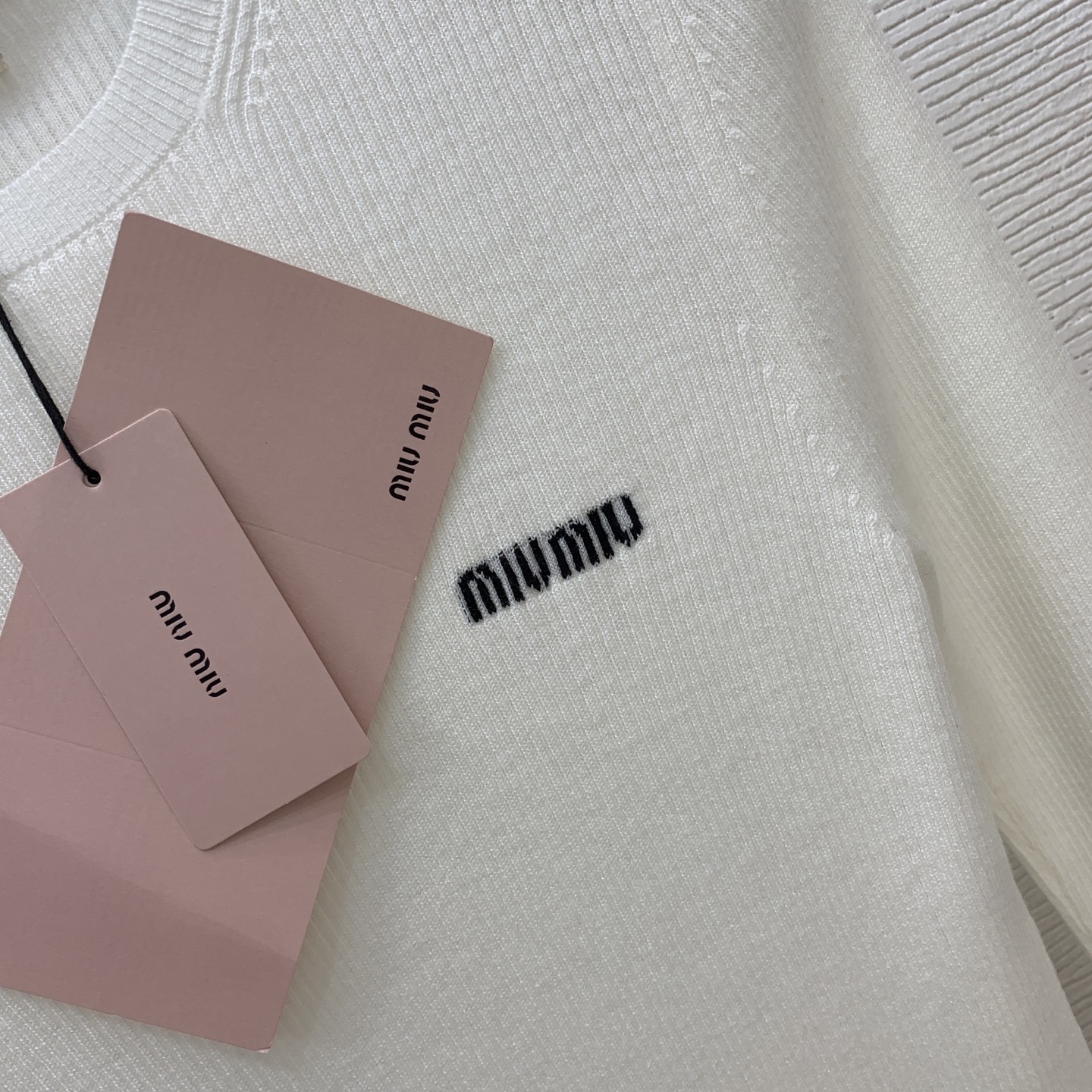 这款衣服是AAAAA 1:1 质量 (非常棒). 使用了和原版一模一样的材料. 商标部分也保持了和缪缪/Miu Miu一样. 图片拍摄是实物衣服拍摄, 您所收到的实物保证和我们图片一模一样.